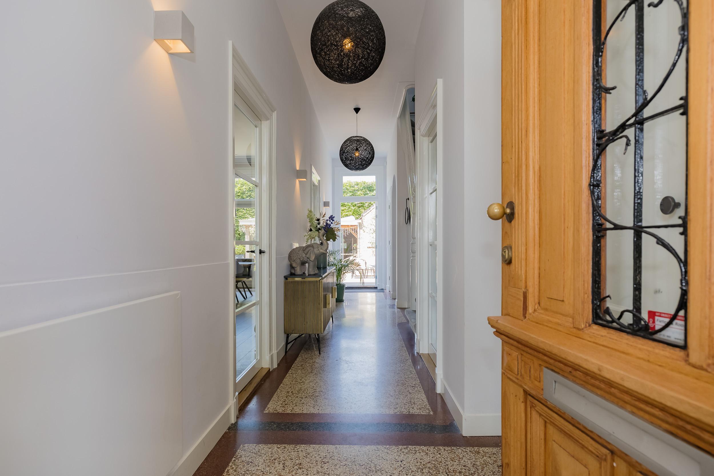 Fraai portaal waarin de markant hoge voordeur, imposant lange hal met de gerestaureerde authentieke granitovloer, garderobe en toiletruimte en een deur naar de tuin. Links van de hal een zeer royale woon-/leefkeuken met luxe keukeninrichting in mat wit uitgevoerd, prachtig kook-/ en spoeleiland met houten eetbar en alle inbouwapparatuur o.a. een fraaie wijnkoeling. Ook een gezellige gashaard en de grote achterpui met veel glas en openslaande deuren naar de tuin ontbreken niet. Rechts van de hal is er een tv-/zitkamer met een gashaard en dubbele deuren die toegang geven tot de opkamer. Deze opkamer met een grote op maat gemaakte kastenwand is zeer geschikt als speel-/of werkkamer en heeft een trap naar de grote droge kelder met stahoogte. In het voormalige cellencomplex is een prachtige werkkamer gecreëerd, een bergkamer, een technische ruimte en is er één cel in originele staat behouden gebleven. De inpandig bereikbare garage is groot en o.a. voorzien van een elektrische segment deur met loopdeur en een vaste trap naar ruime bergzolder.