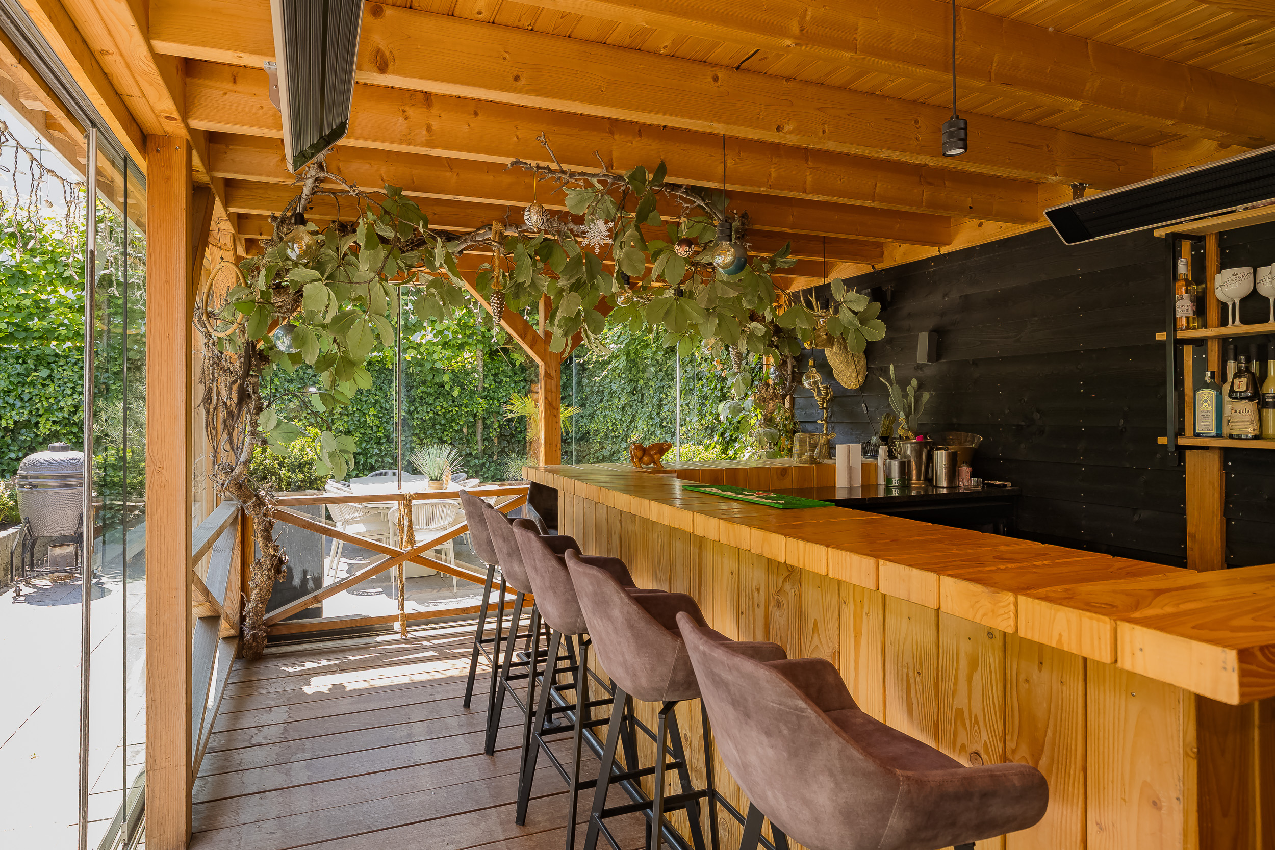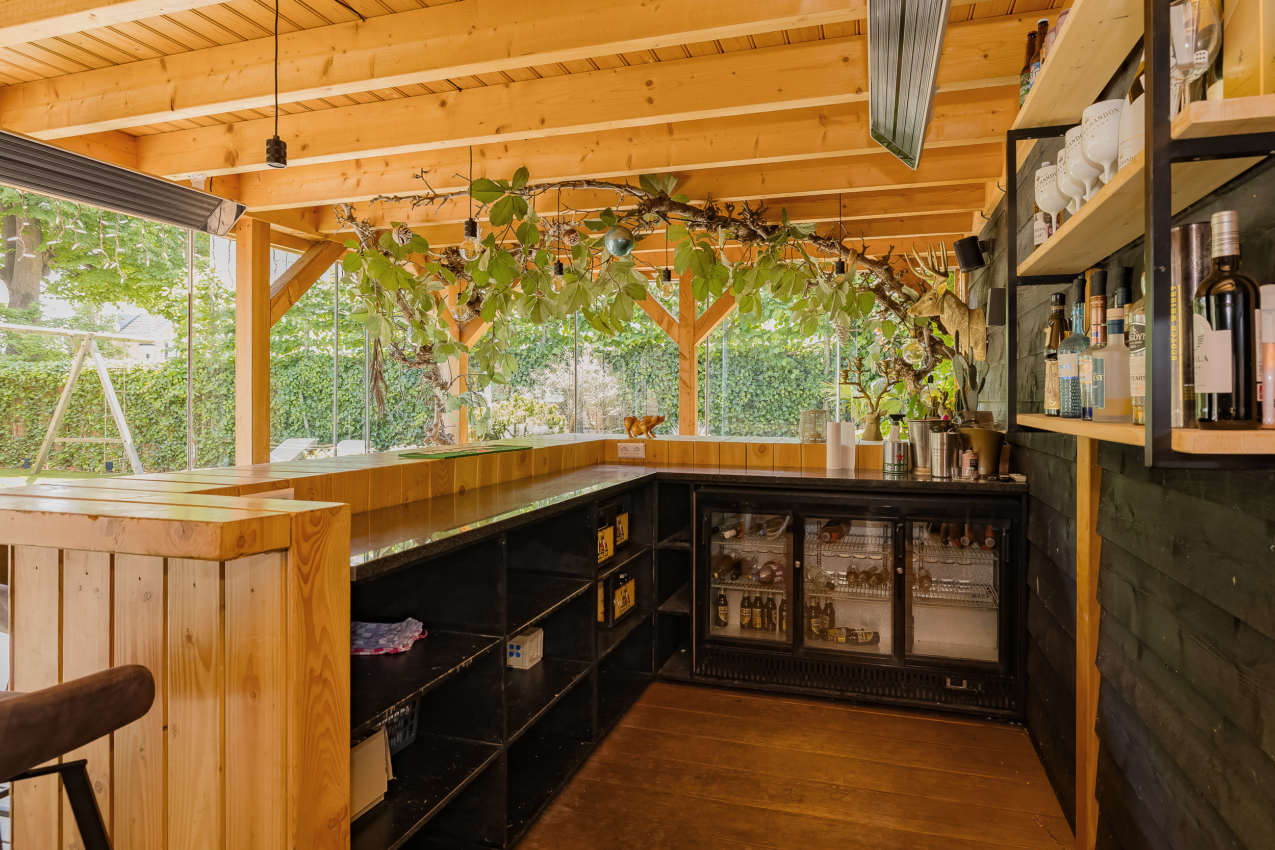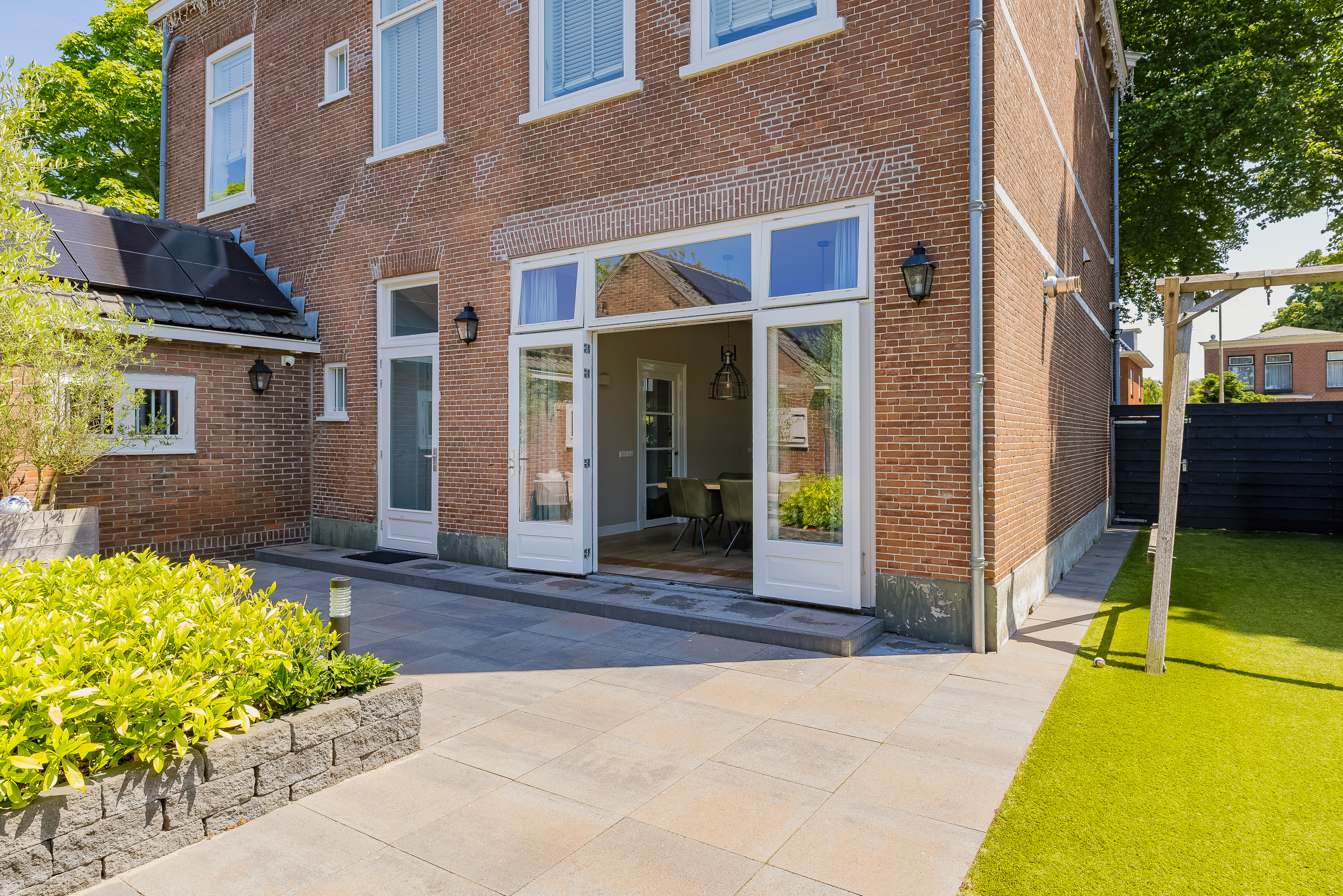 De prachtig aangelegde tuin ligt rondom de woning en heeft o.a. een nieuw in authentieke stijl smeedijzeren hek, verlichting en beregening. De zeer zonnige achtertuin van 13 meter diep en 7.5 meter breed biedt veel privacy en is o.a. voorzien van een grote veranda waarin het ook in de koudere maanden goed toeven is.