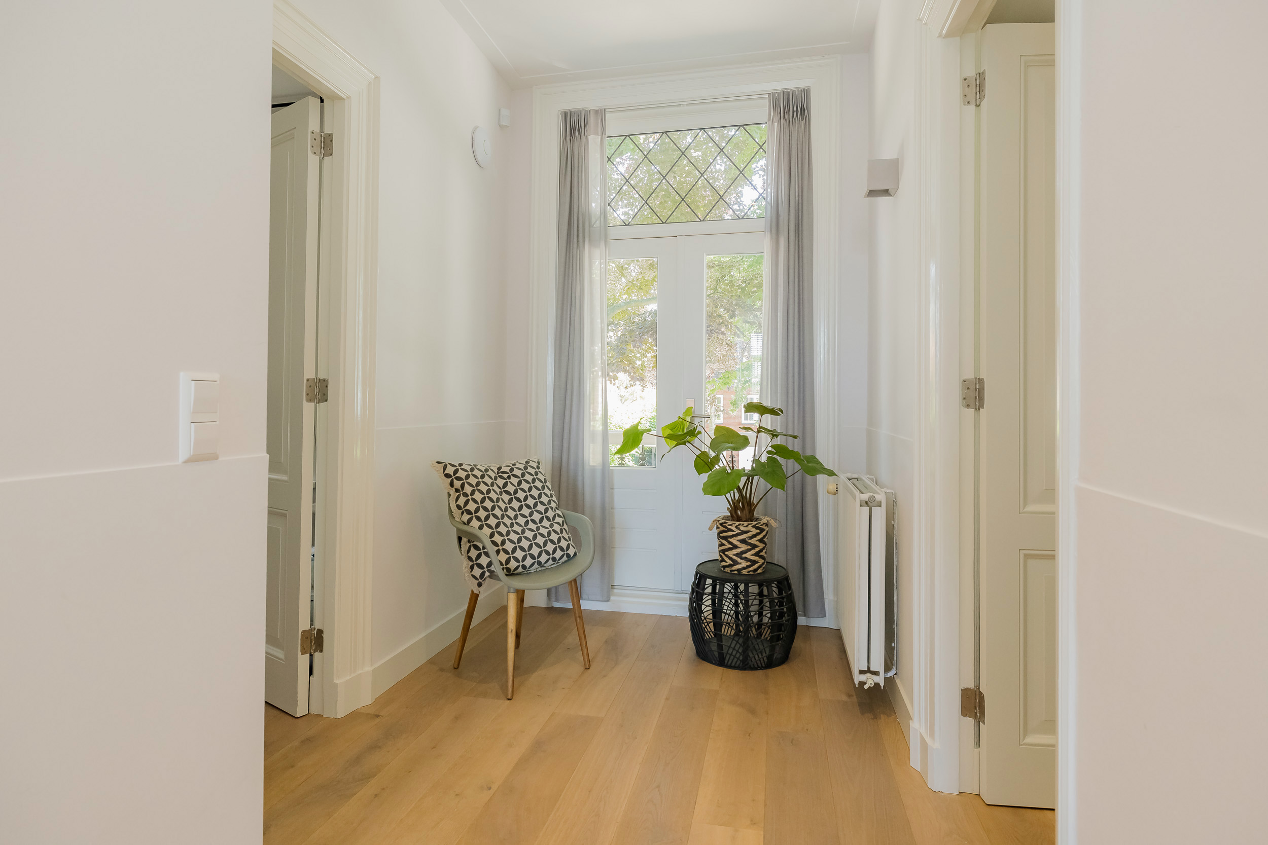 Ook hier een imposant lange hal met deur naar balkon, 3 fantastisch grote slaapkamers met mooie raampartijen, luxe badkamer met inloopdouche, ligbad en brede wastafel met 2 kranen op houten meubel, apart 2e luxe toiletruimte en 4e zeer royale was-/werkkamer.