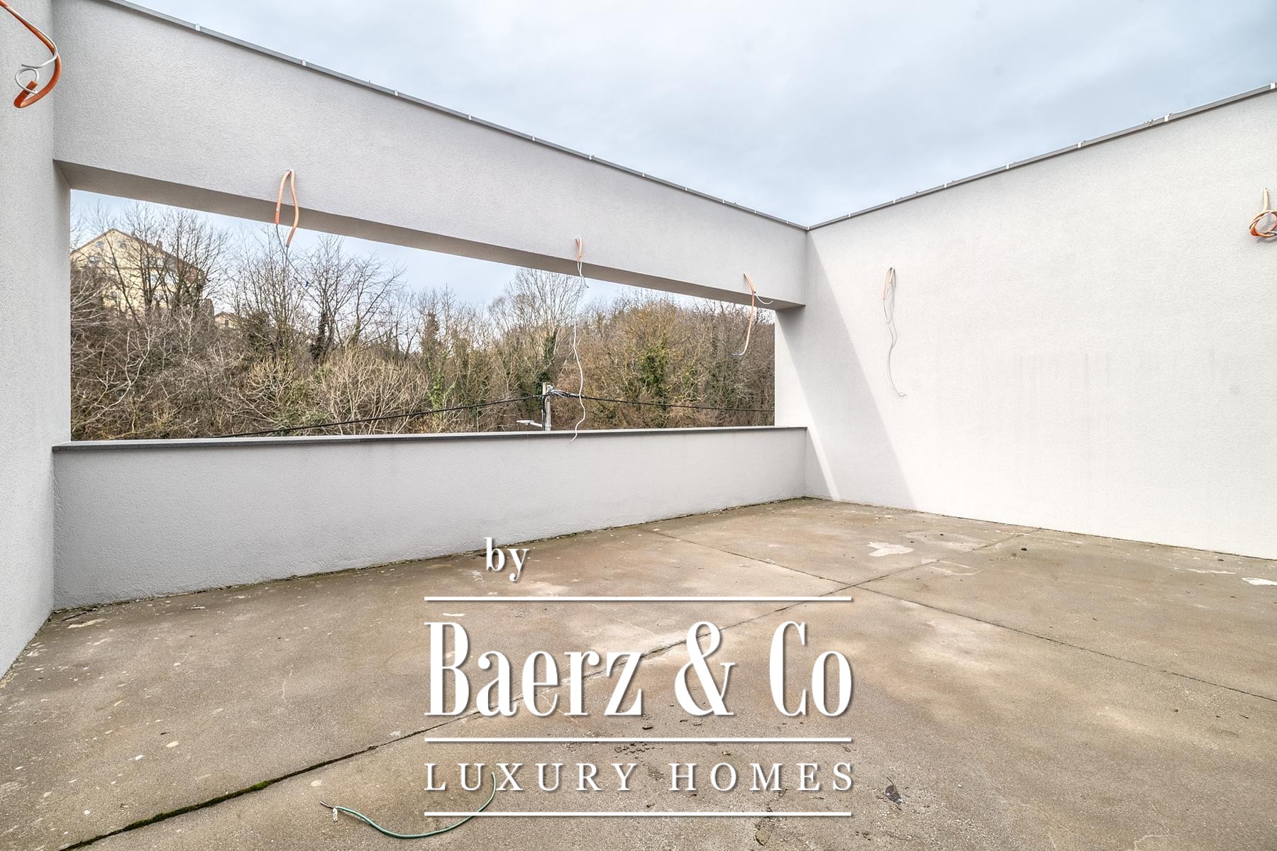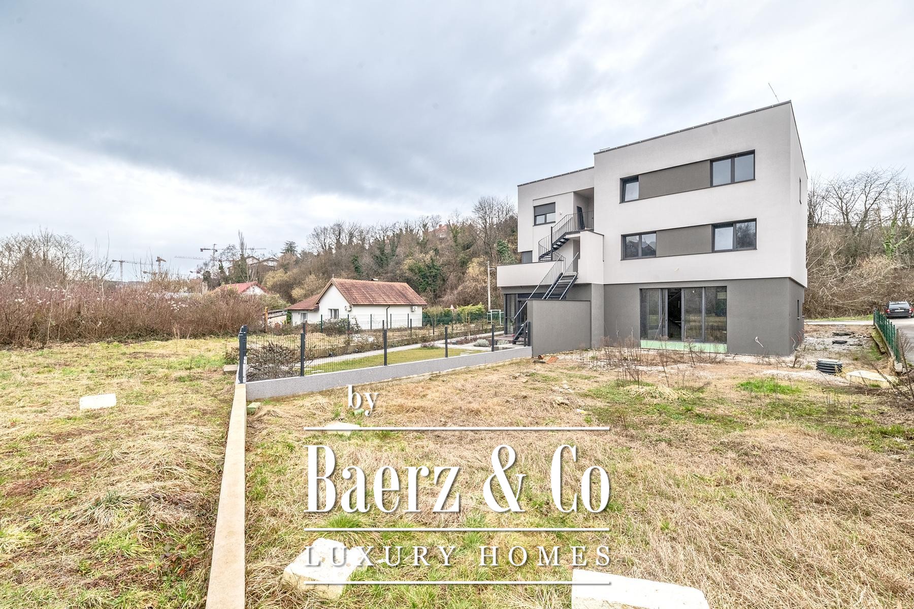 Schüco PVC kozijnen dragen bij aan extra isolatie en rust. Het geheel staat op een perceel van 300 m² en biedt een perfecte balans tussen privacy en gemeenschap, met goede bereikbaarheid van het centrum van Zagreb en alle essentiële voorzieningen in de buurt. Deze luxe halfvrijstaande woning te koop in Maksimir biedt een zeldzame combinatie van geborgenheid en nabijheid, versterkt door discrete tuinruimtes en een ingetogen architectonische degelijkheid.