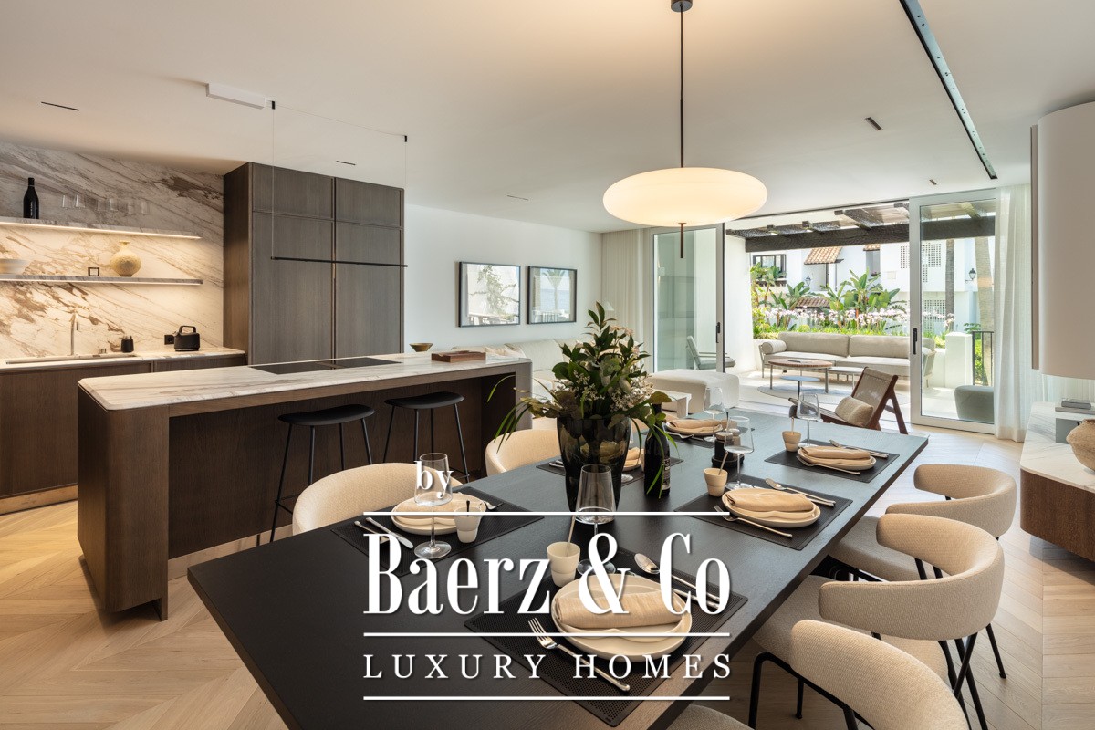Het appartement Marbella Golden Mile ligt in het Puente Romano Resort, waar licht en zeelucht een sfeer van ingetogen verfijning creëren. Dit appartement van 138 m² biedt een open, licht woonconcept, met kamerhoge glazen deuren die terras, gemeenschappelijke tuinen en het kustzicht naadloos binnenlaten. De combinatie van neutrale tinten en natuurlijke houten vloeren weerspiegelt het omliggende mediterrane landschap en brengt rust in zowel de leefruimtes als de slaapvertrekken.