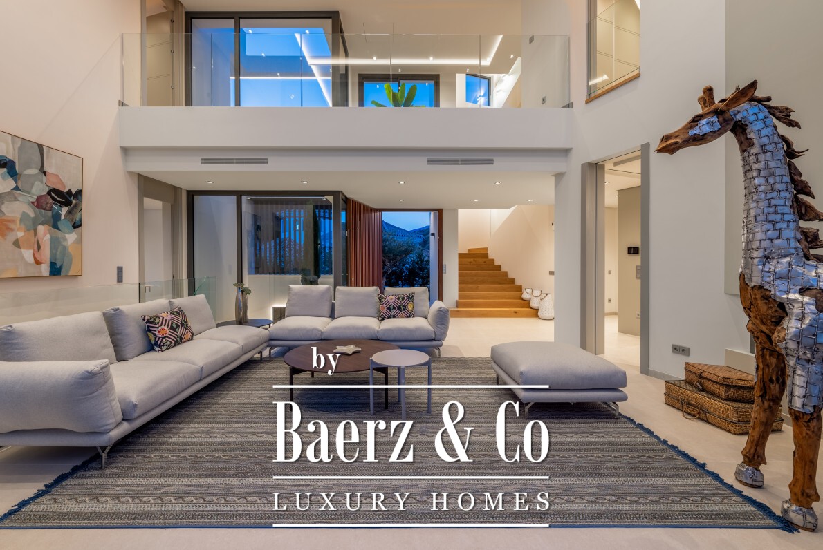 Villa Marbella met uitzicht op zee en bergen biedt verfijnd wonen in de rustige enclave Lomas de la Quinta, een exclusieve, afgesloten gemeenschap die bekend staat om haar privacy en serene sfeer. Deze villa van 764 m² met zes slaapkamers ligt op een perceel van 1.377 m² en heeft een eigentijdse architectuur waarin natuurlijke materialen, royaal licht en ruimte samenkomen. Vanaf het eerste moment bepalen het zeezicht en het uitzicht op de Sierra de las Nieves de sfeer, zowel op de 317 m² aan terrassen als in een van de twee loungegedeeltes waar grote ramen het mediterrane landschap omlijsten.