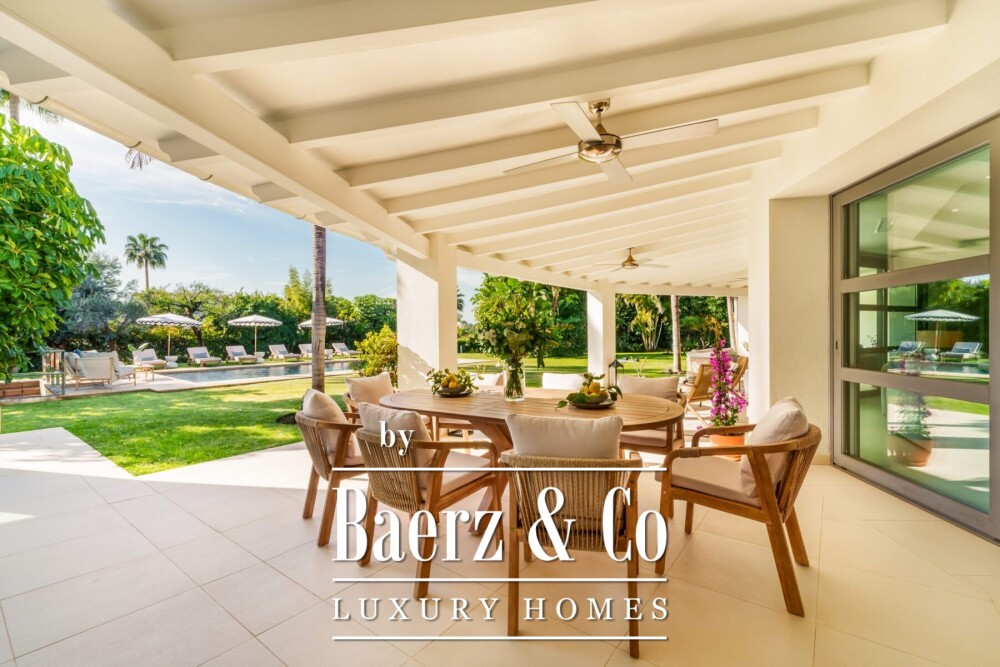 Weelderige tuinaanleg, ontworpen door een gerenommeerd bureau, creëert privacy en karakter met eeuwenoude ficusbomen, Washingtonia robusta palmen, bloeiende jacaranda’s, agave, hibiscus en andere sculpturale beplanting die samen een privéretreat vormen. Discrete voorzieningen op het gebied van veiligheid en comfort zijn onder meer Technal-ramen, Lutron-verlichting, airconditioning, alarm, watertank en een garage voor vier auto's. De nabijheid van kampioenschapsgolfbanen, de mediterrane kust en Marbella’s hoogwaardige voorzieningen maakt deze luxe villa te koop tot een sereen ankerpunt van natuurlijke schoonheid en verfijnd wonen.