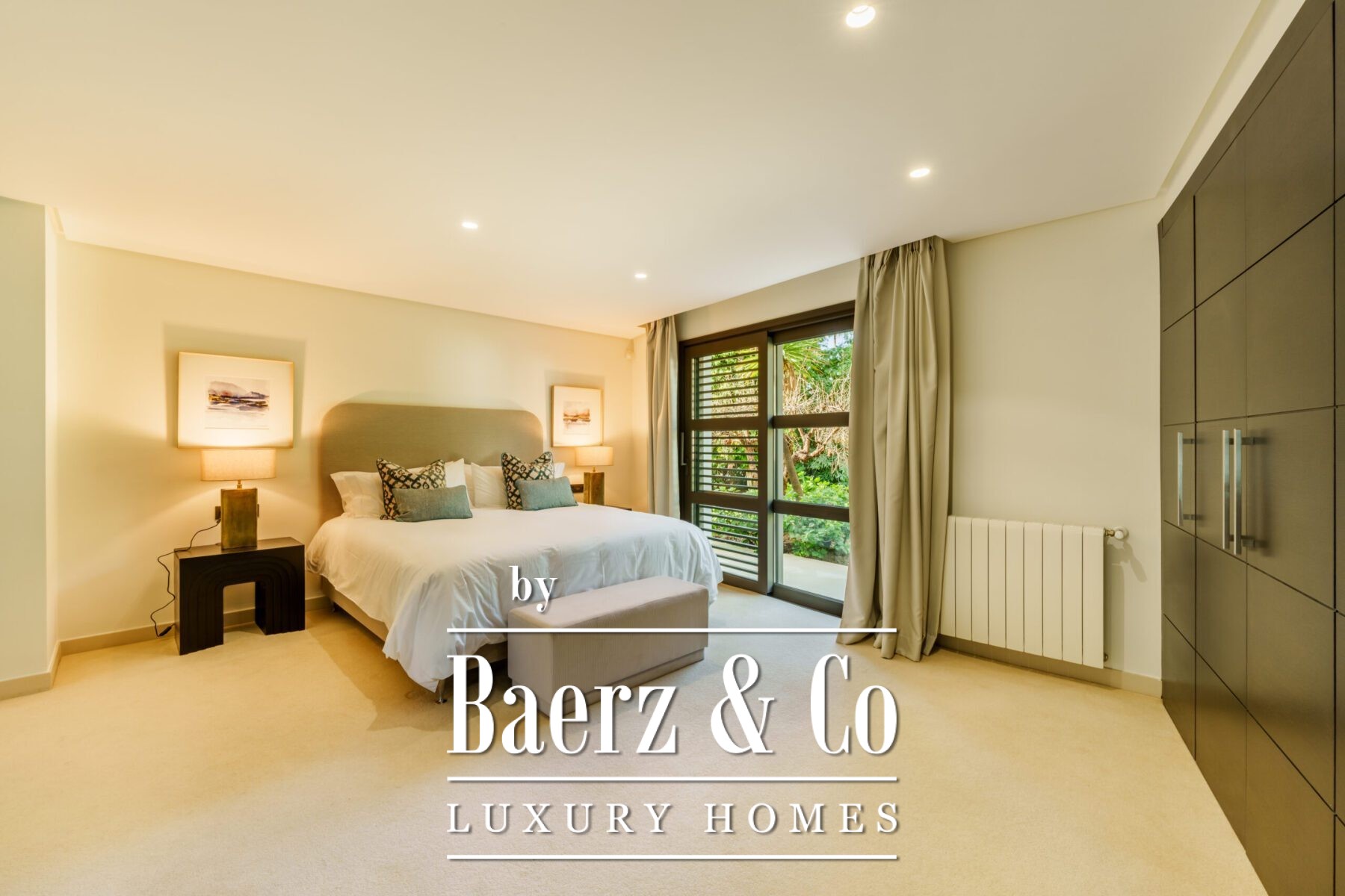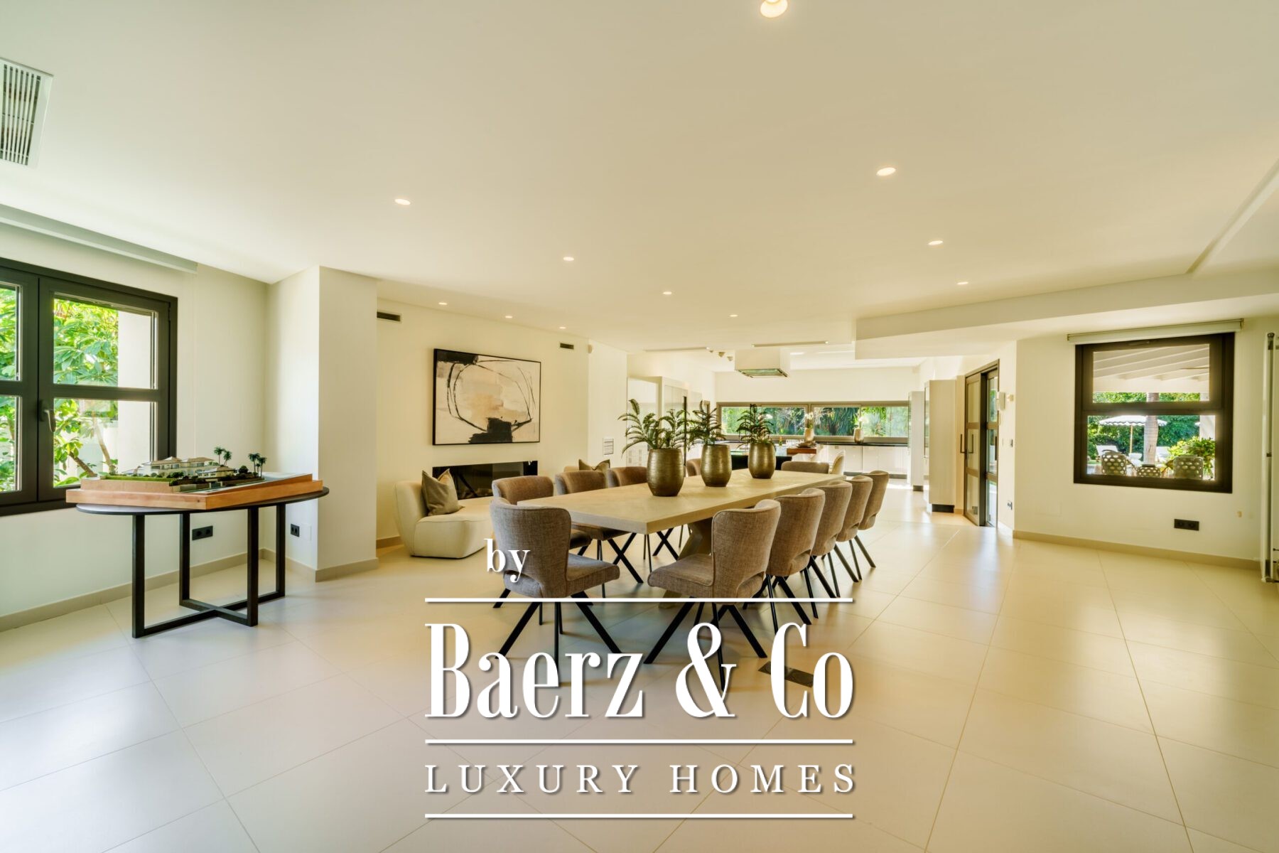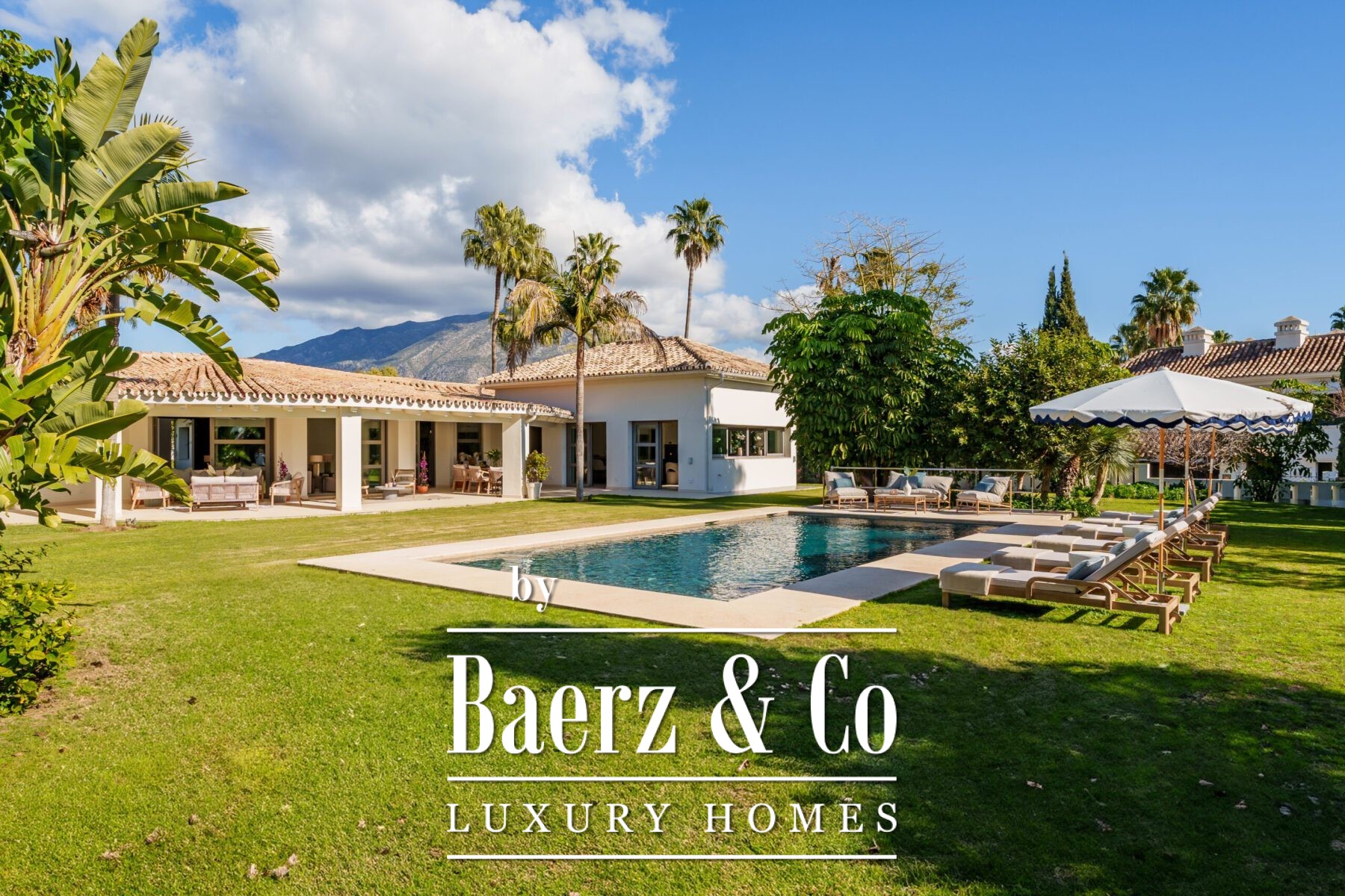 Villa Marbella met volwassen botanische tuinen en uitzicht op de golfbaan strekt zich uit over 722 m² op één niveau, gelegen op een zuidgericht perceel van 3.081 m² in La Cerquilla, Nueva Andalucía. Deze villa in Marbella heeft een doordachte ontwikkeling doorgemaakt, met een markante renovatie in 2013 door Bonifacio Solis en recente zorgvuldige updates in 2024. Het resultaat is een woning waarin architectonische helderheid en botanische pracht in balans zijn gebracht met discretie en duurzame kwaliteit.