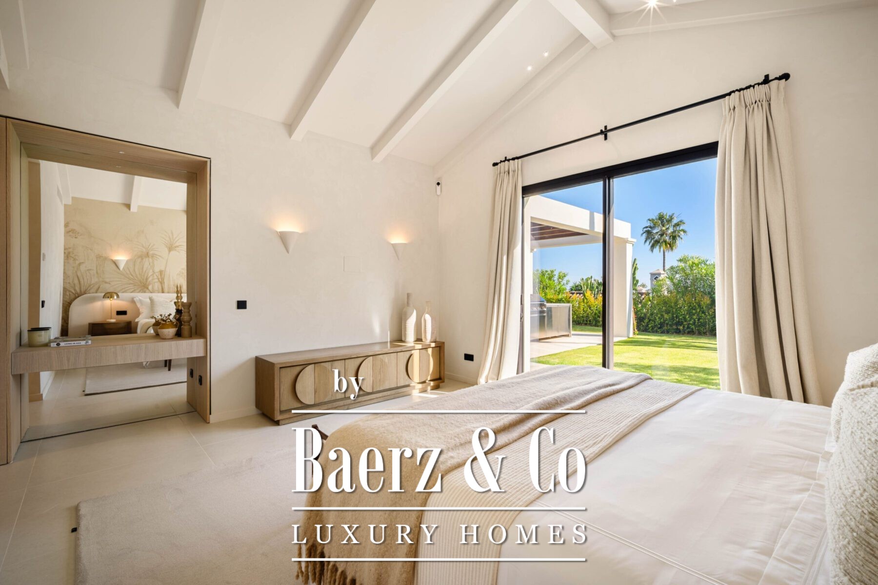 De vier slaapkamers en vier badkamers bieden rust, privacy en comfort. De master suite geeft toegang tot fraai aangelegde tuinen, waar buitenleven een nieuwe dimensie krijgt dankzij een verzonken lounge, buitenkeuken, barbecue en diverse plekken om te ontspannen of gasten te ontvangen. Een serene patio met waterpartij vormt een extra toevluchtsoord, terwijl voorzieningen zoals airconditioning, alarmsysteem, vloerverwarming en een open haard het hele jaar door comfort bieden. De nabijheid tot golfbanen, voorzieningen en de zee bepaalt het dagelijkse ritme en brengt geborgenheid en verbinding samen—op een van Marbella’s meest gewilde locaties. Voor wie een luxe villa zoekt in Marbella, verenigt dit adres verfijnd wonen en kust sereniteit.