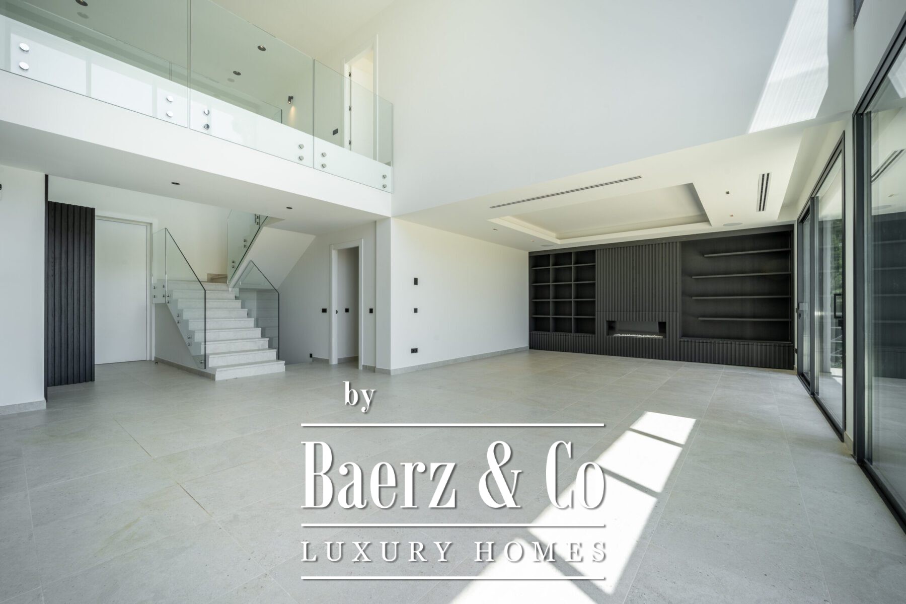 Op de verdieping genieten twee slaapkamers met en-suite badkamer van uitzicht op zee, terwijl de master suite opvalt door haar ruimte en stijlvolle uitstraling. Het solarium op het tussenliggende niveau is voorbereid op een buitenkeuken en jacuzzi, dé plek voor sfeervolle bijeenkomsten en zonsondergangen in de open lucht. De benedenverdieping is ingericht voor ontspanning en privacy en biedt een fitnessruimte, bioscoopzaal voor negen personen, extra slaapkamer met badkamer, wasruimte en gastfaciliteiten.