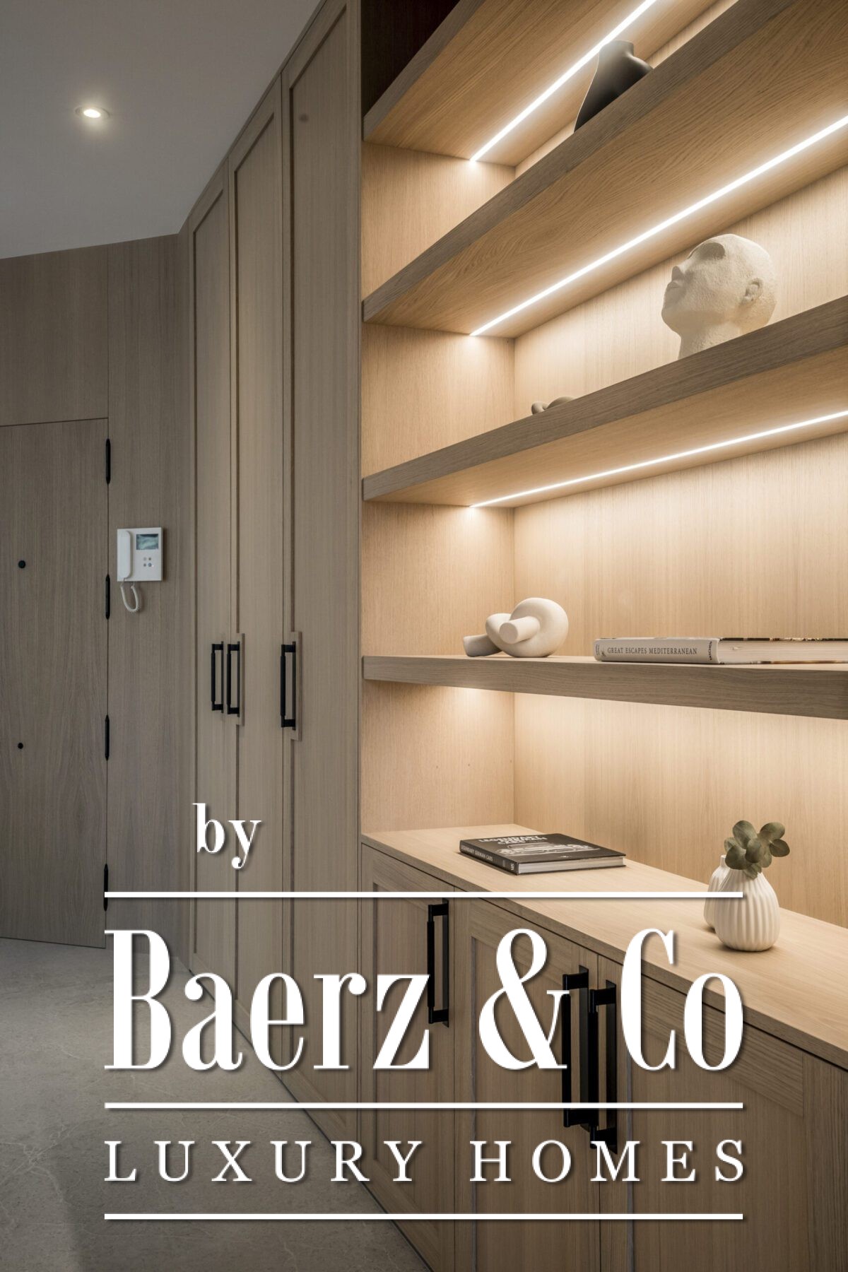 Het interieur van 145 m² omvat drie slaapkamers, ieder met op maat gemaakte inbouwkasten, subtiele LED-verlichting en sfeervolle houtdetails. De badkamers zijn uitgerust met Dornbracht-douches en -kranen; de mastersuite biedt een dubbele wastafel en een sculpturaal bad. De sfeer is overal in het appartement in balans, warm en royaal van opzet.