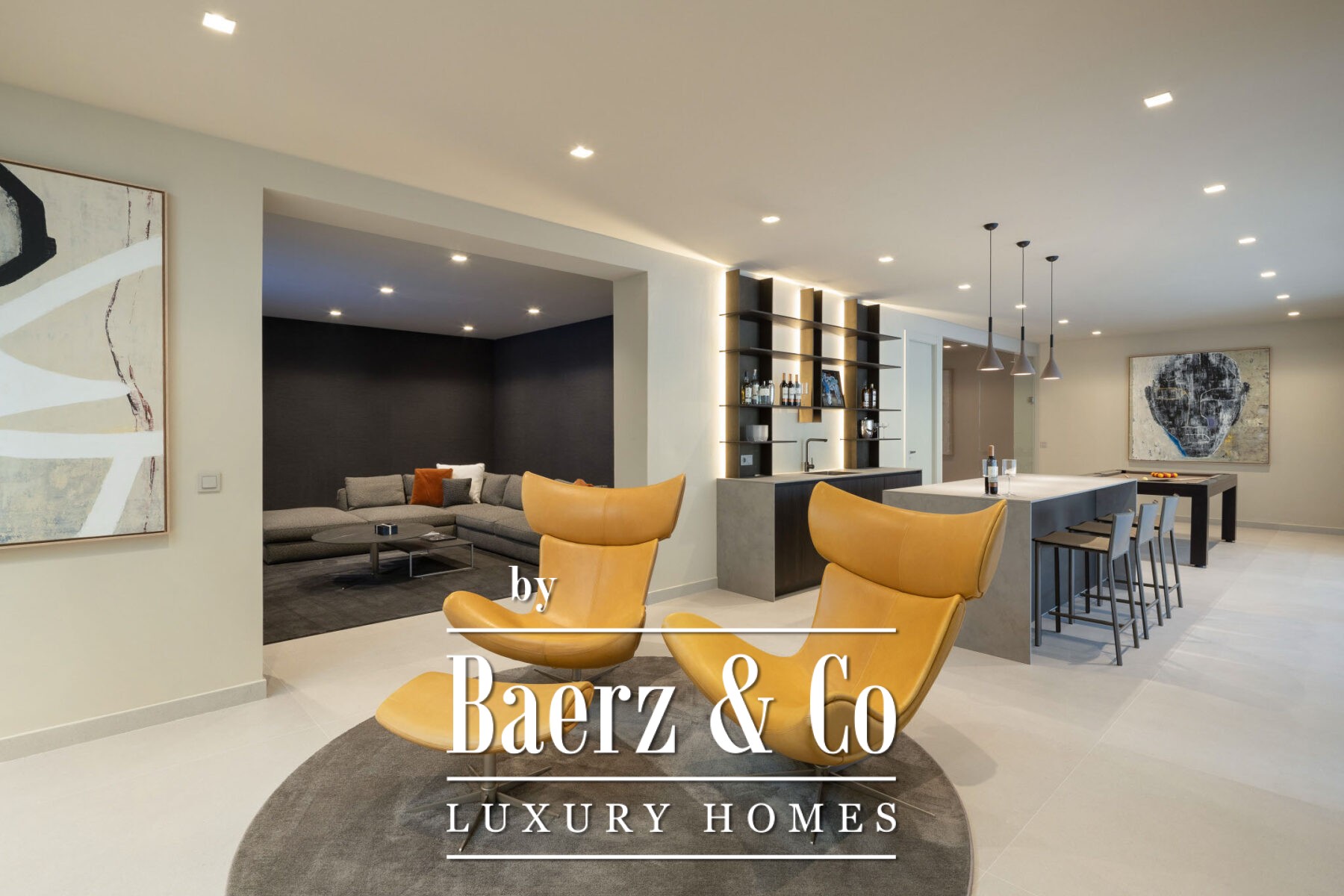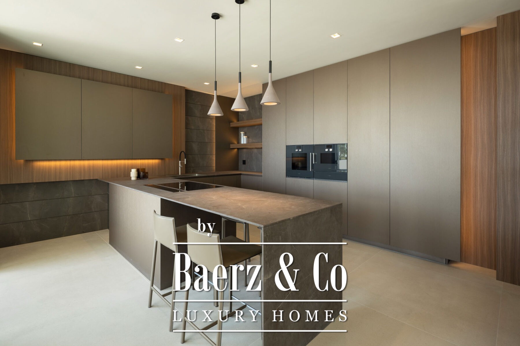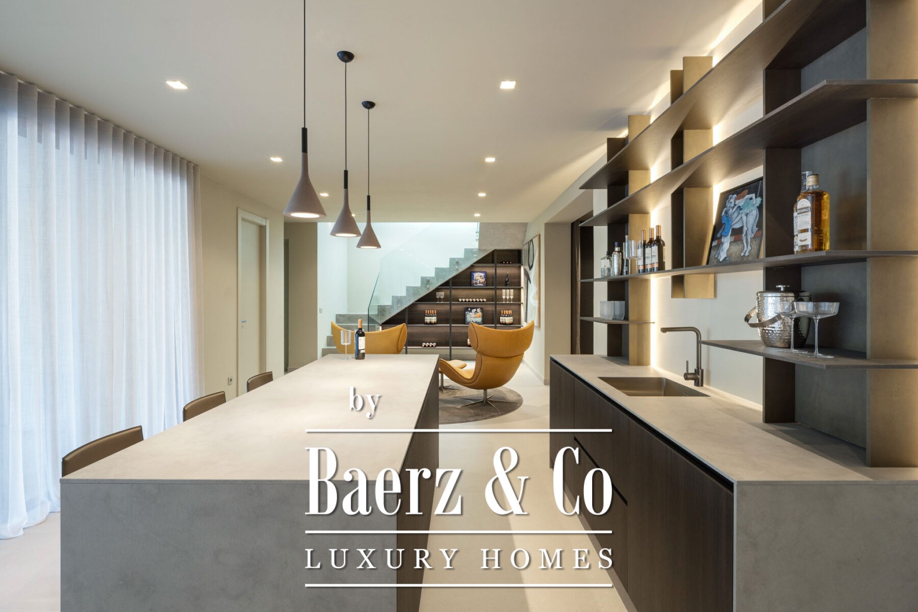 Het wonen hier wordt gekenmerkt door een naadloze overgang tussen binnen en buiten. Op het zuiden georiënteerde terrassen bieden panoramisch uitzicht op zee en bergen, terwijl het zoutwater infinity-zwembad van 18 meter een privéhorizon creëert. Het wellnessniveau is een oase van rust, met een sauna, fitnessruimte, bar en bioscoopzaal, een suite die uitnodigt tot reflectie én gezellig samenzijn. Koolnova klimaatregeling, vloerverwarming en een 10 kW zonnestroomsysteem zorgen voor een doordachte, efficiënte levensstijl.