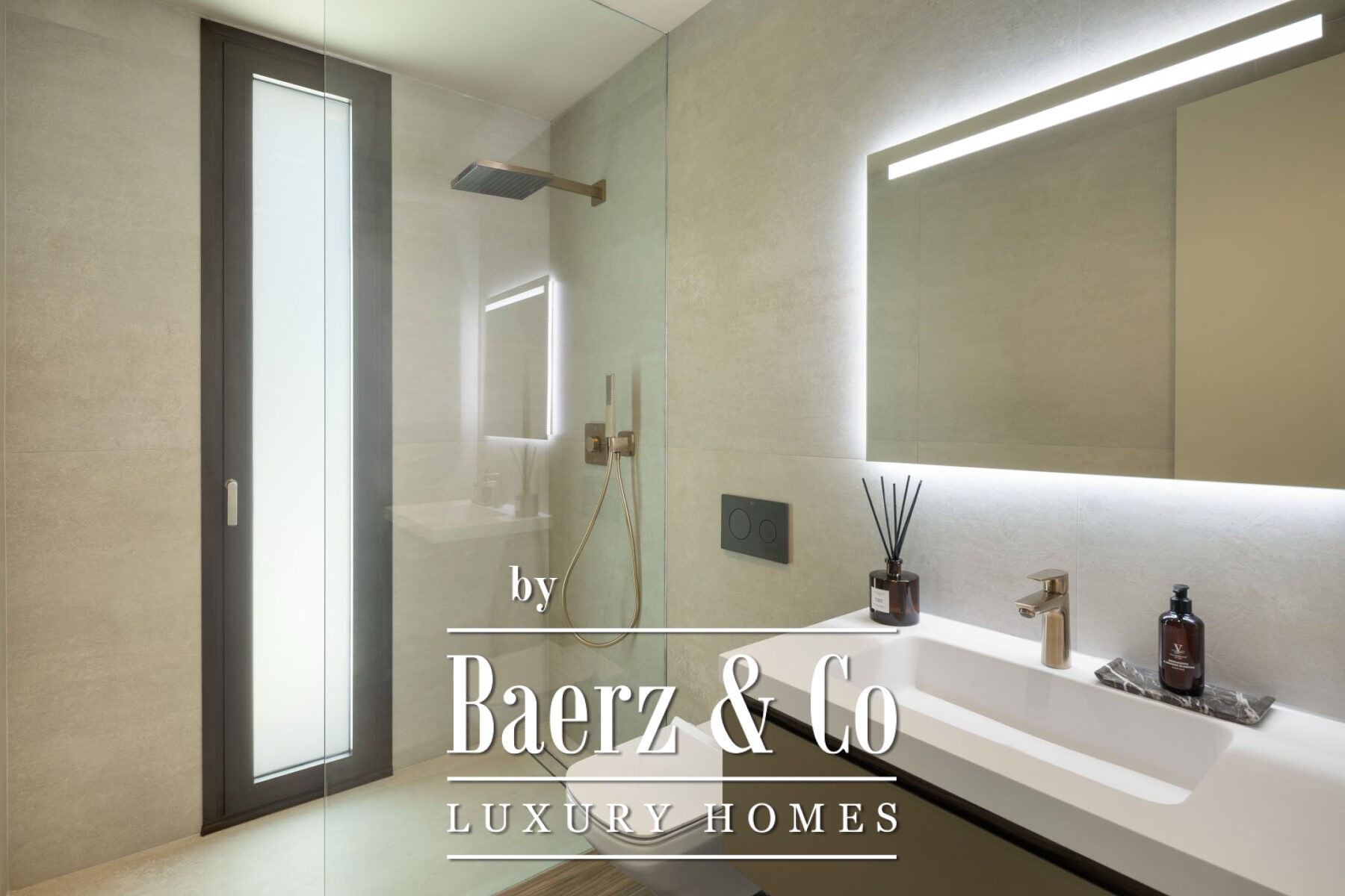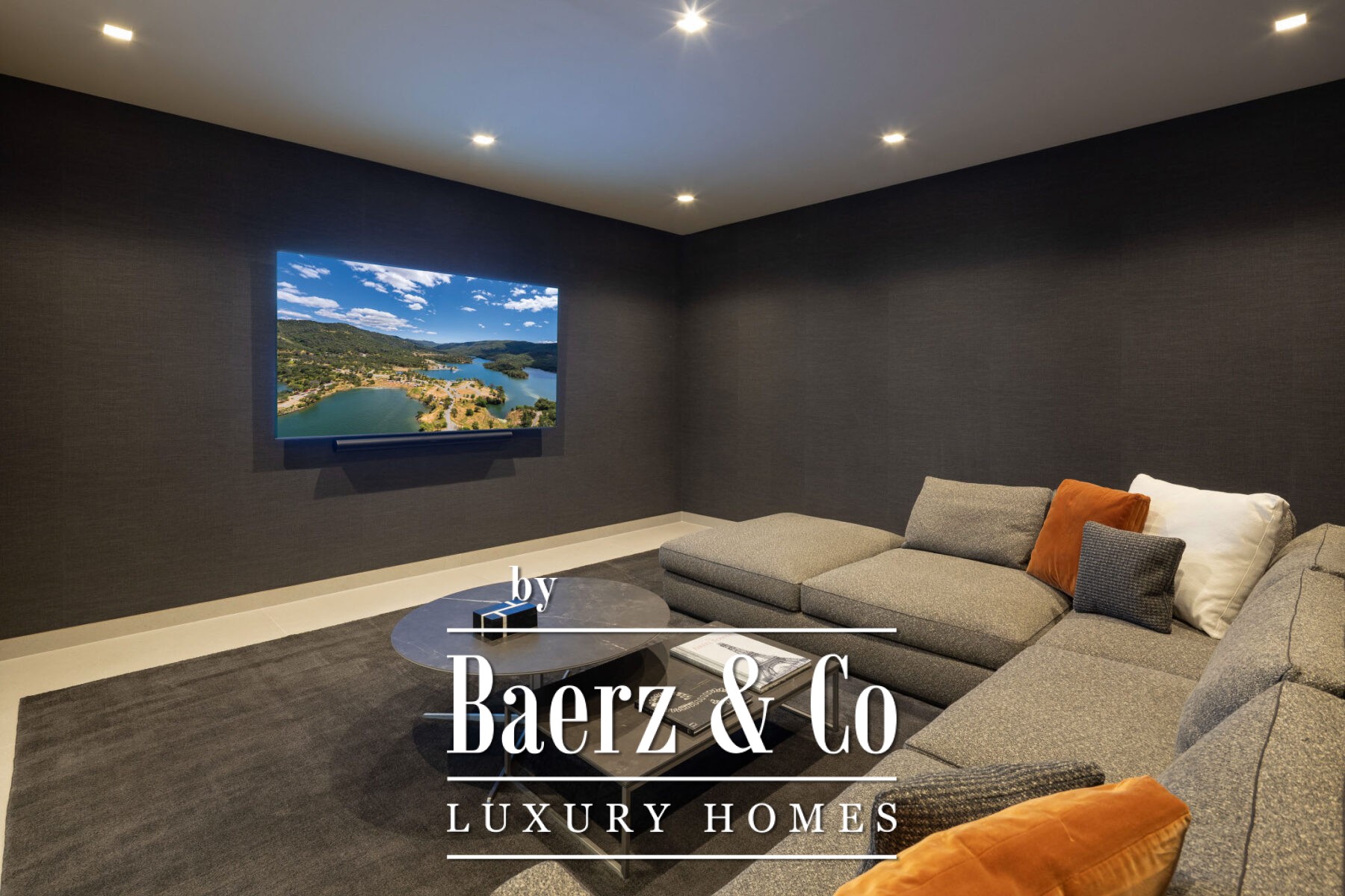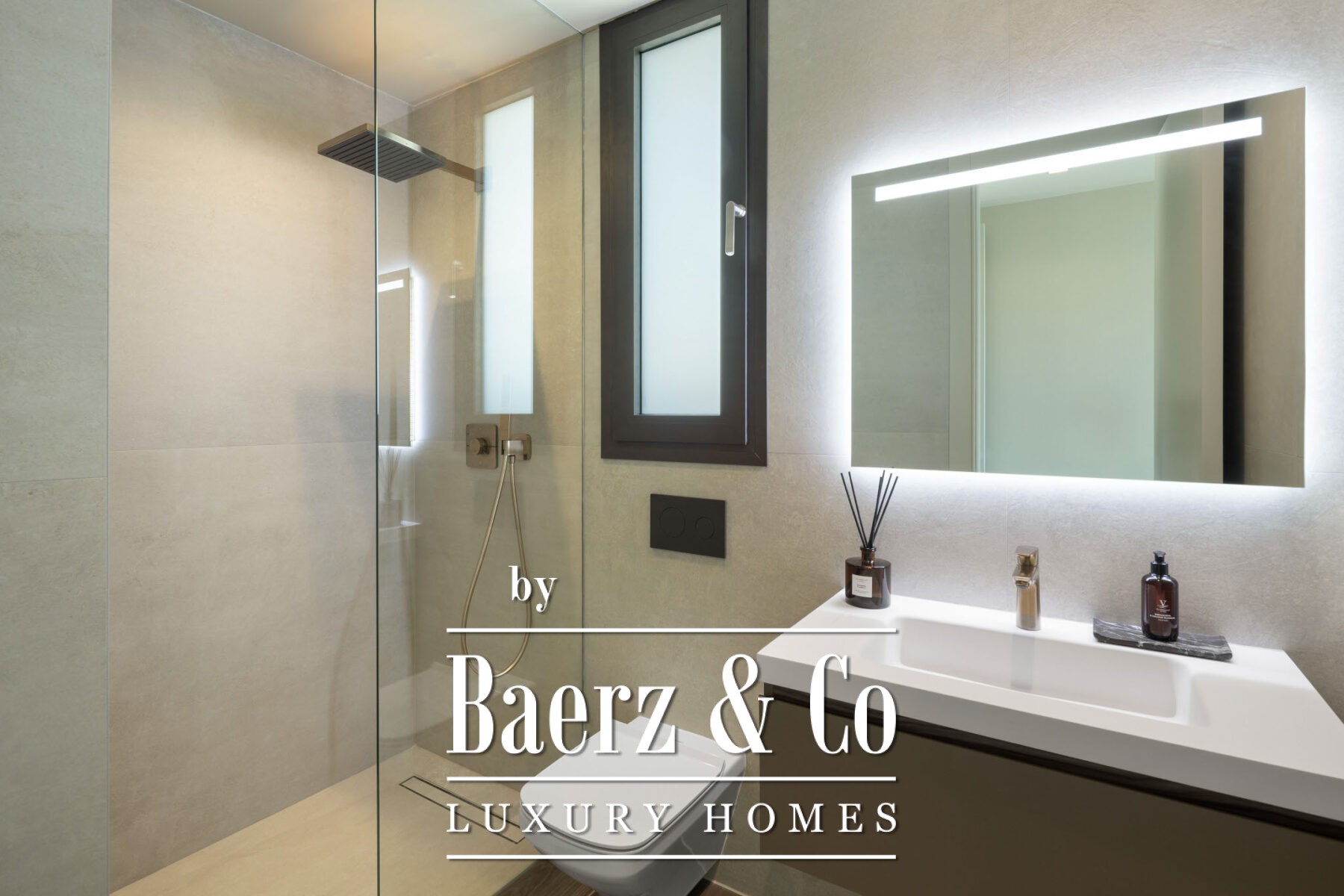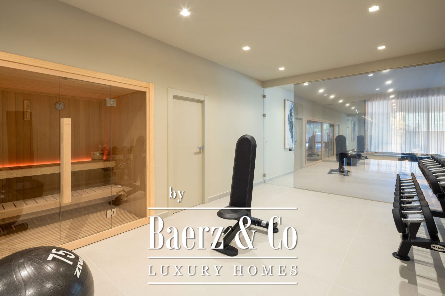 Het wonen hier wordt gekenmerkt door een naadloze overgang tussen binnen en buiten. Op het zuiden georiënteerde terrassen bieden panoramisch uitzicht op zee en bergen, terwijl het zoutwater infinity-zwembad van 18 meter een privéhorizon creëert. Het wellnessniveau is een oase van rust, met een sauna, fitnessruimte, bar en bioscoopzaal, een suite die uitnodigt tot reflectie én gezellig samenzijn. Koolnova klimaatregeling, vloerverwarming en een 10 kW zonnestroomsysteem zorgen voor een doordachte, efficiënte levensstijl.