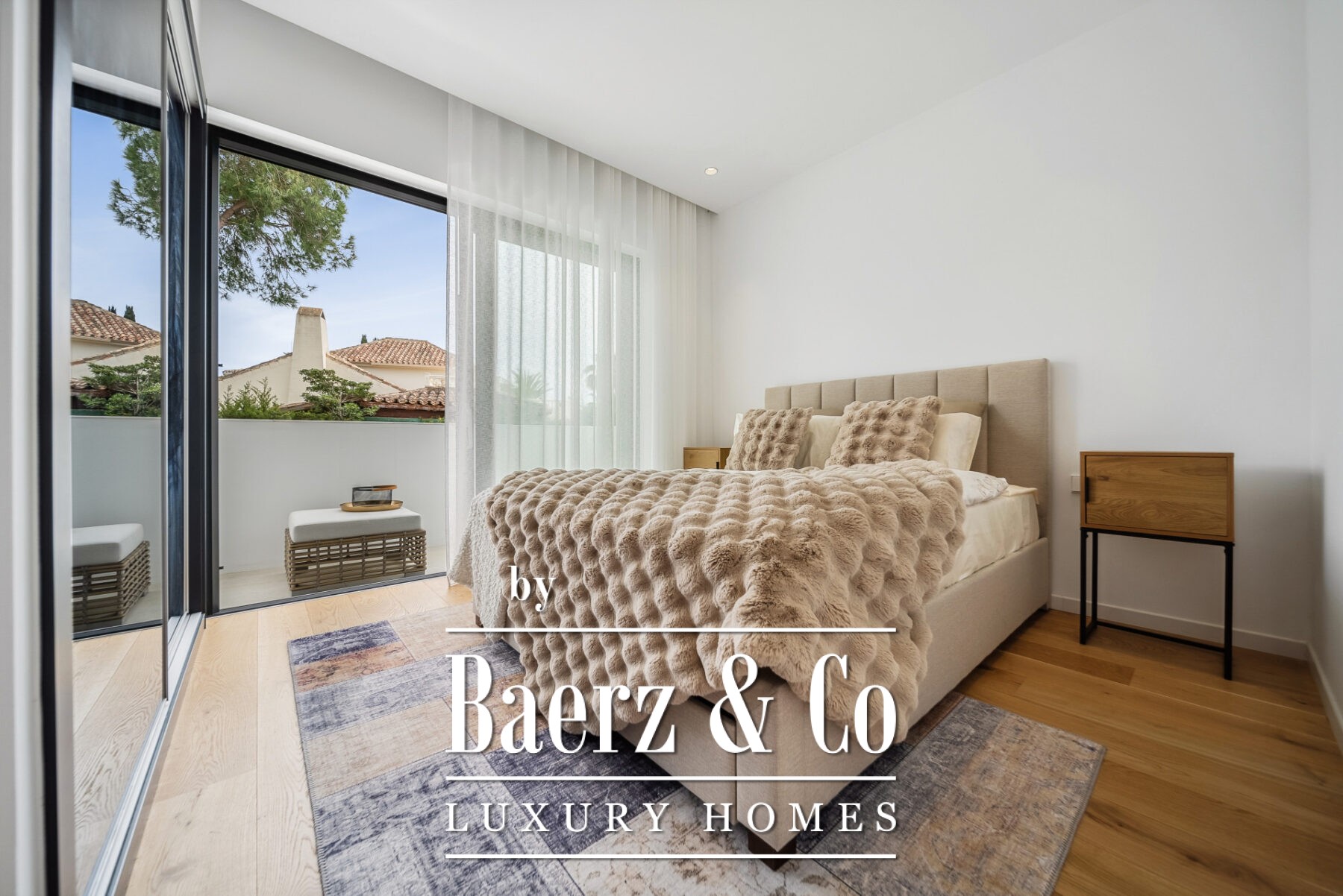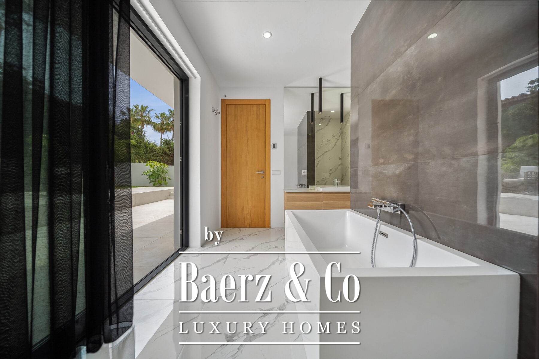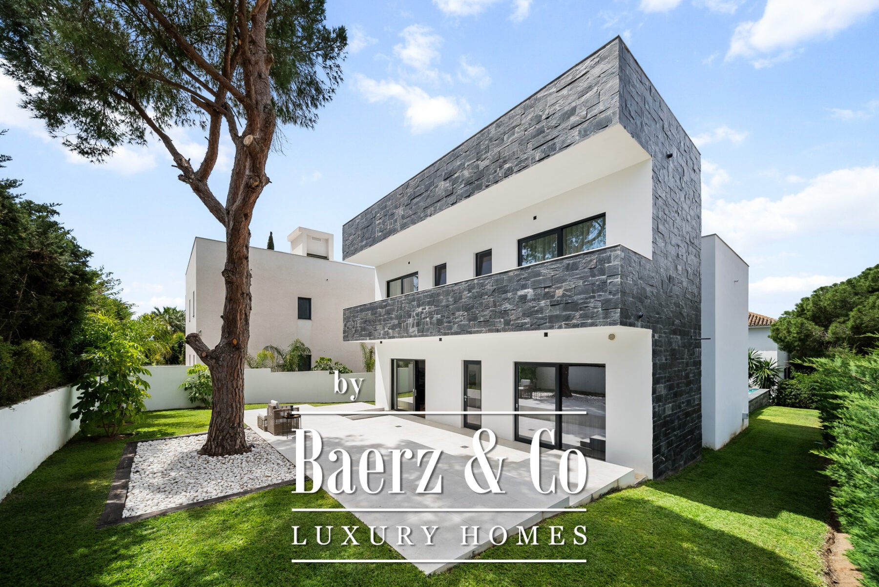 Moderne villa Marbella belichaamt verfijnd wonen aan de kust in Marbesa, verscholen in een rustige doodlopende straat op slechts enkele momenten van de Middellandse Zee. De villa meet 479 m² over drie verdiepingen en kenmerkt zich door strakke architectonische lijnen, eikenhouten vloeren en ramen van vloer tot plafond die natuurlijk licht in elke hoek brengen. Zes slaapkamers en zes badkamers zijn met subtiele elegantie en privacy geordend; iedere ruimte is zorgvuldig afgestemd op comfort het hele jaar door.