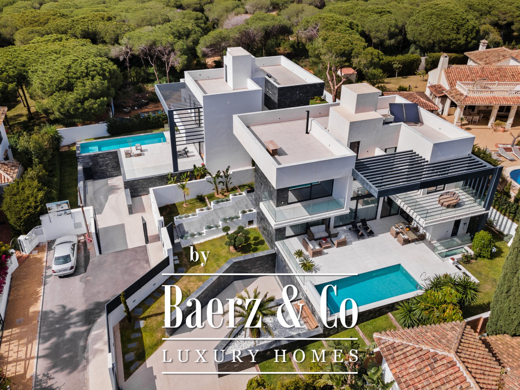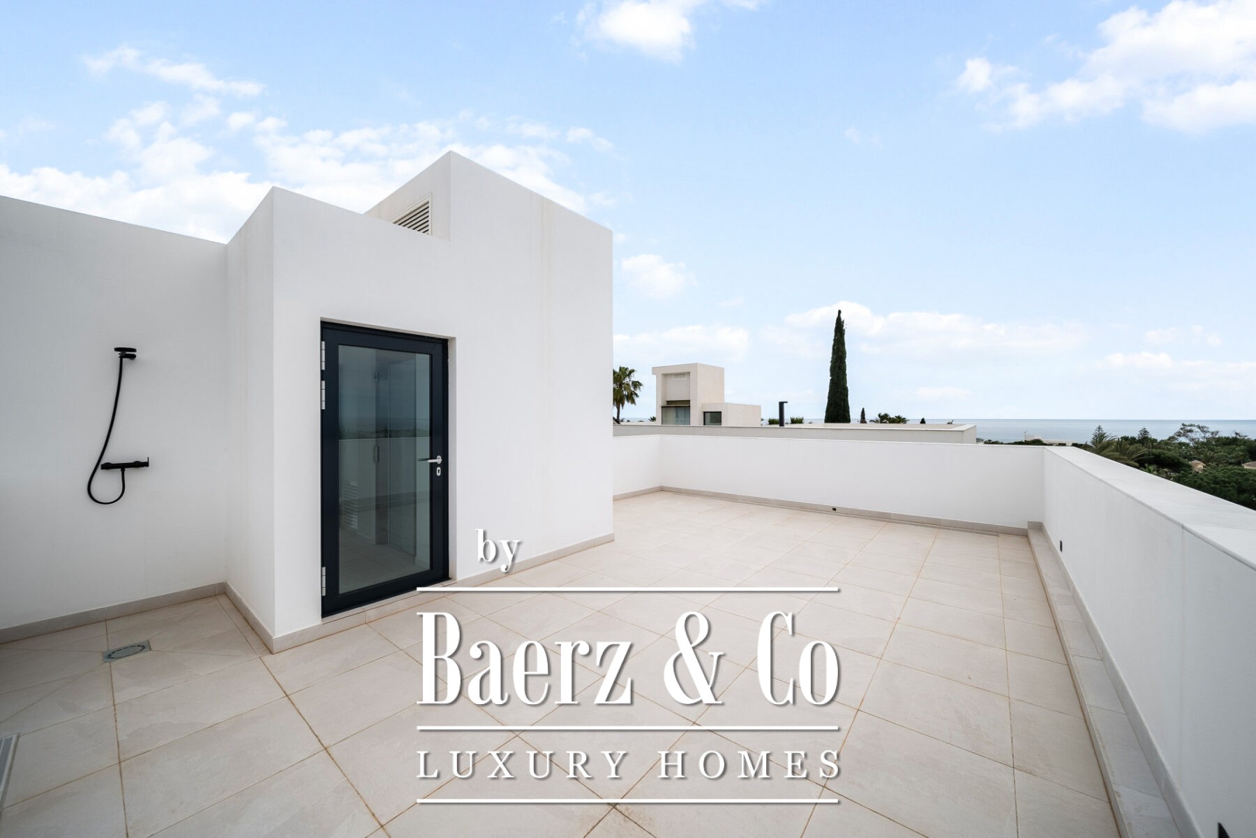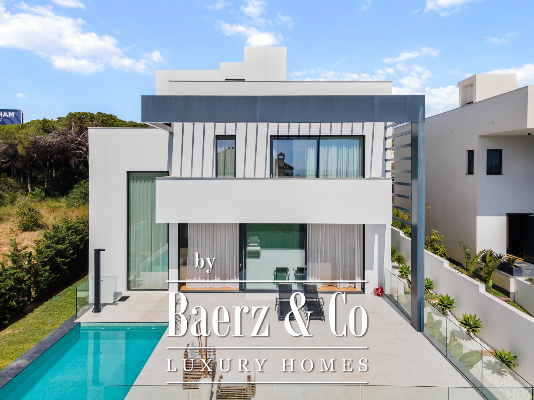 Moderne villa Marbella belichaamt verfijnd wonen aan de kust in Marbesa, verscholen in een rustige doodlopende straat op slechts enkele momenten van de Middellandse Zee. De villa meet 479 m² over drie verdiepingen en kenmerkt zich door strakke architectonische lijnen, eikenhouten vloeren en ramen van vloer tot plafond die natuurlijk licht in elke hoek brengen. Zes slaapkamers en zes badkamers zijn met subtiele elegantie en privacy geordend; iedere ruimte is zorgvuldig afgestemd op comfort het hele jaar door.