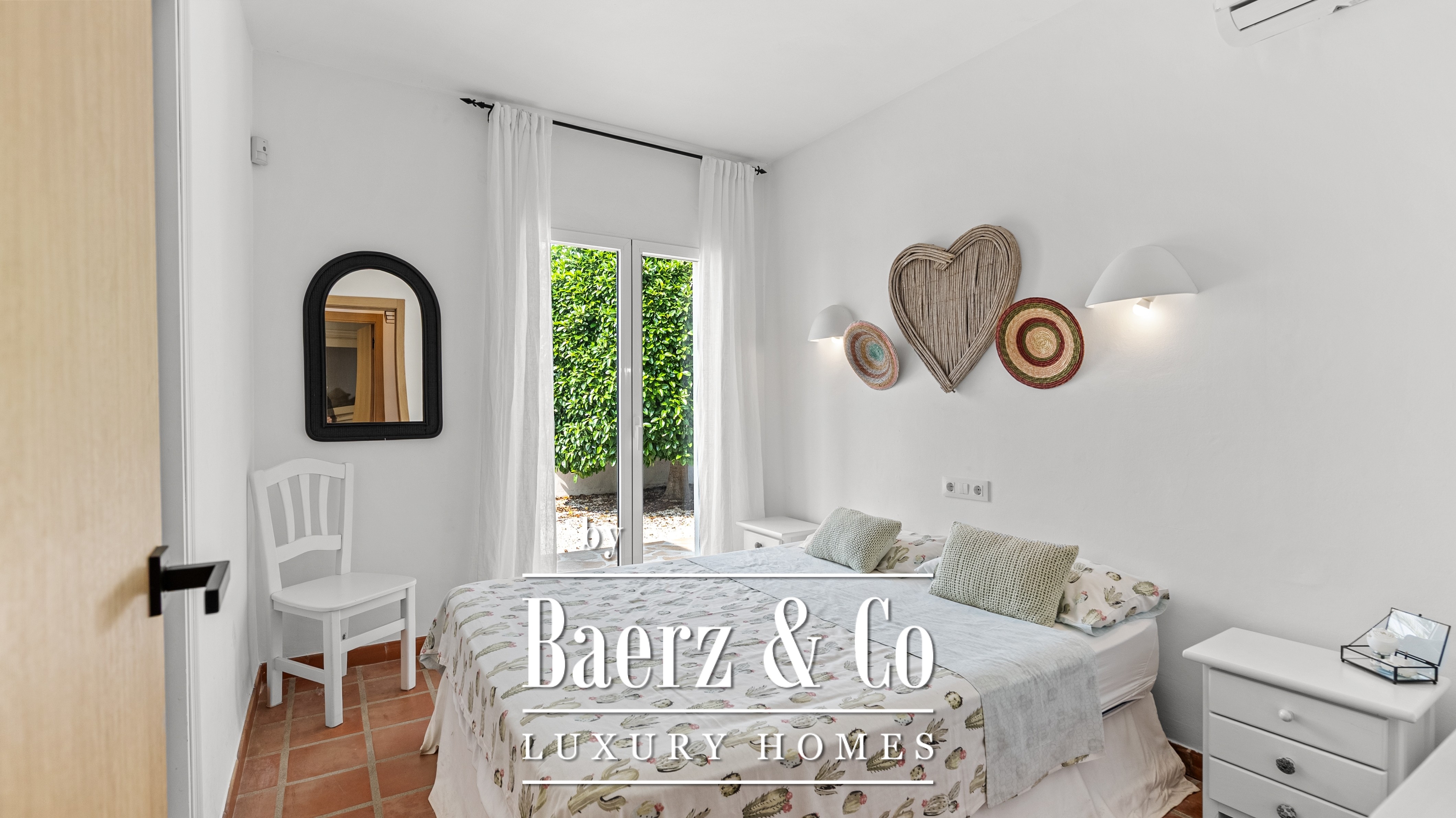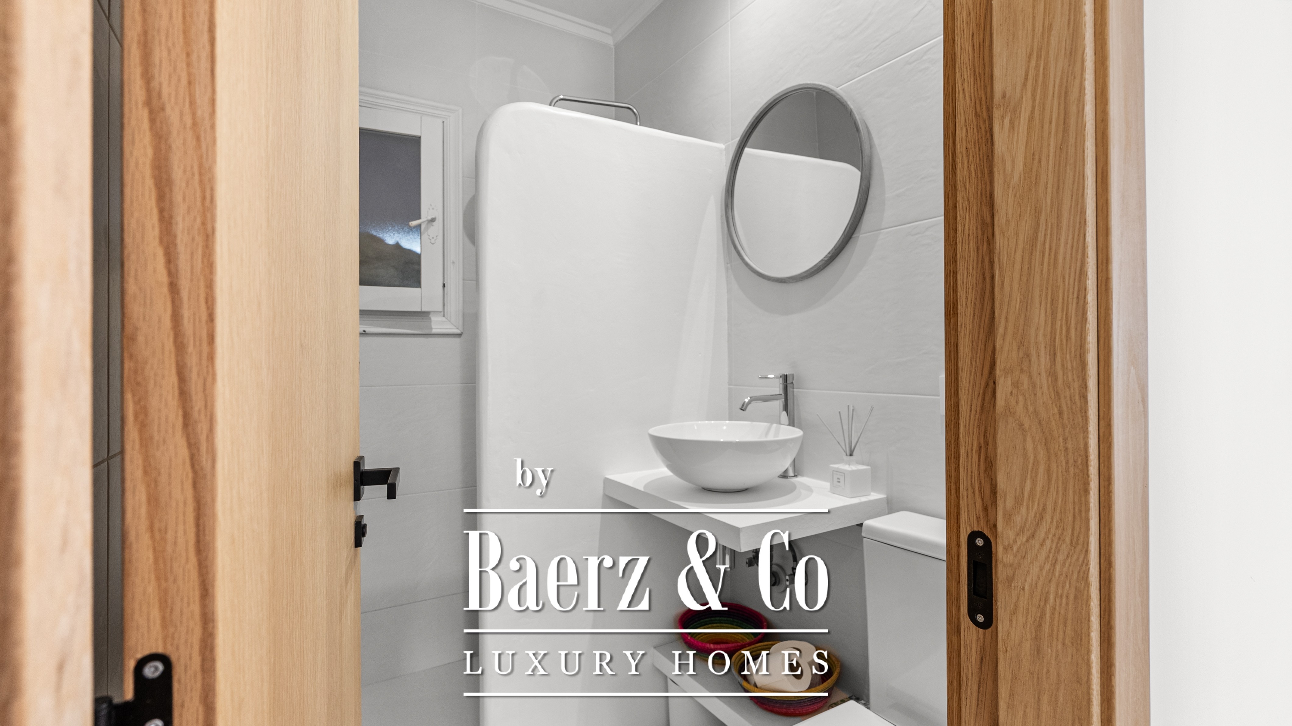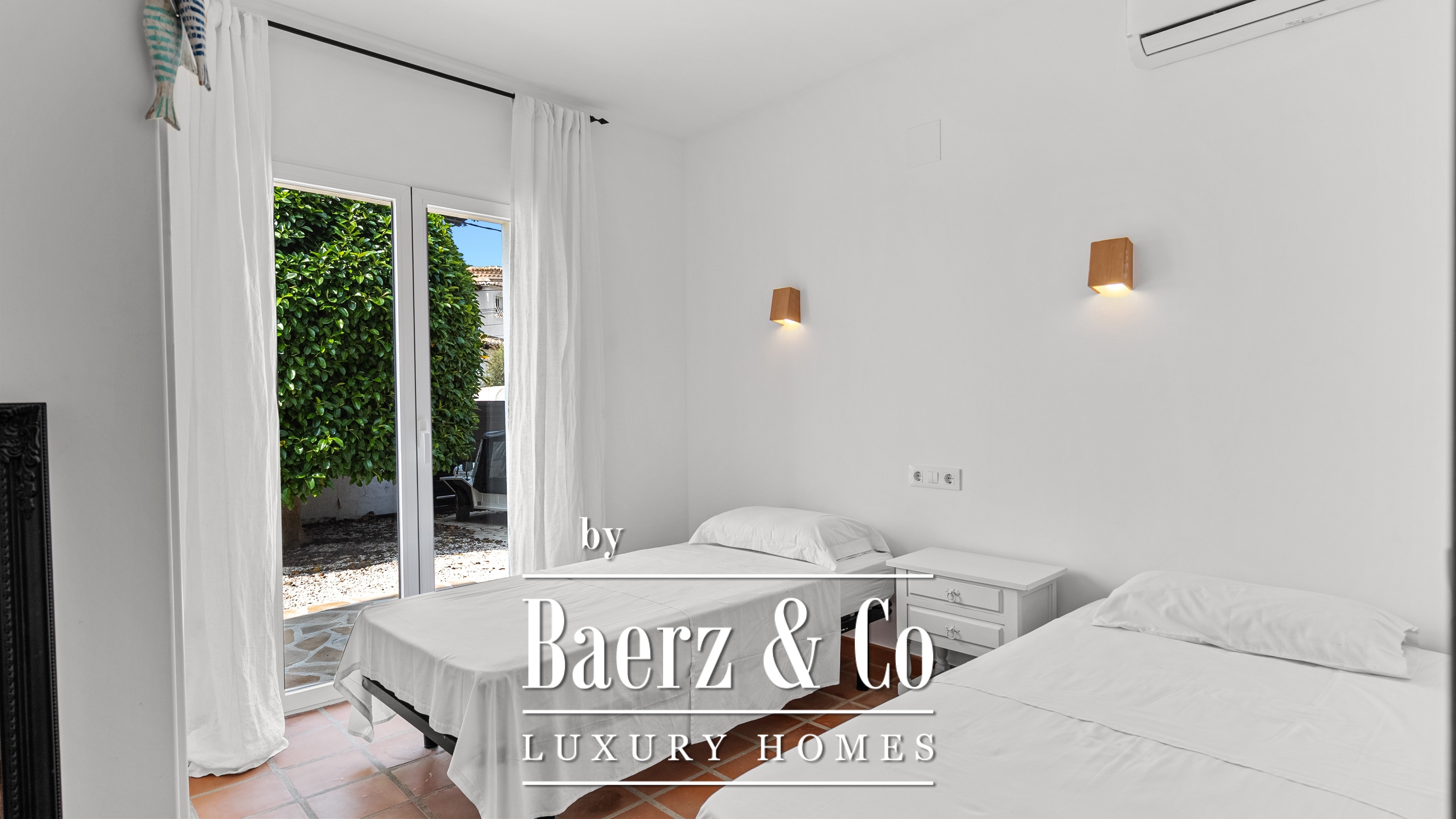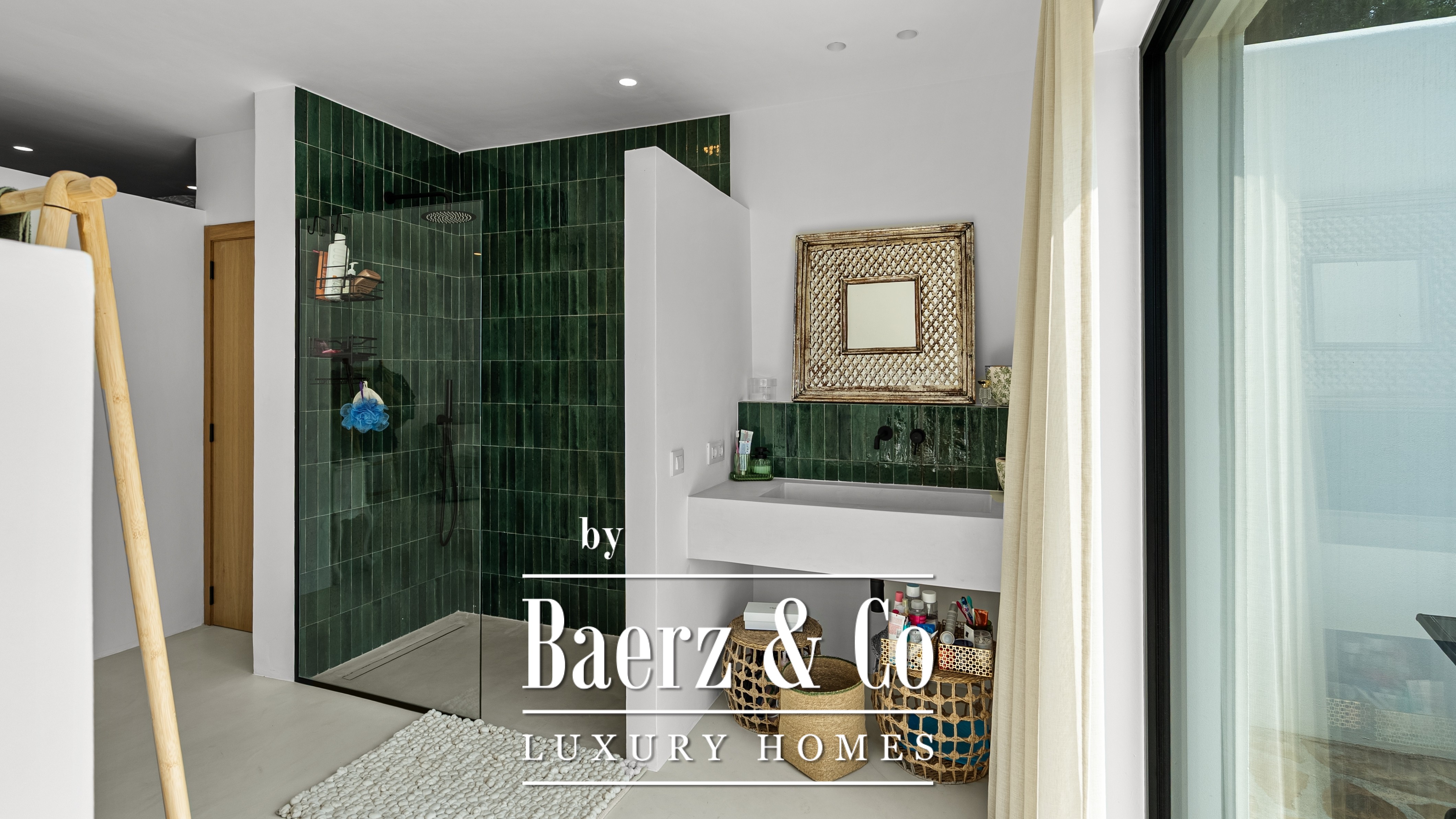De villa beschikt over vier ruime slaapkamers en drie verfijnde badkamers, waaronder een master suite met een uniek detail: uitzicht op zee, zelfs vanuit de douche – een dagelijkse dosis luxe.