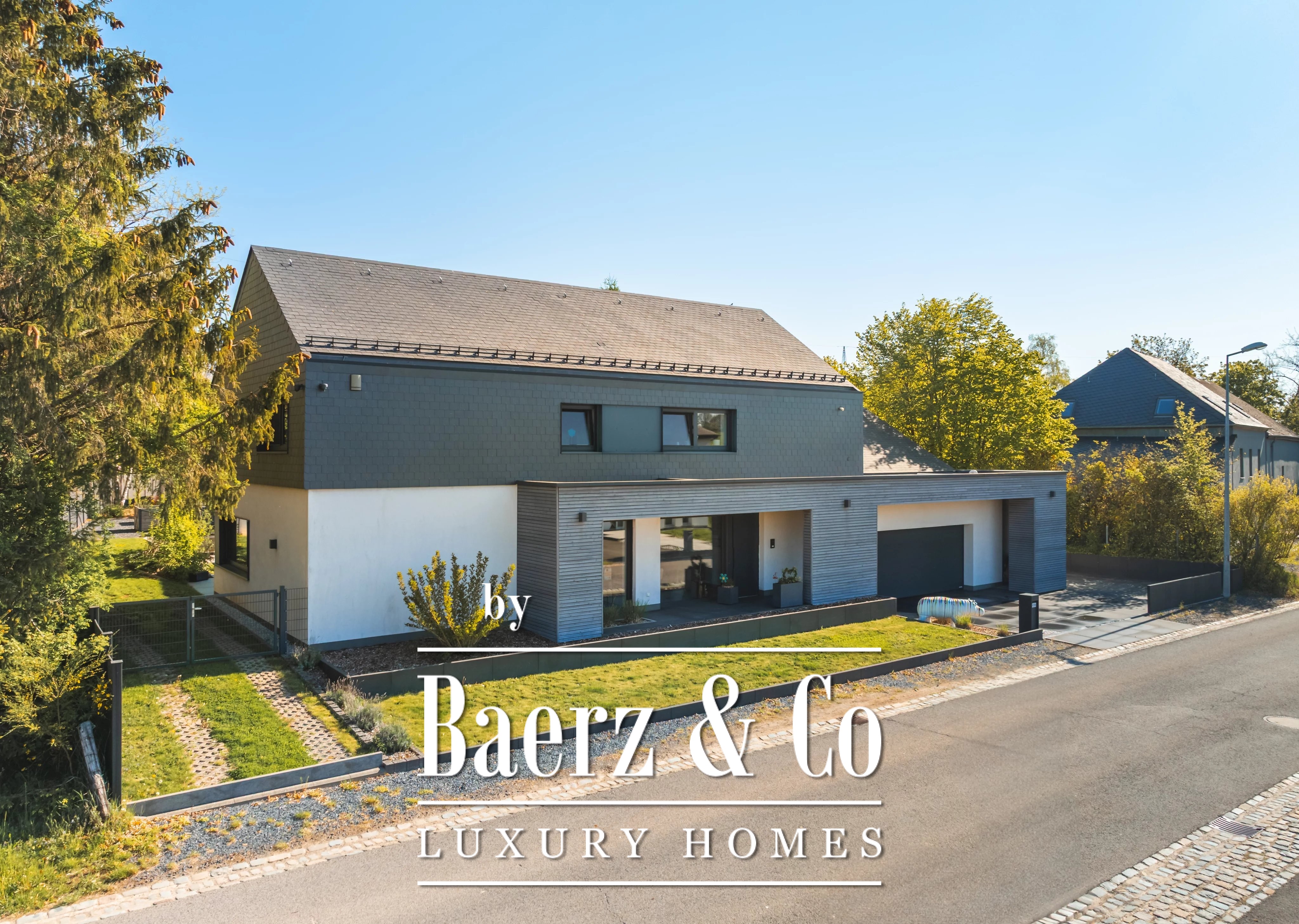Prestigieus huis van 500 m2 waarvan 340 m2 bewoonbaar met beboste en omheinde tuin te koop in een rustige omgeving in het noorden van Luxemburg.