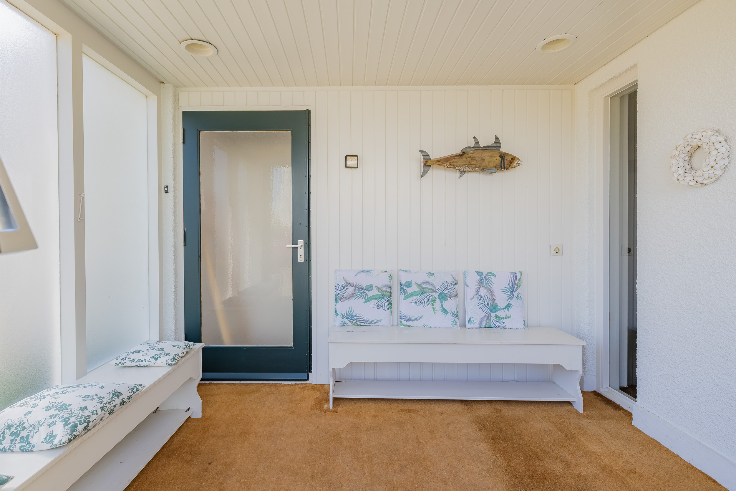 De keuken, voorzien van inbouwapparatuur, is praktisch ingericht met veel kastruimte. Verder vind je op de begane grond een lichte 2e woonkamer met een gashaard, ideaal voor ontspanning of als ruime werkkamer. Daarnaast beschikt de begane grond over een comfortabele slaapkamer met inbouwkast. Het ruime zonnige terras op het zuiden is bereikbaar via de beide woonkamers. De badkamer in de hal is ideaal om na een dagje strand het zand direct van je af te spoelen.
