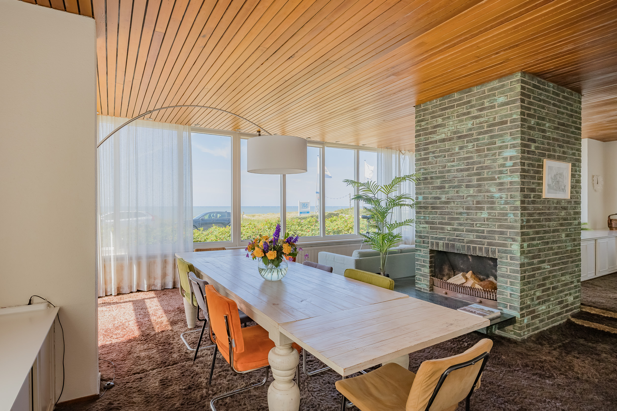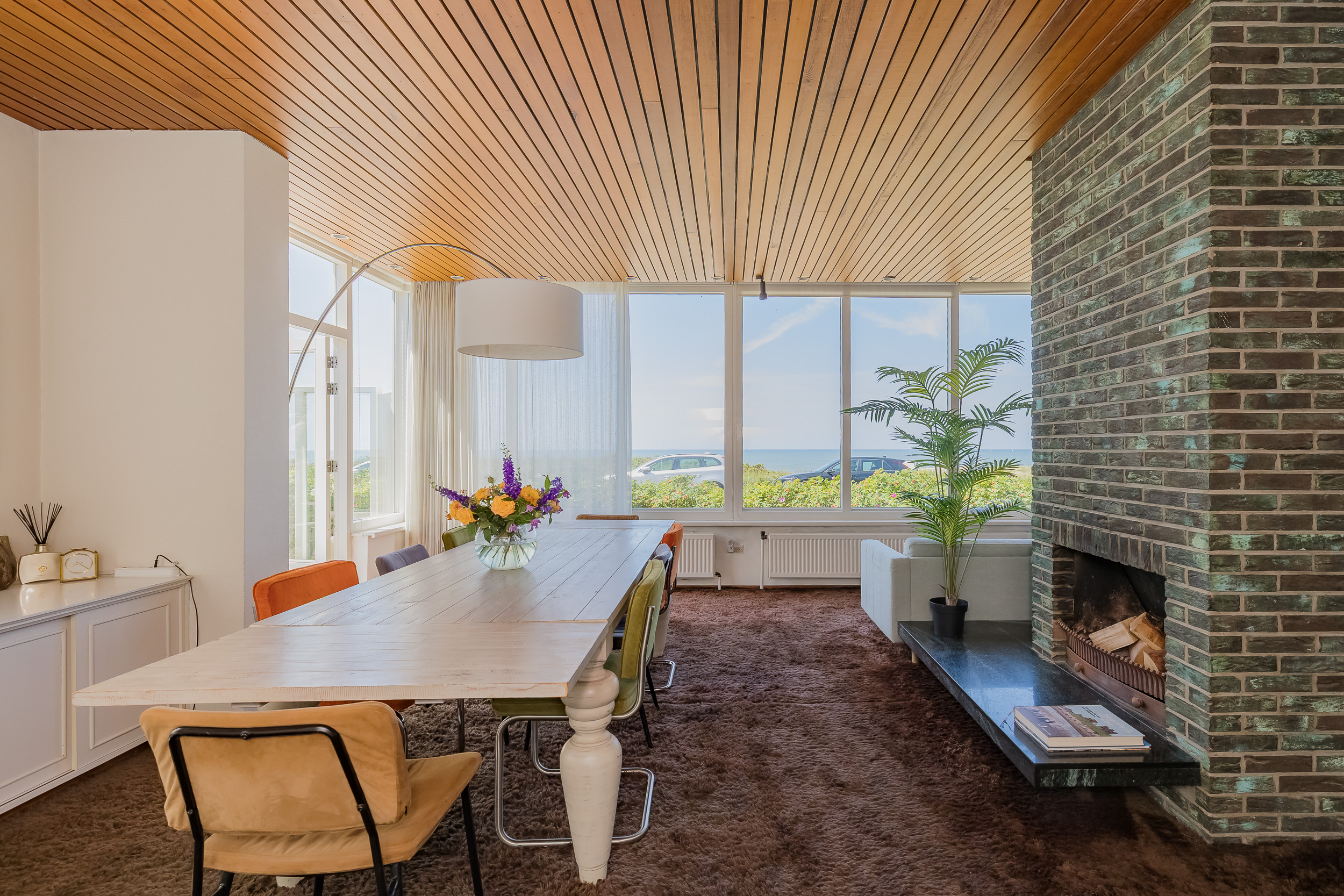 Door de grote raampartij in de living geniet je hier elke dag van het fenomenale uitzicht en geeft de open haard extra warmte en sfeer op koudere dagen.