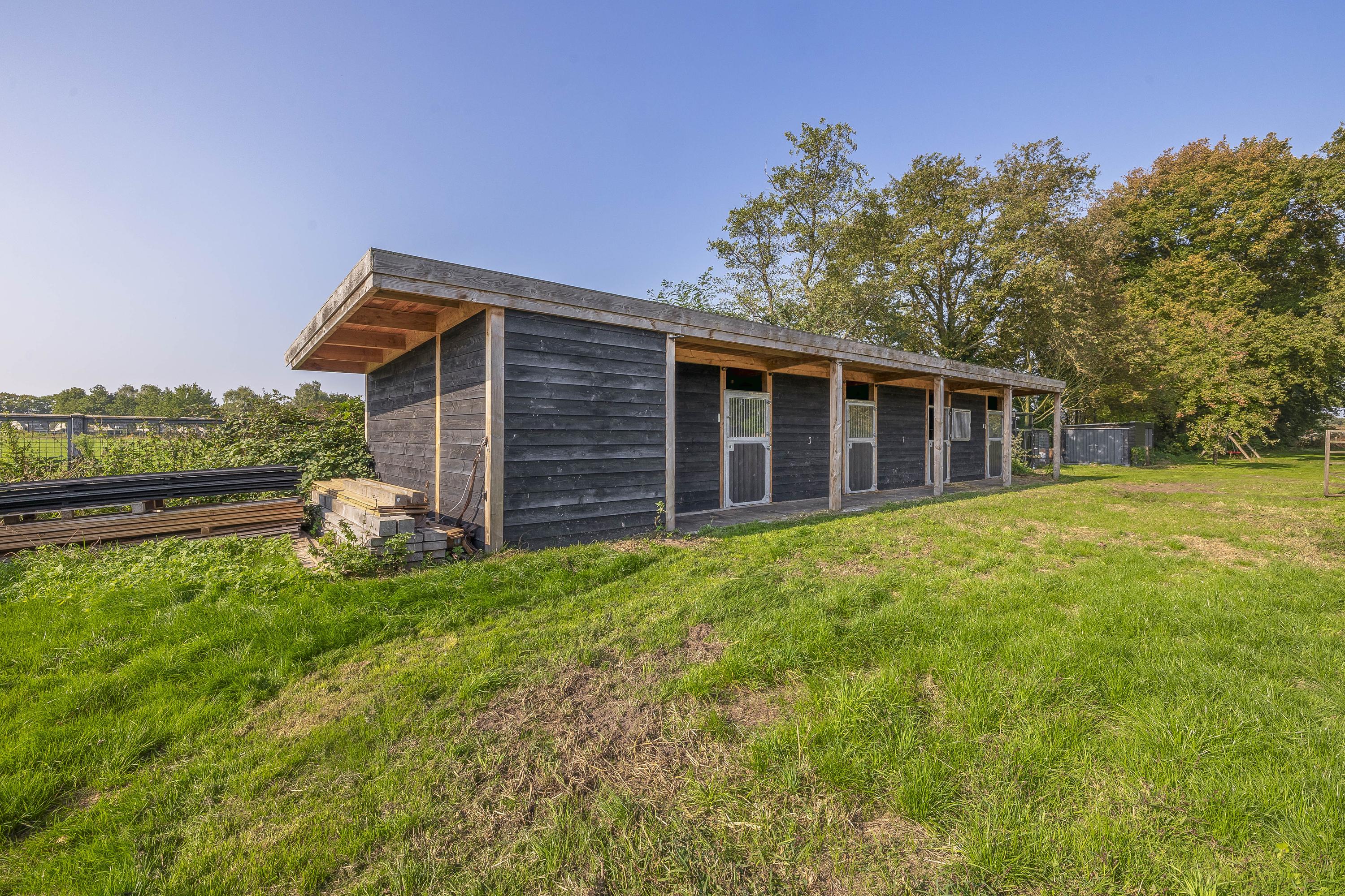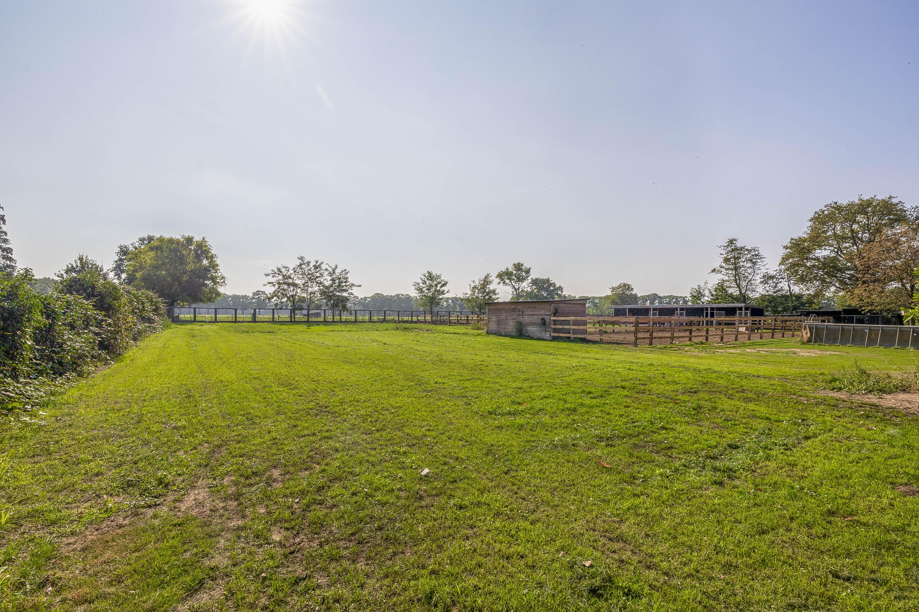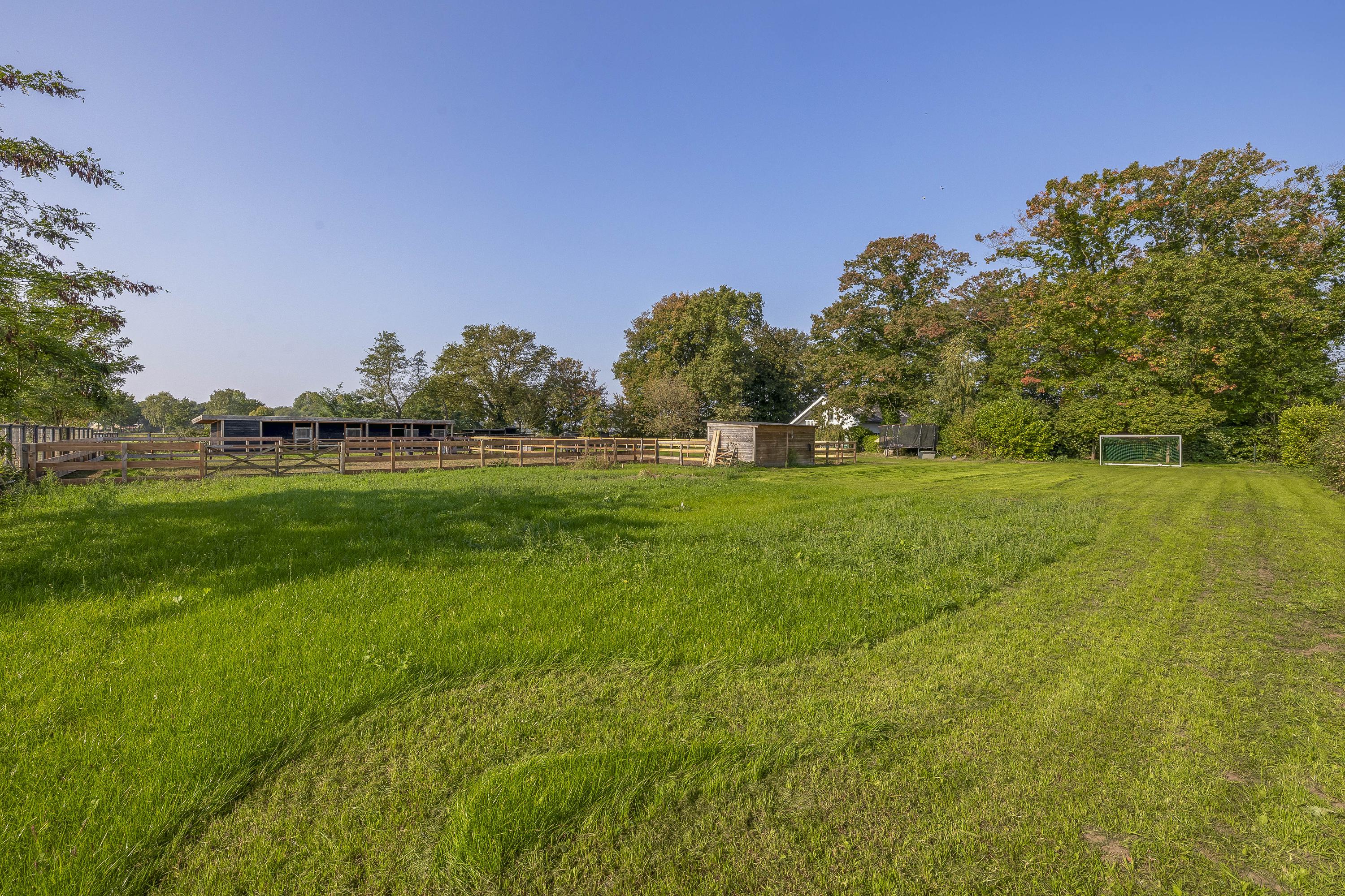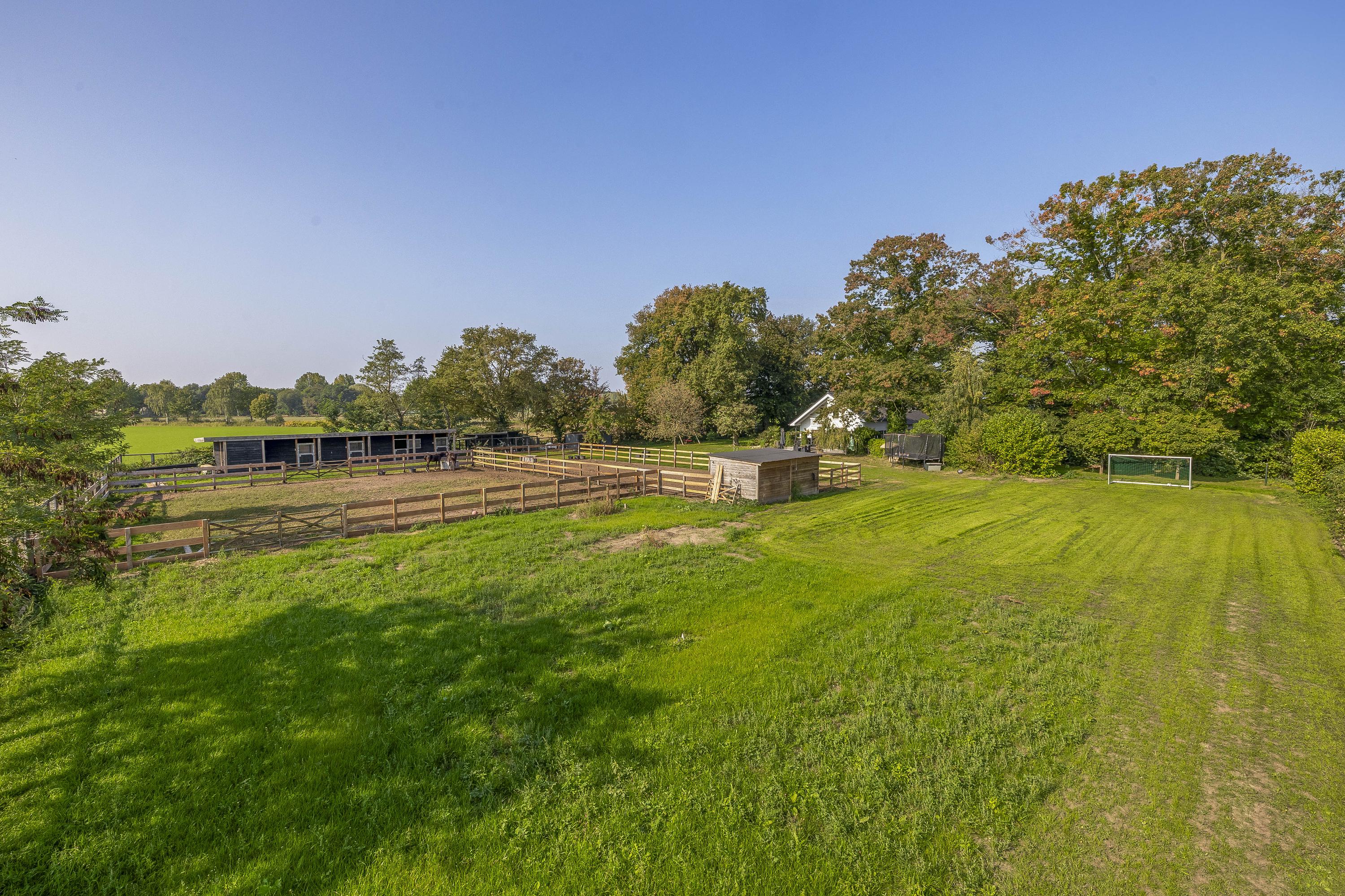 De prachtige tuin omringt de woning en heeft diverse bijgebouwen. Het betreft een parkachtige tuin met veel privacy, een groot gazon, weiland, volwassen beplanting en meerdere terrassen. Daarnaast is er een stal aanwezig voor het hobbymatig houden van vier paarden. Er zijn ook paddocks, waarvan één met een schuilstal. Tevens zijn er twee afsluitbare schuren aanwezig.