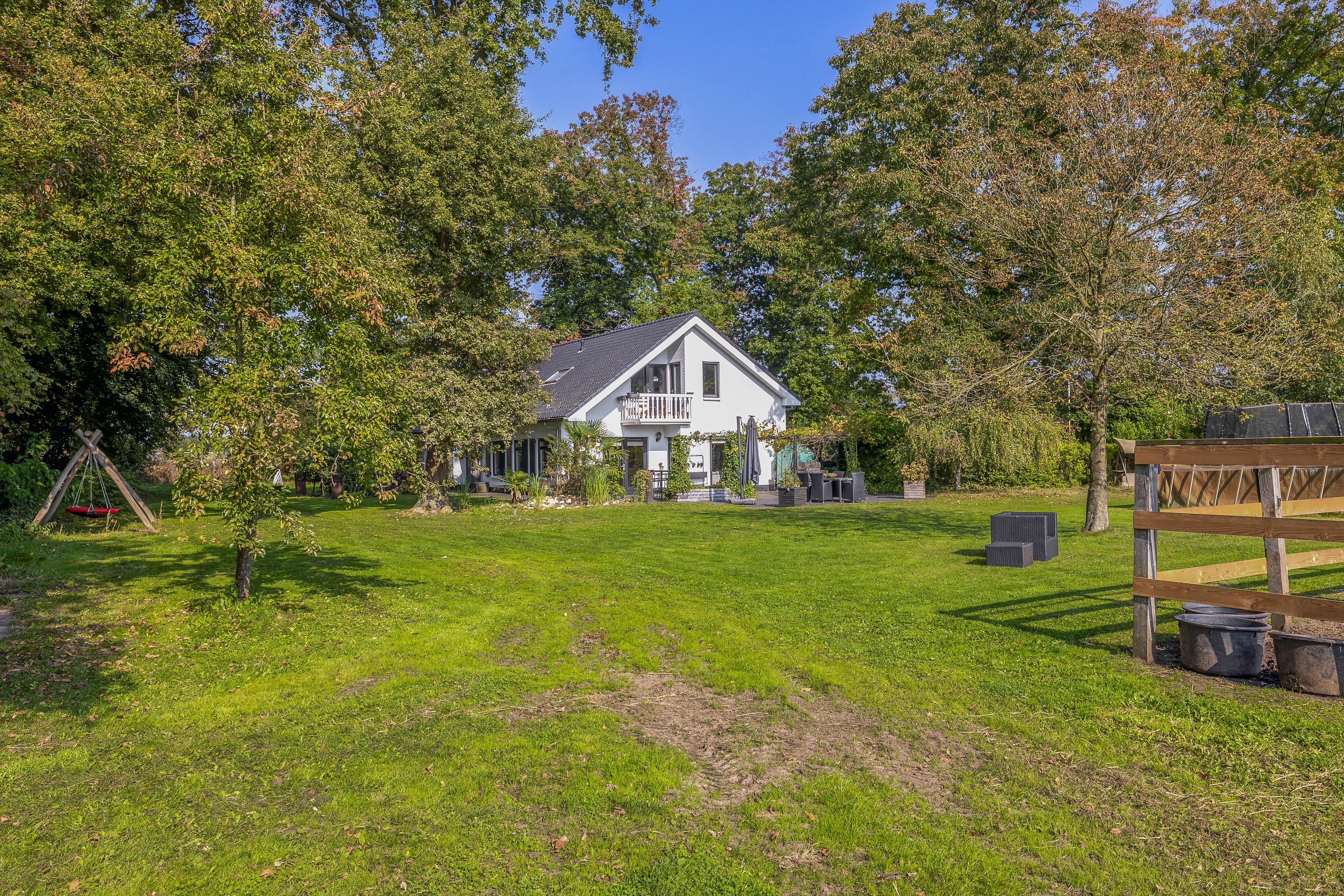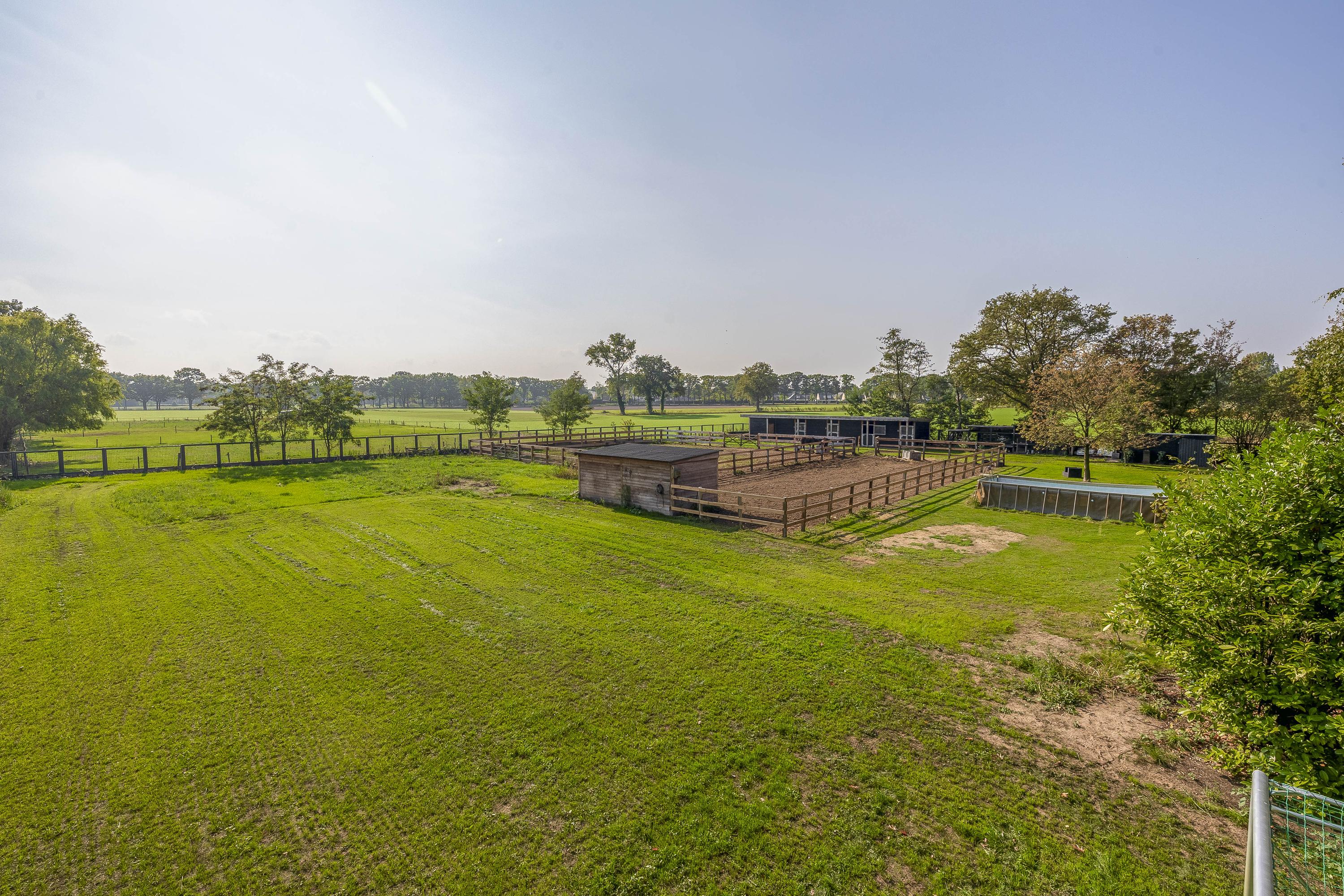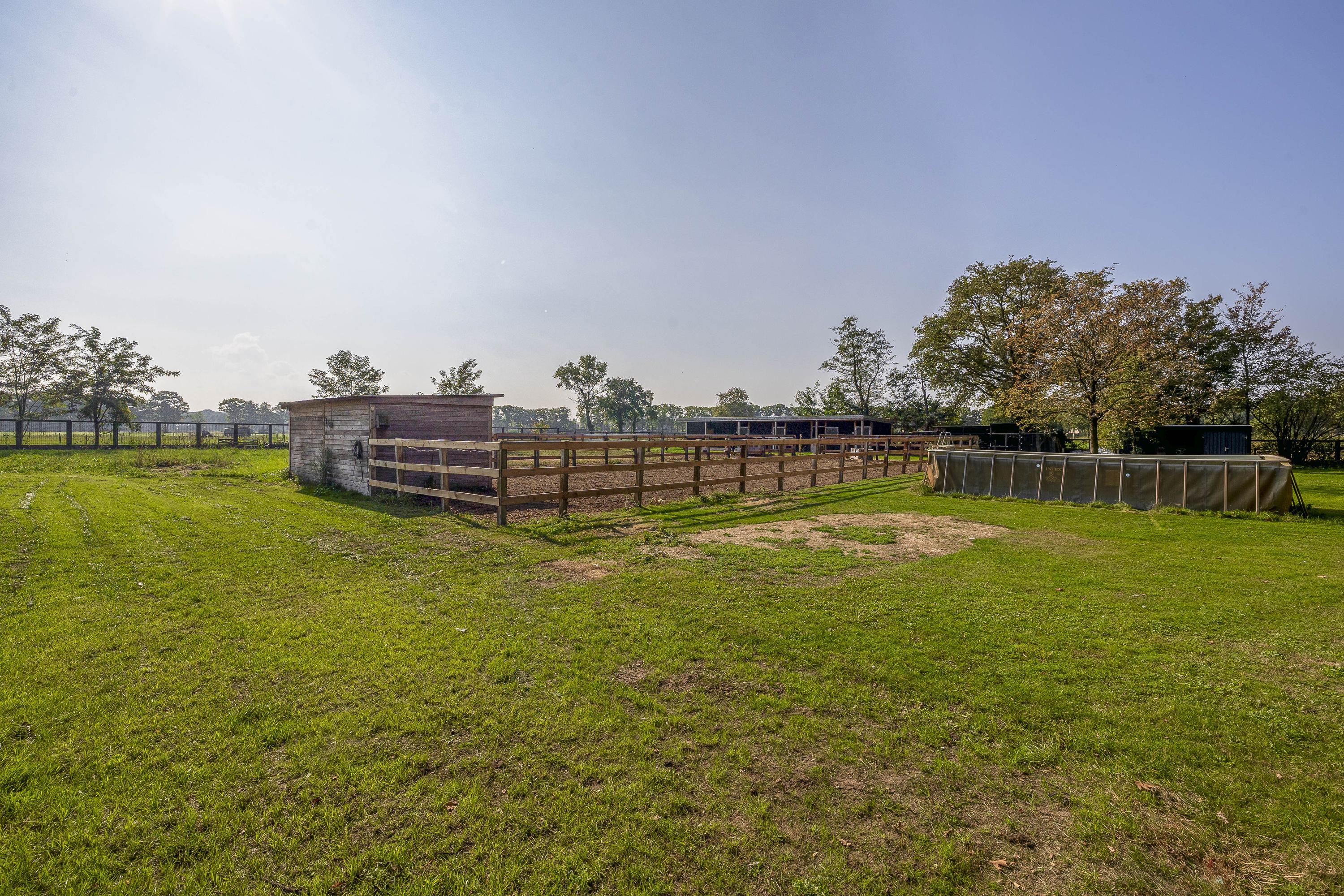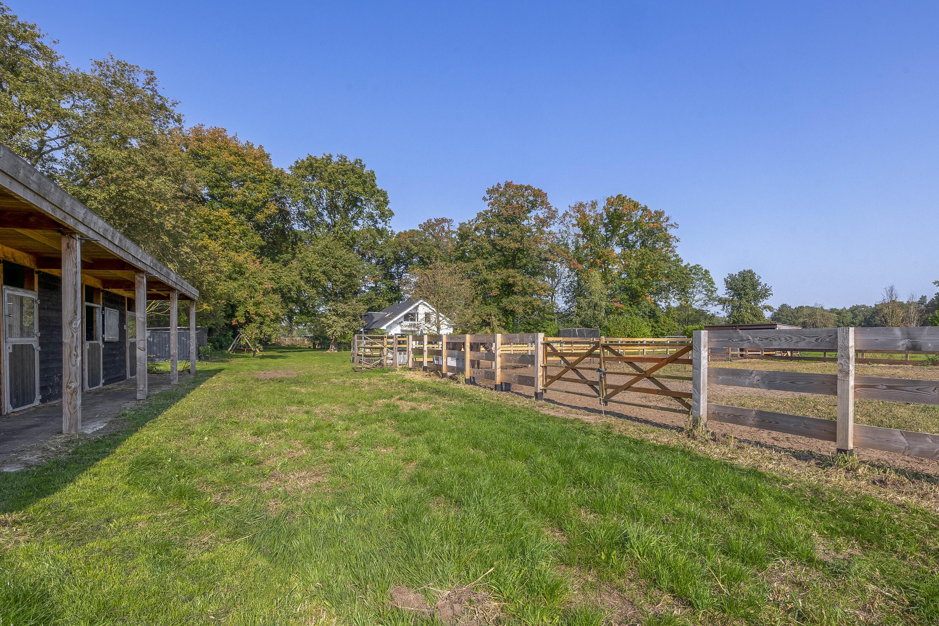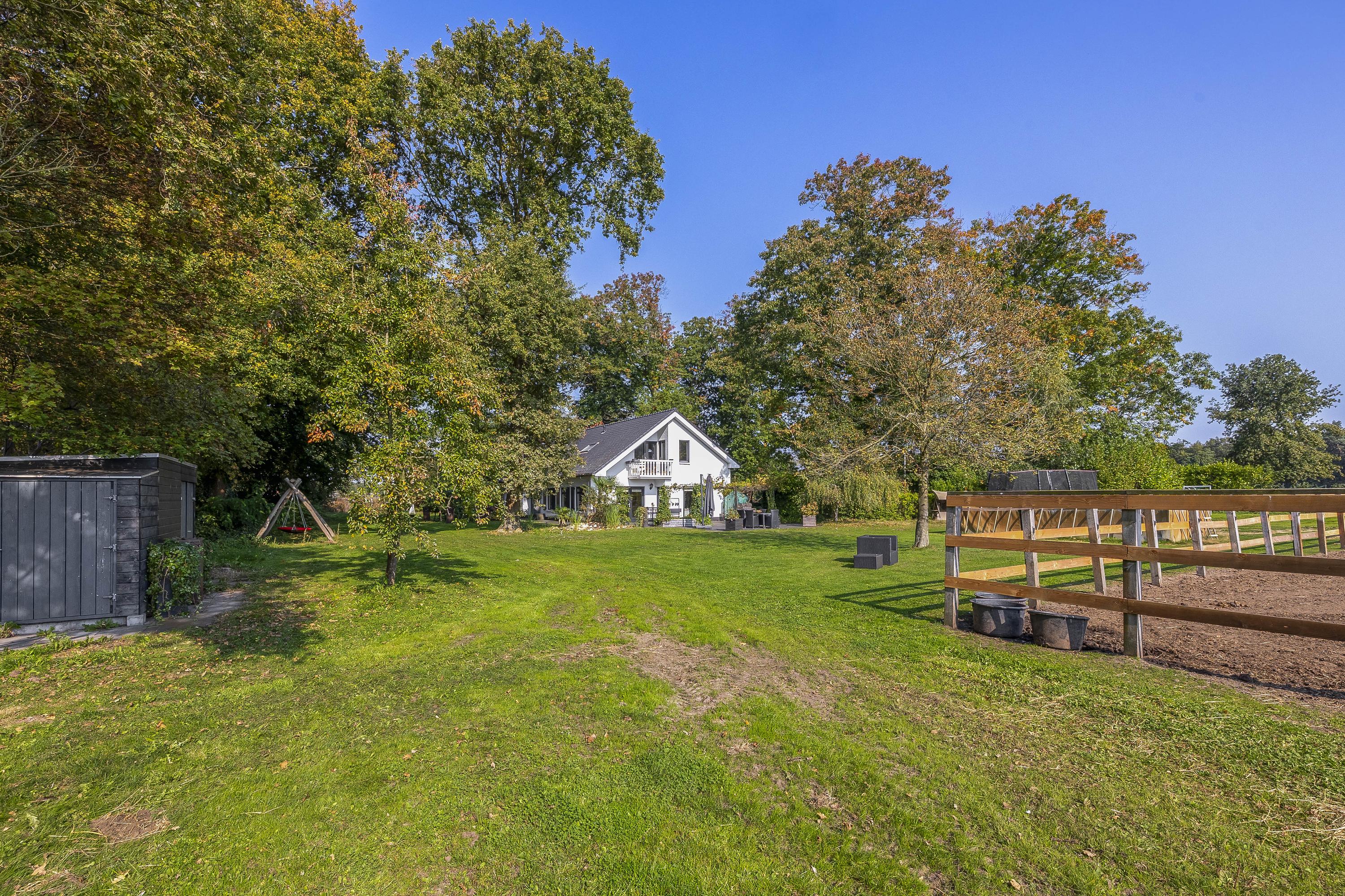 De prachtige tuin omringt de woning en heeft diverse bijgebouwen. Het betreft een parkachtige tuin met veel privacy, een groot gazon, weiland, volwassen beplanting en meerdere terrassen. Daarnaast is er een stal aanwezig voor het hobbymatig houden van vier paarden. Er zijn ook paddocks, waarvan één met een schuilstal. Tevens zijn er twee afsluitbare schuren aanwezig.