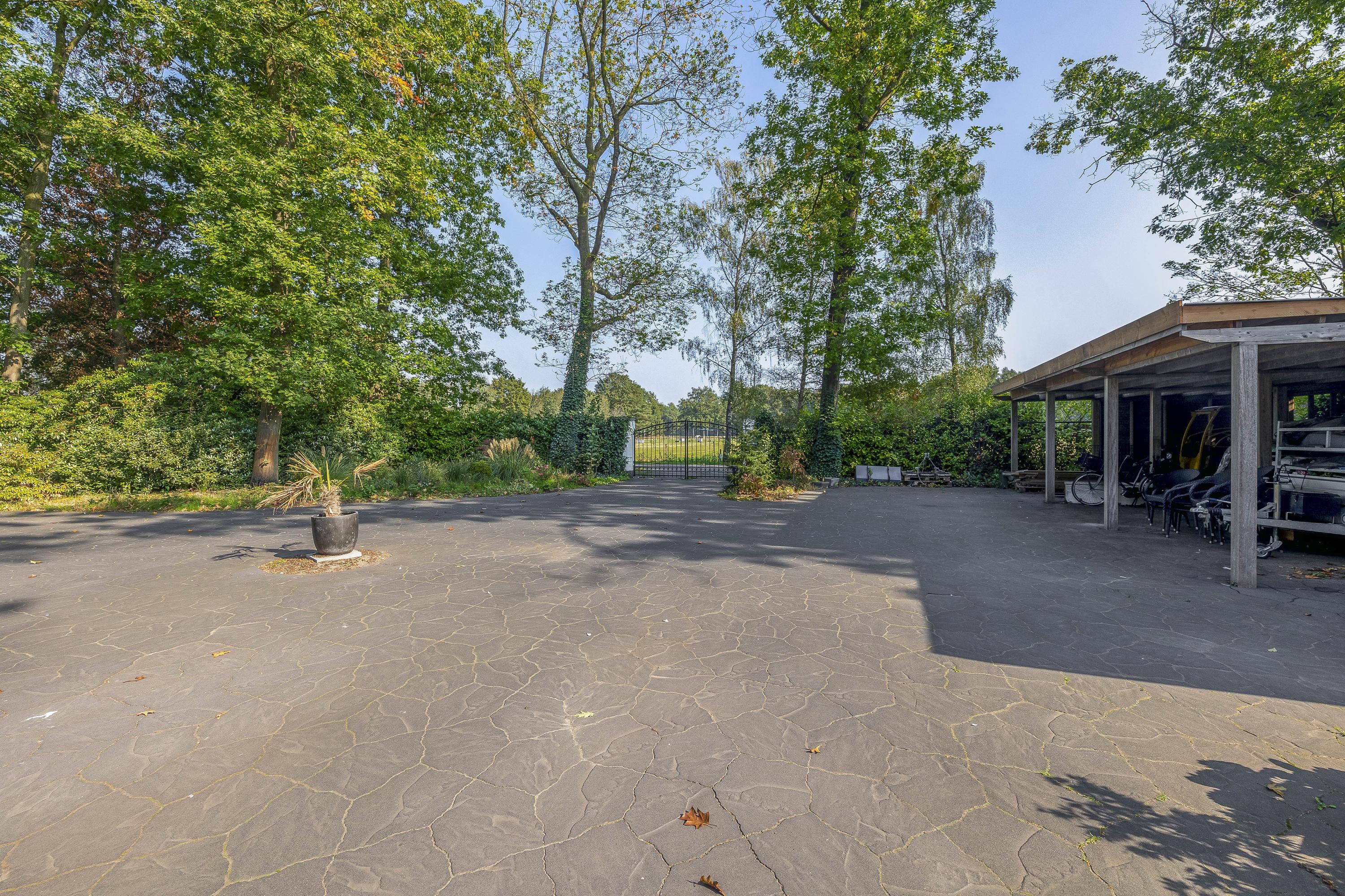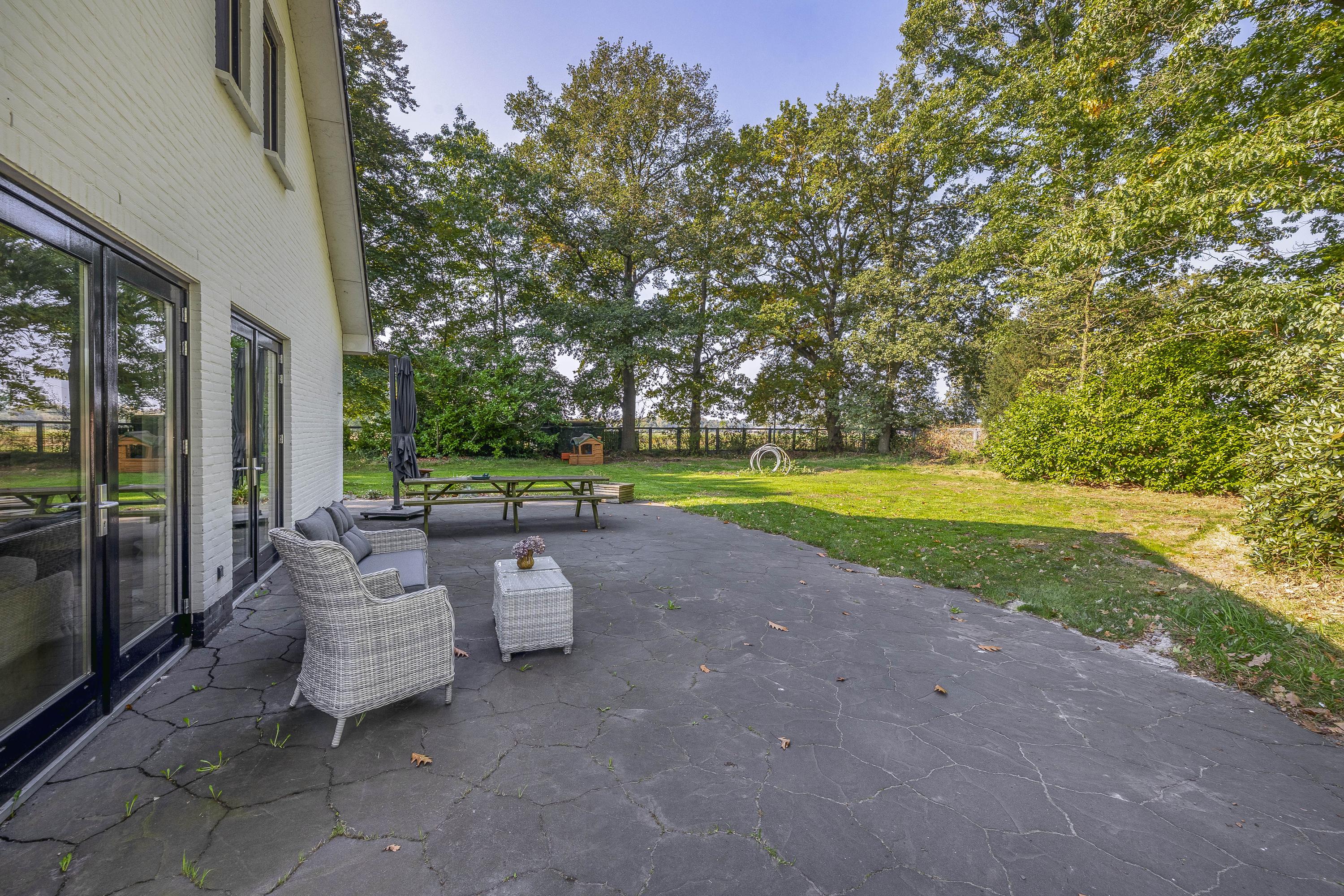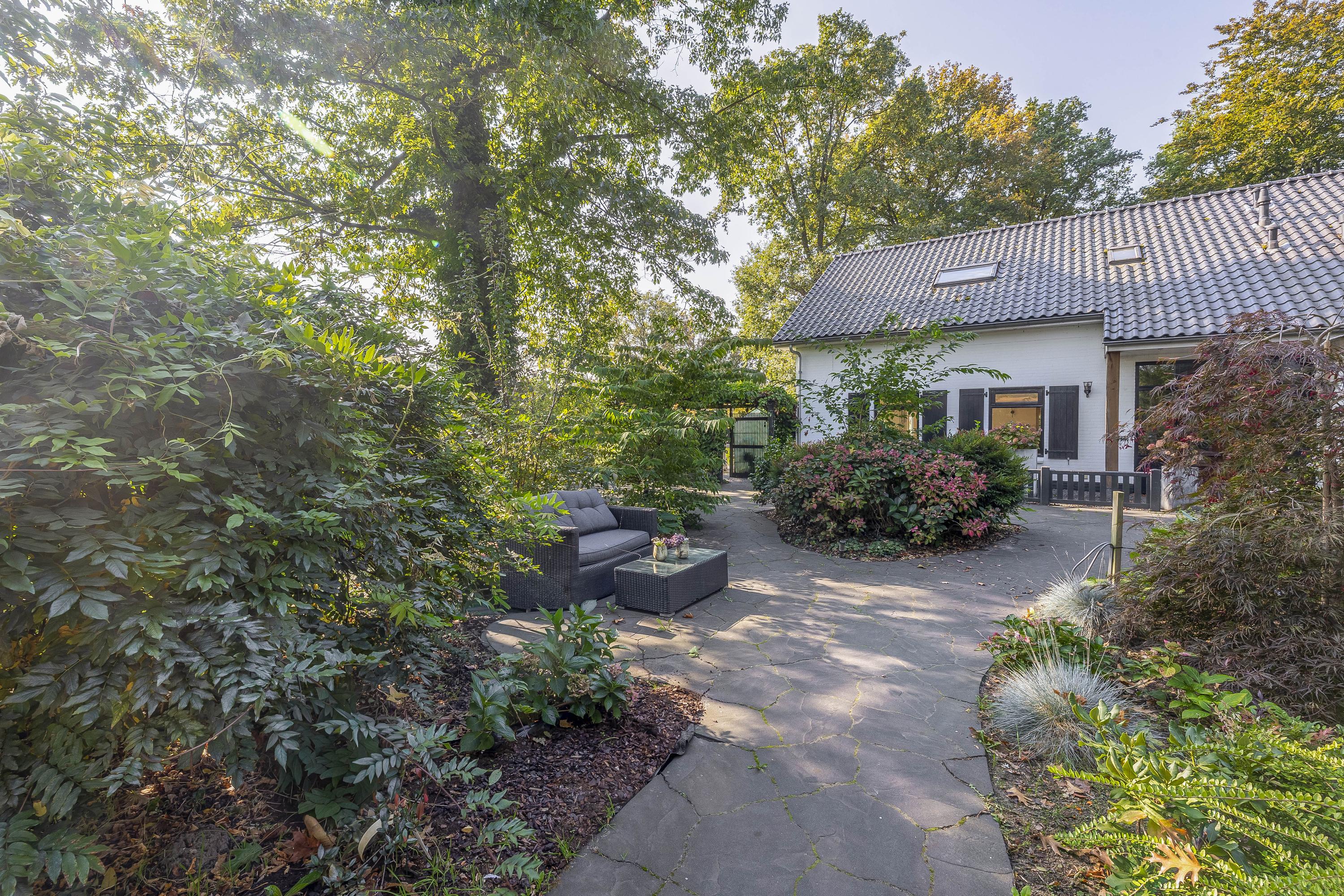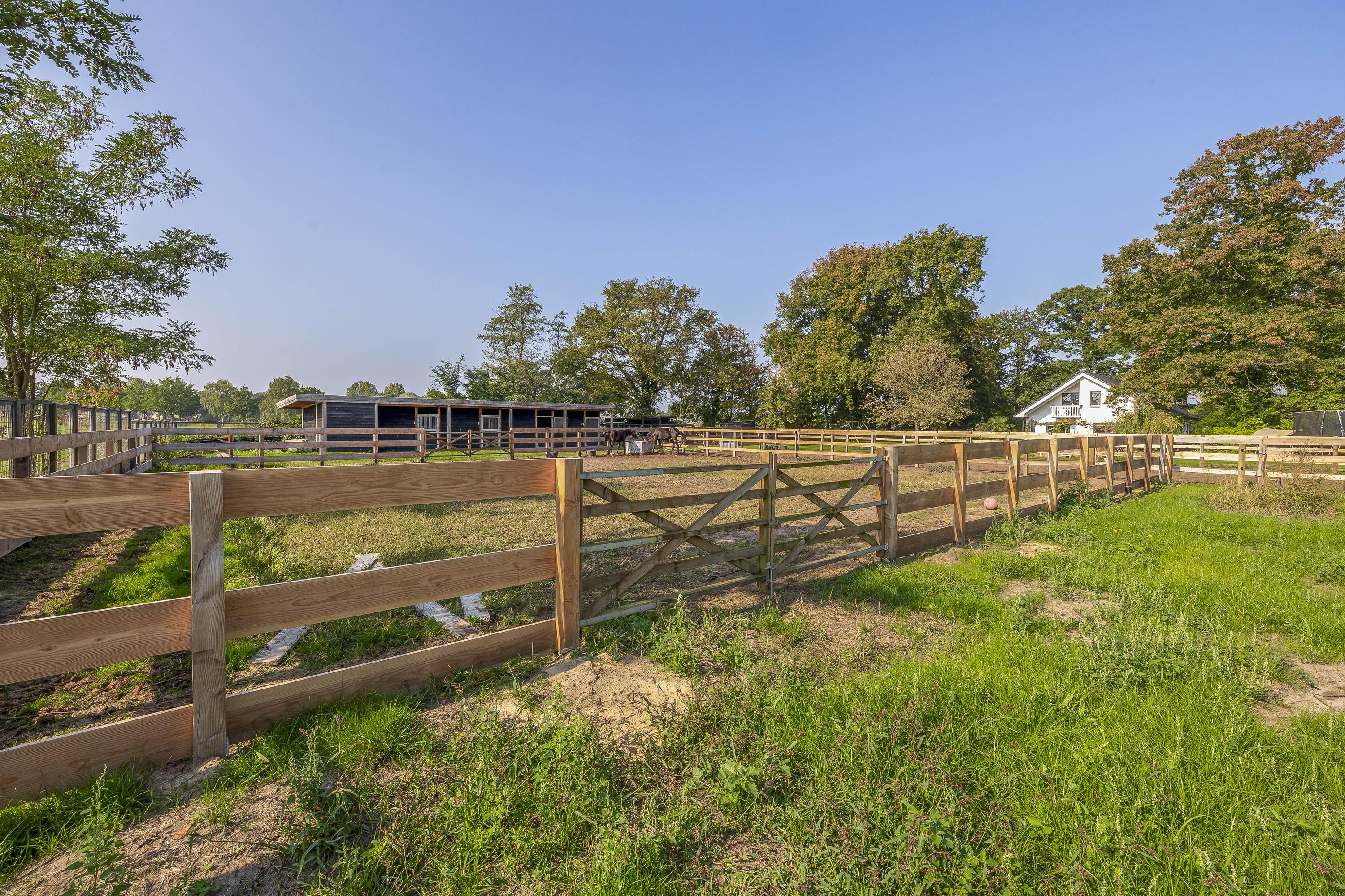 De prachtige tuin omringt de woning en heeft diverse bijgebouwen. Het betreft een parkachtige tuin met veel privacy, een groot gazon, weiland, volwassen beplanting en meerdere terrassen. Daarnaast is er een stal aanwezig voor het hobbymatig houden van vier paarden. Er zijn ook paddocks, waarvan één met een schuilstal. Tevens zijn er twee afsluitbare schuren aanwezig.