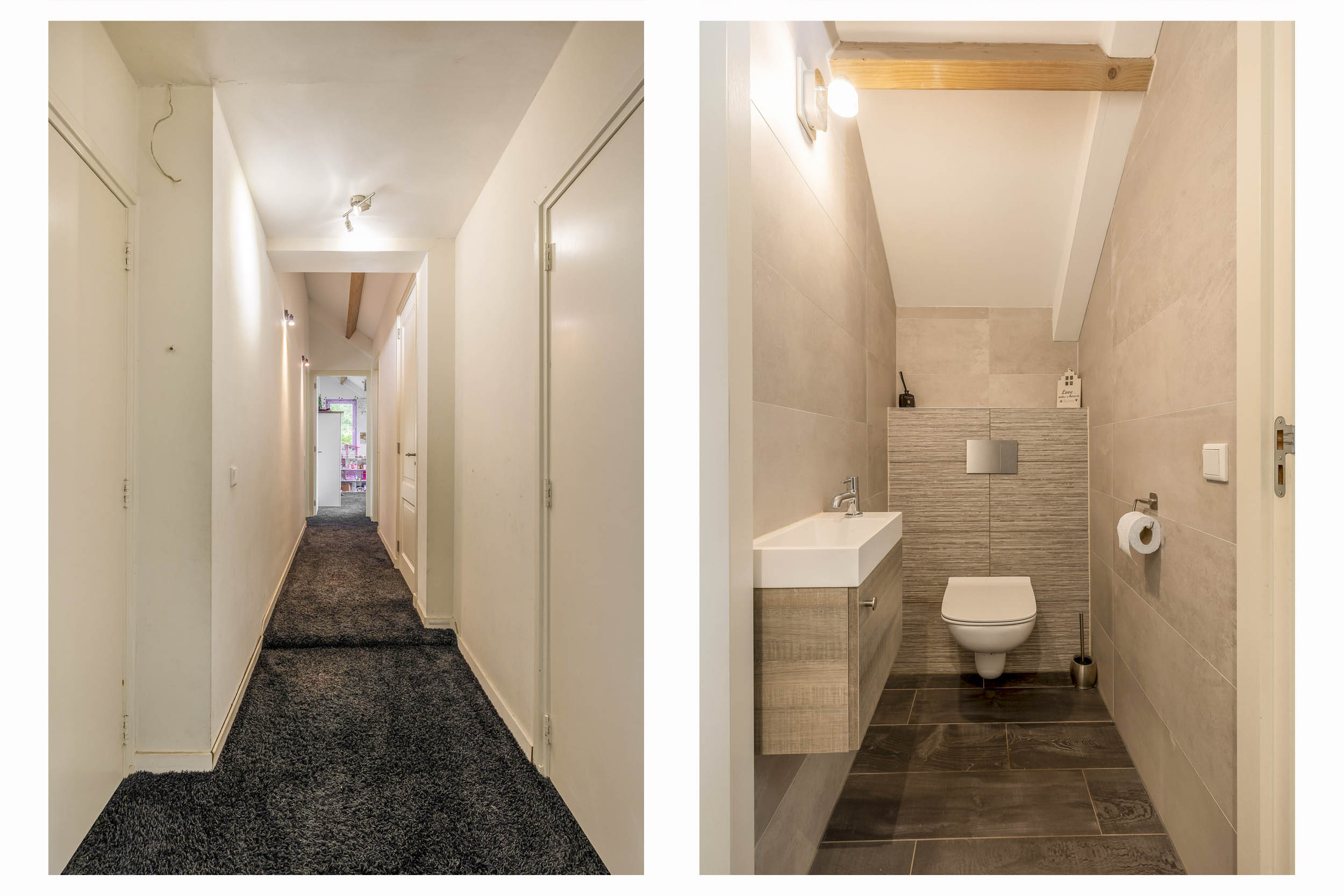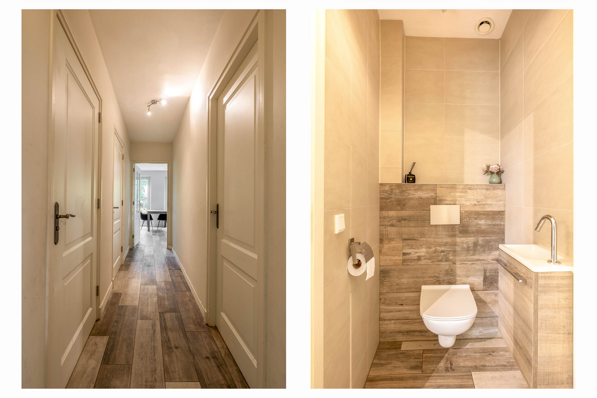 De luxe, deels betegelde toiletruimte is voorzien van een hangend closet en fonteintje, voor ventilatie is er een mechanisch afzuigingssysteem.