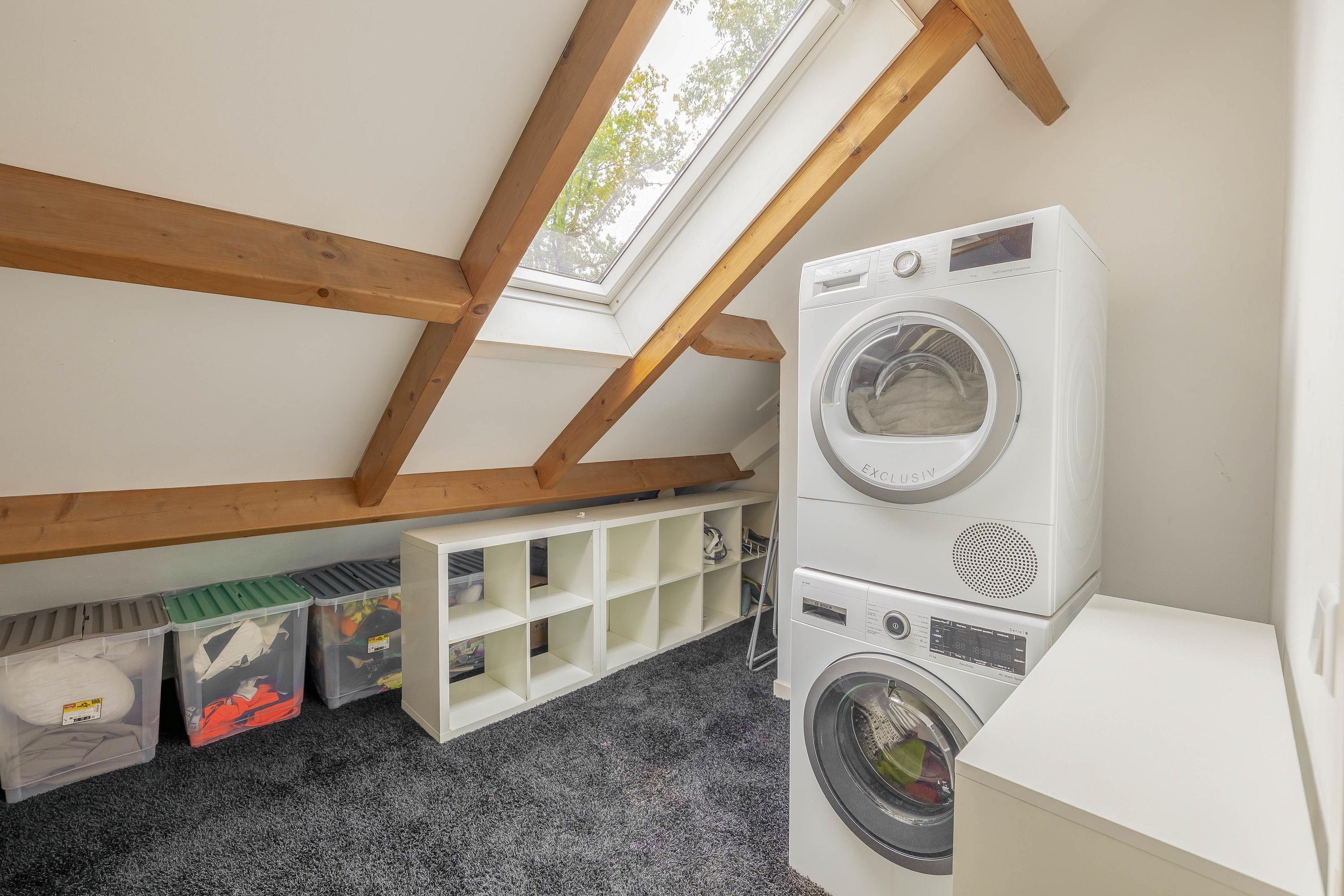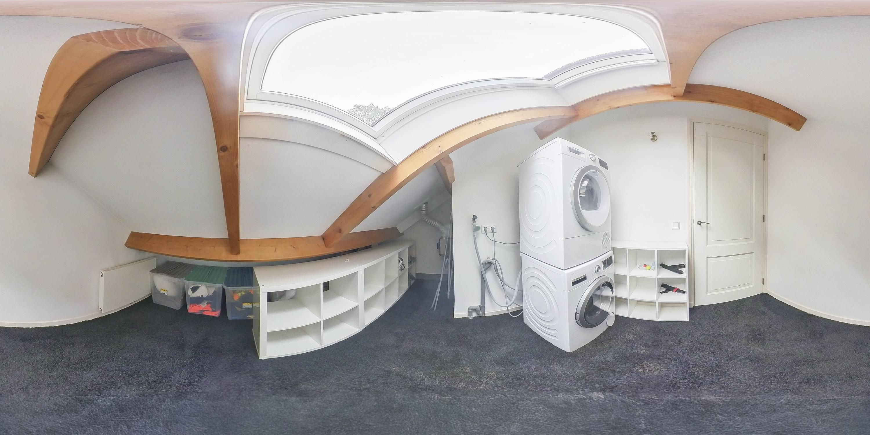 De wasruimte is voorzien van vloerbedekking, stucwerk wanden en een stucwerk plafond. Er bevindt zich een ‘Velux’ dakraam en hier bevindt zich de aansluiting voor de wasappratuur.
