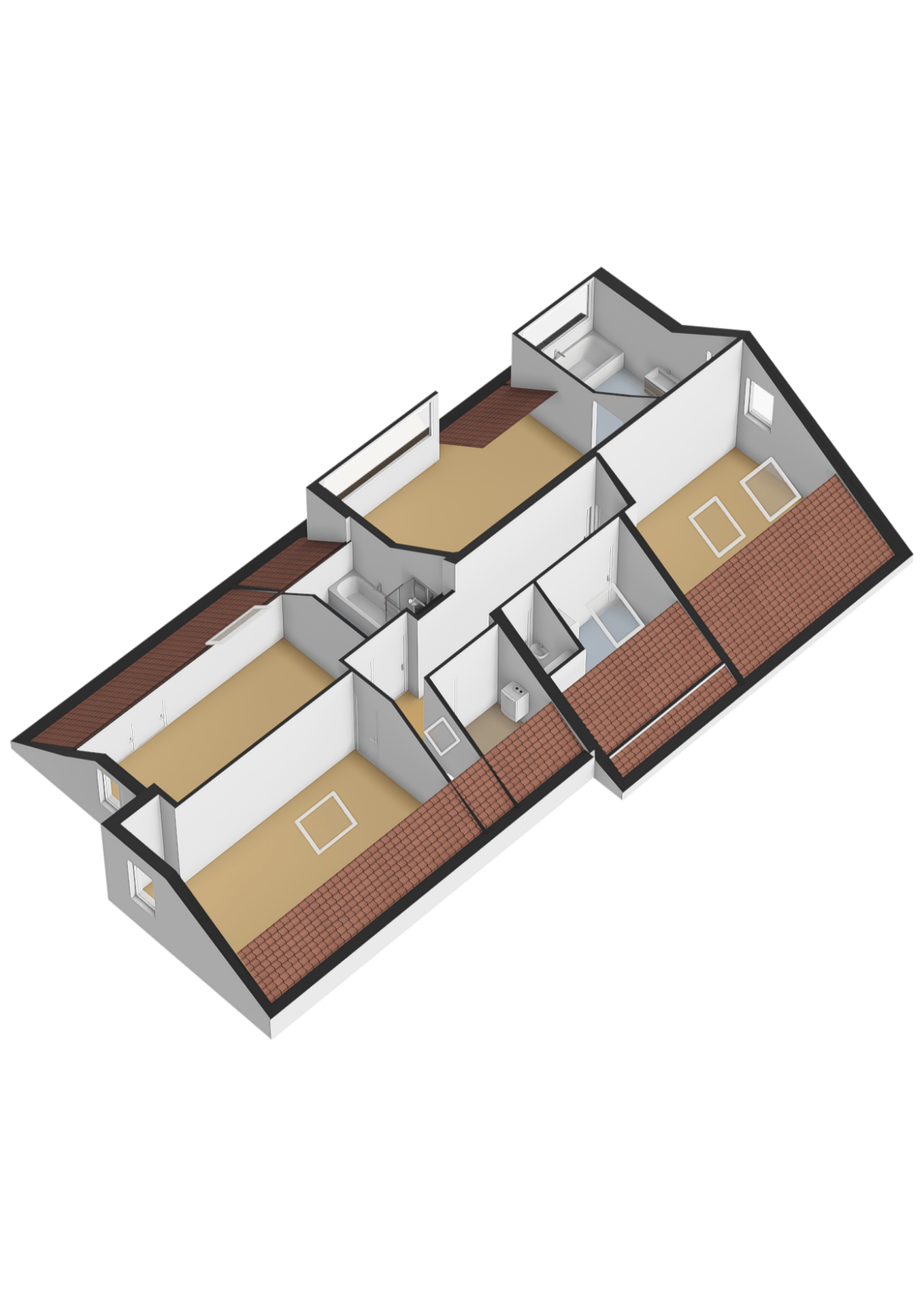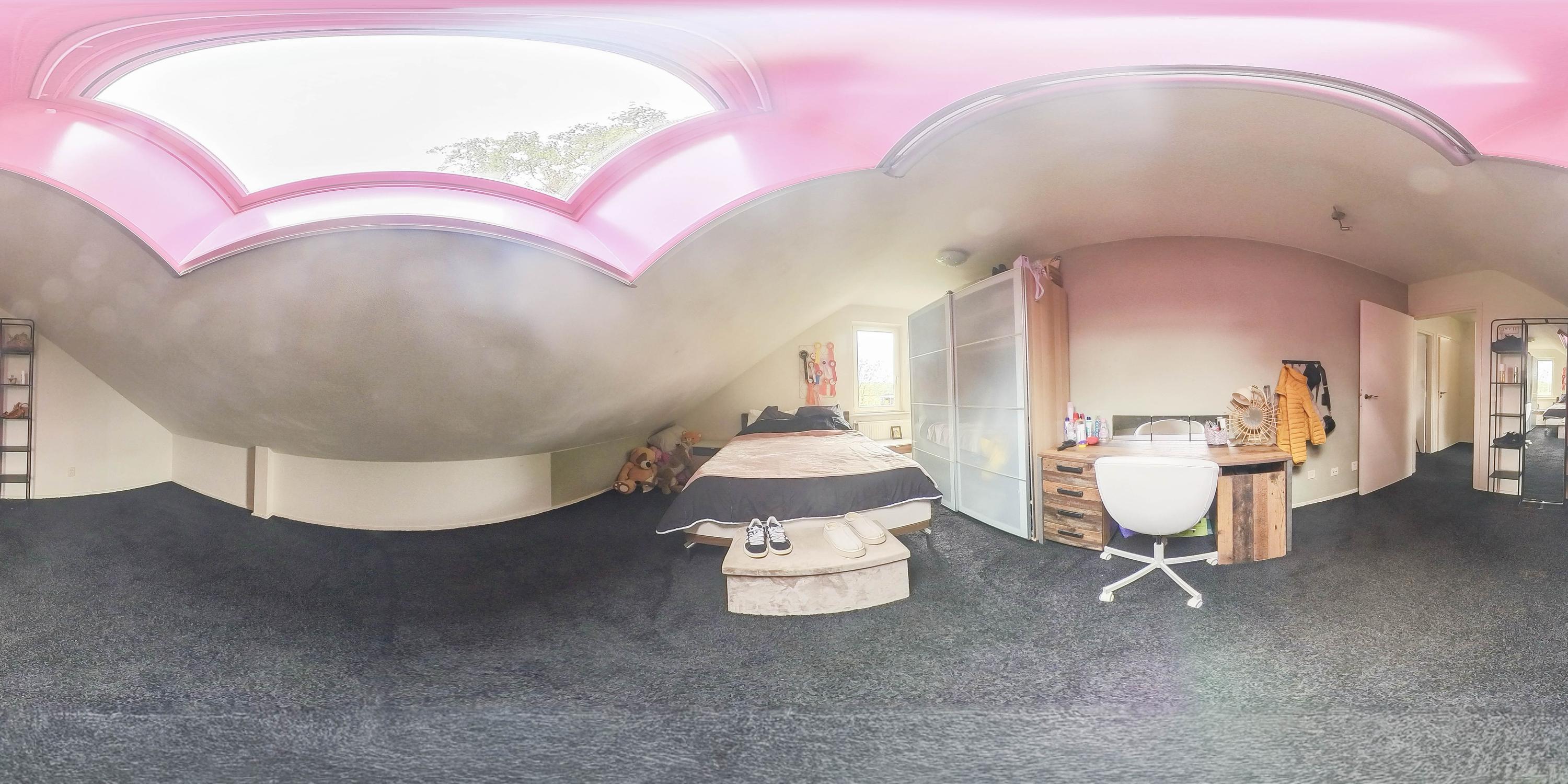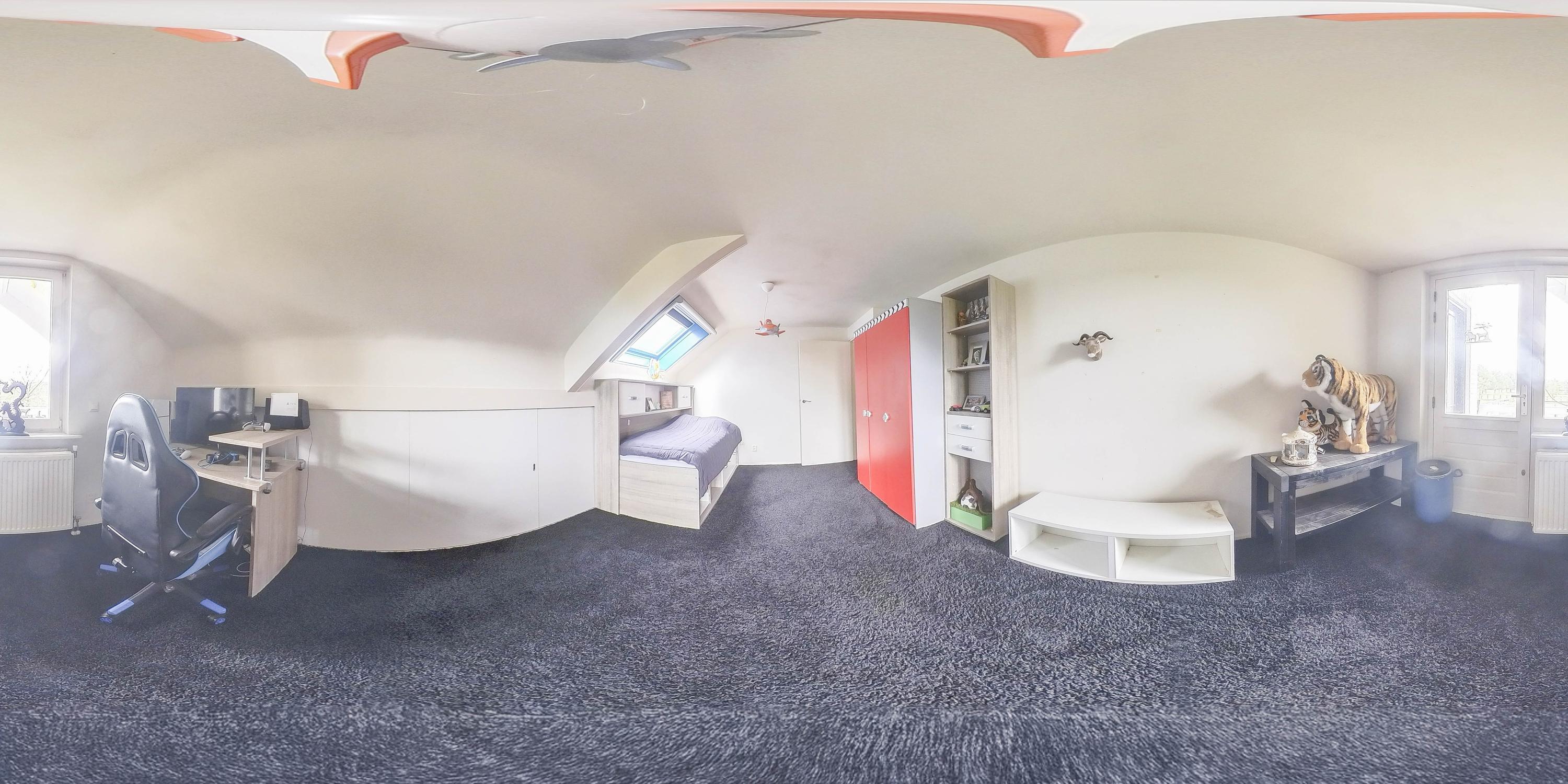 De vierde slaapkamer is gelegen aan de voorzijde van de woning en beschikt over maar liefst drie raampartijen waarvan twee ‘Velux’ dakramen zodat er altijd voldoende daglicht is.