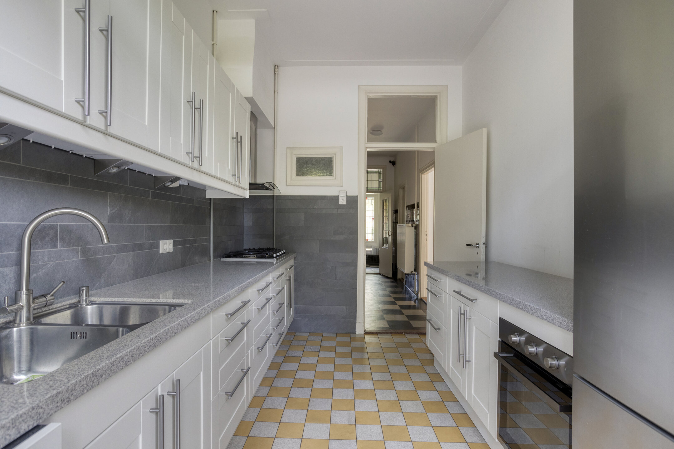 Veel authentieke details zijn bewaard gebleven en geven het huis zijn karakteristieke sfeer: hoge plafonds, glas-in-loodramen, houten vloeren en klassieke lambriseringen. Aan de voorzijde ligt een ruime voortuin, terwijl de diepe, zonnige achtertuin volop privacy en mogelijkheden biedt – ideaal voor een groot gezin en heerlijk buitenleven.