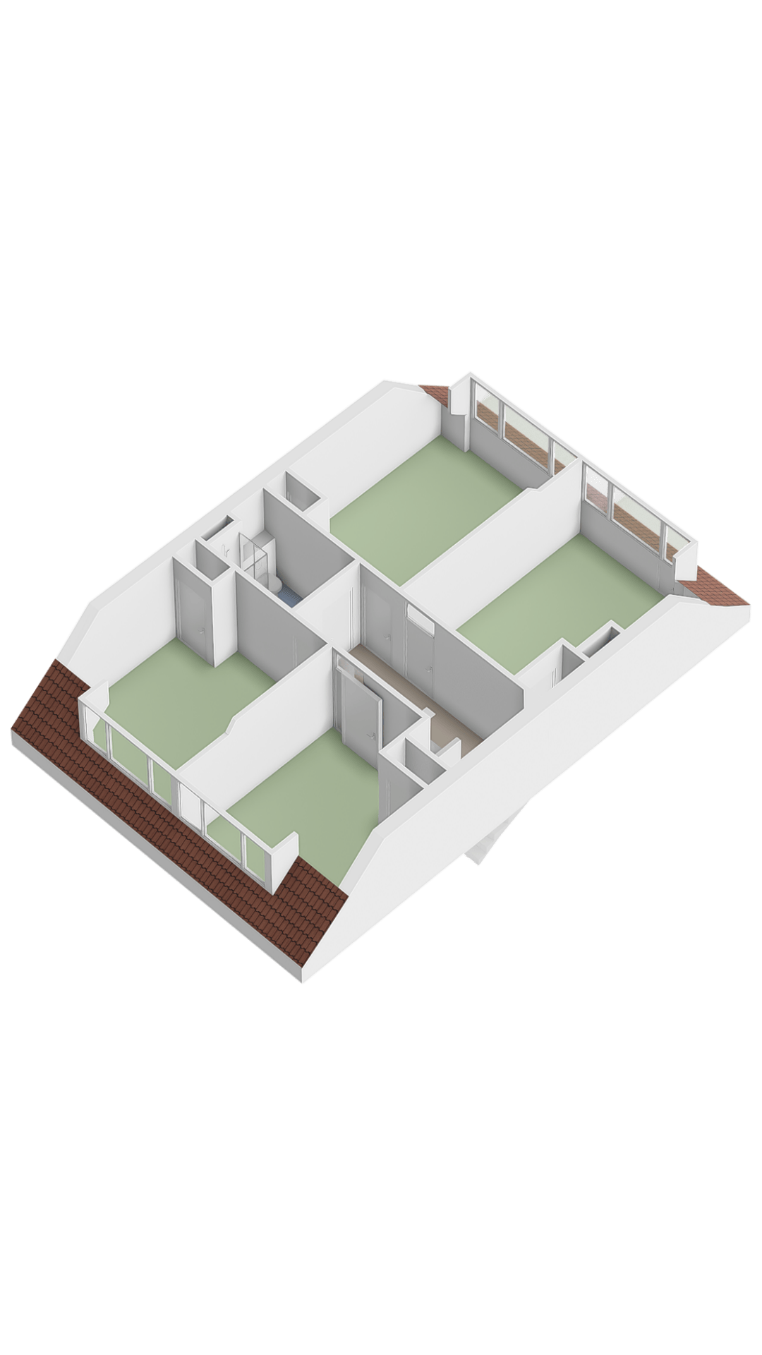 Overloop met toegang tot vier ruime slaapkamers, voorzien van dakkapellen. Tweede badkamer met douche, toilet en dubbele wastafel. Extra bergruimte achter de schuine wanden.