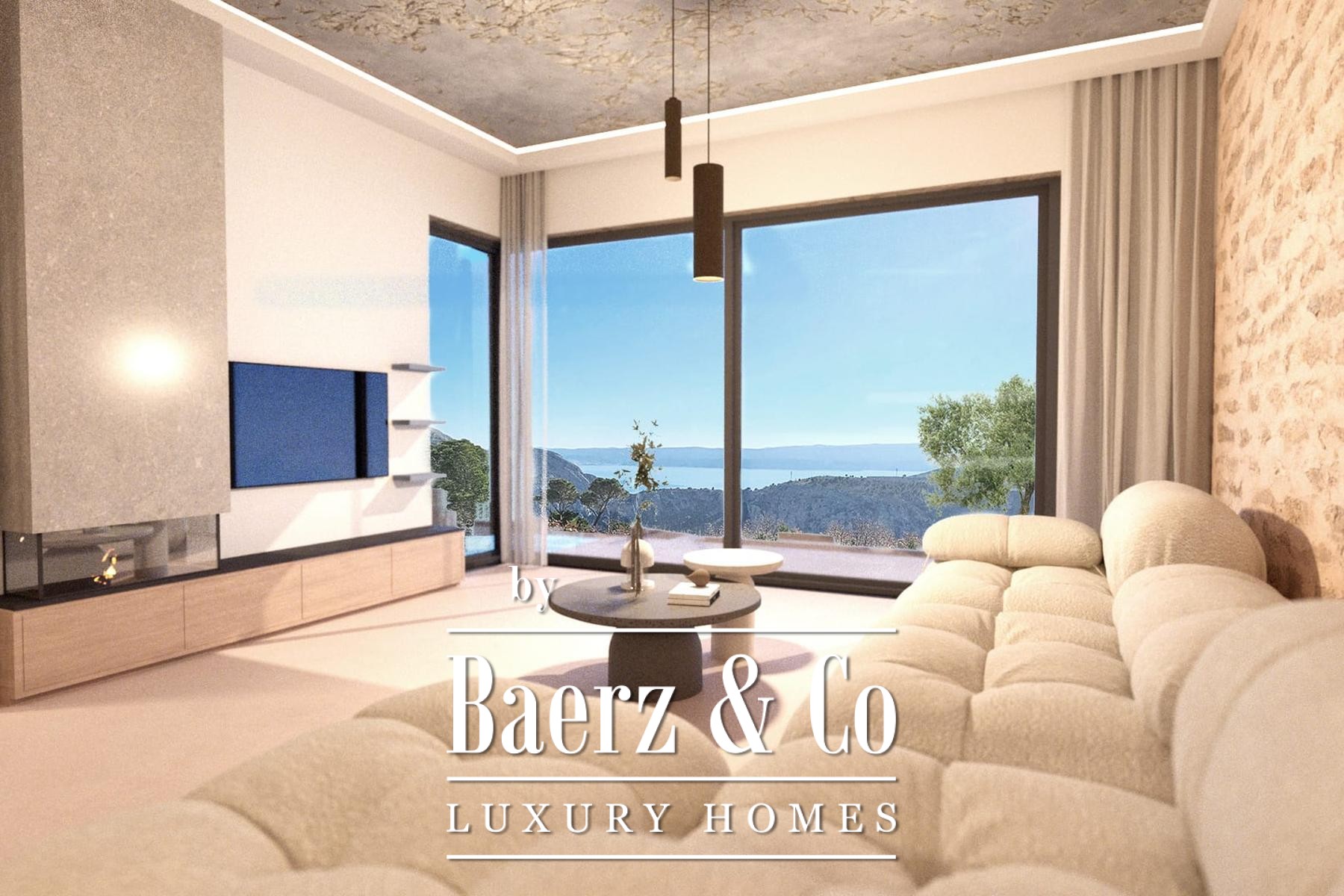 Moderne villa Omiš is elegant gepositioneerd aan het einde van een besloten doodlopende straat, op een perceel van 775 m² dat panoramisch uitzicht biedt over de stad en het Brač-kanaal. De villa beslaat 195 m², harmonieus verdeeld over twee verdiepingen, met een ontwerp dat privacy en overvloed aan daglicht garandeert.