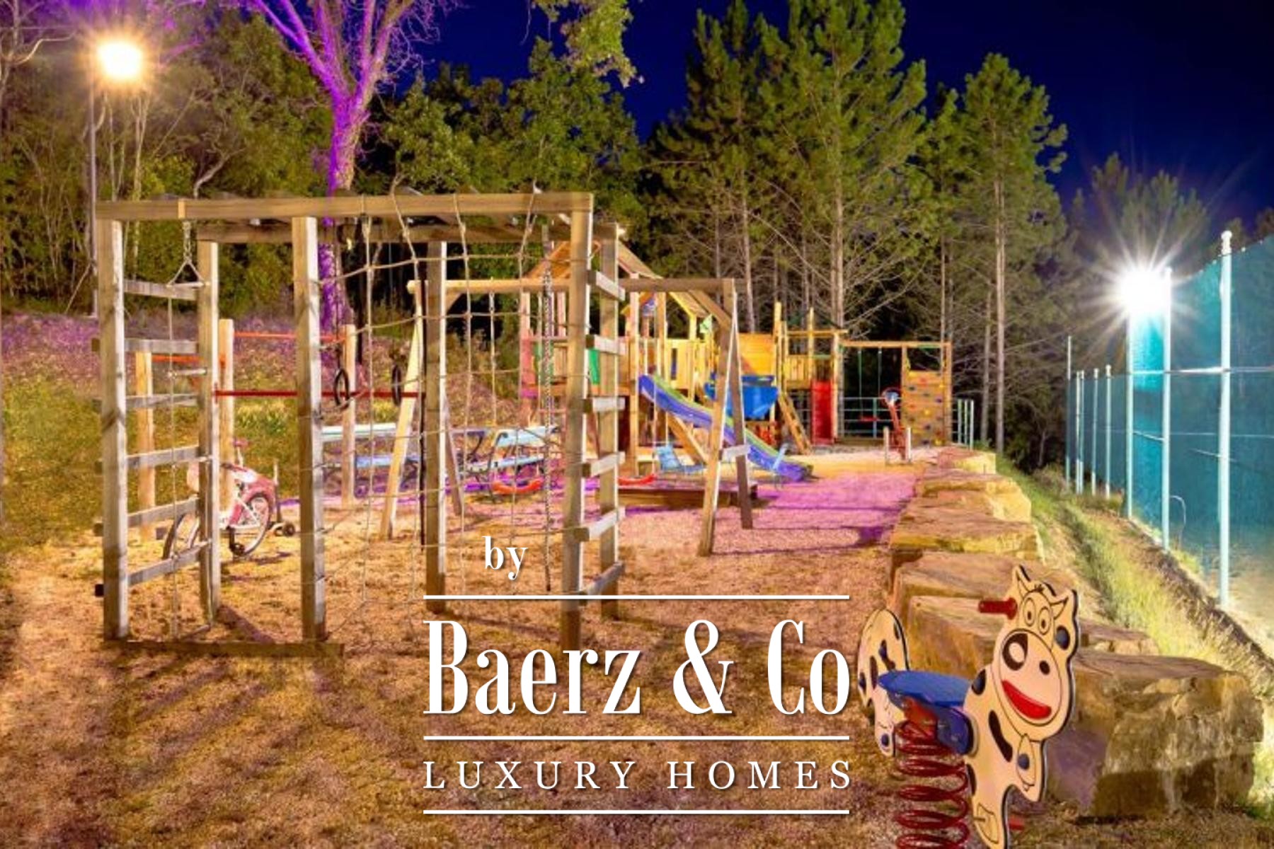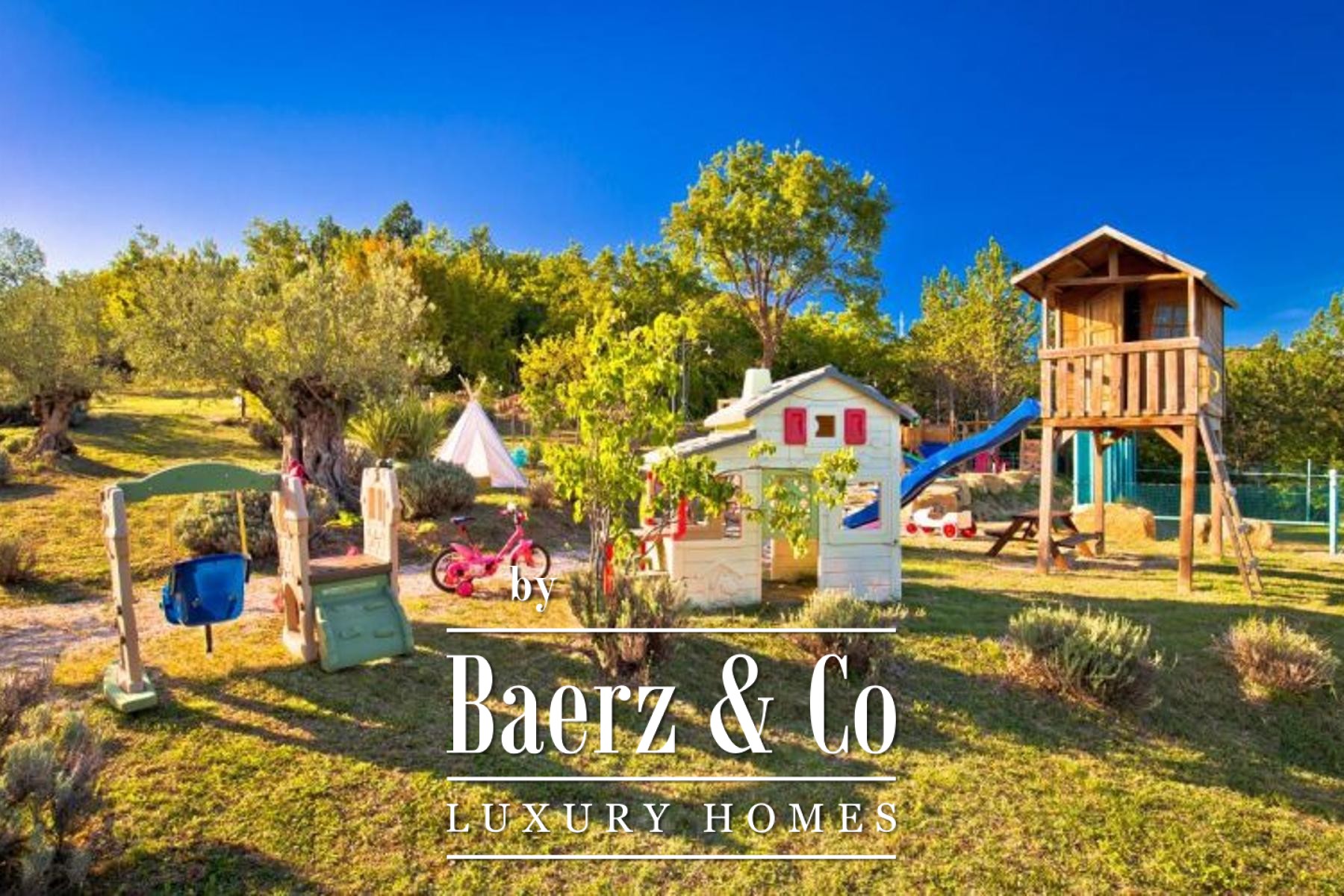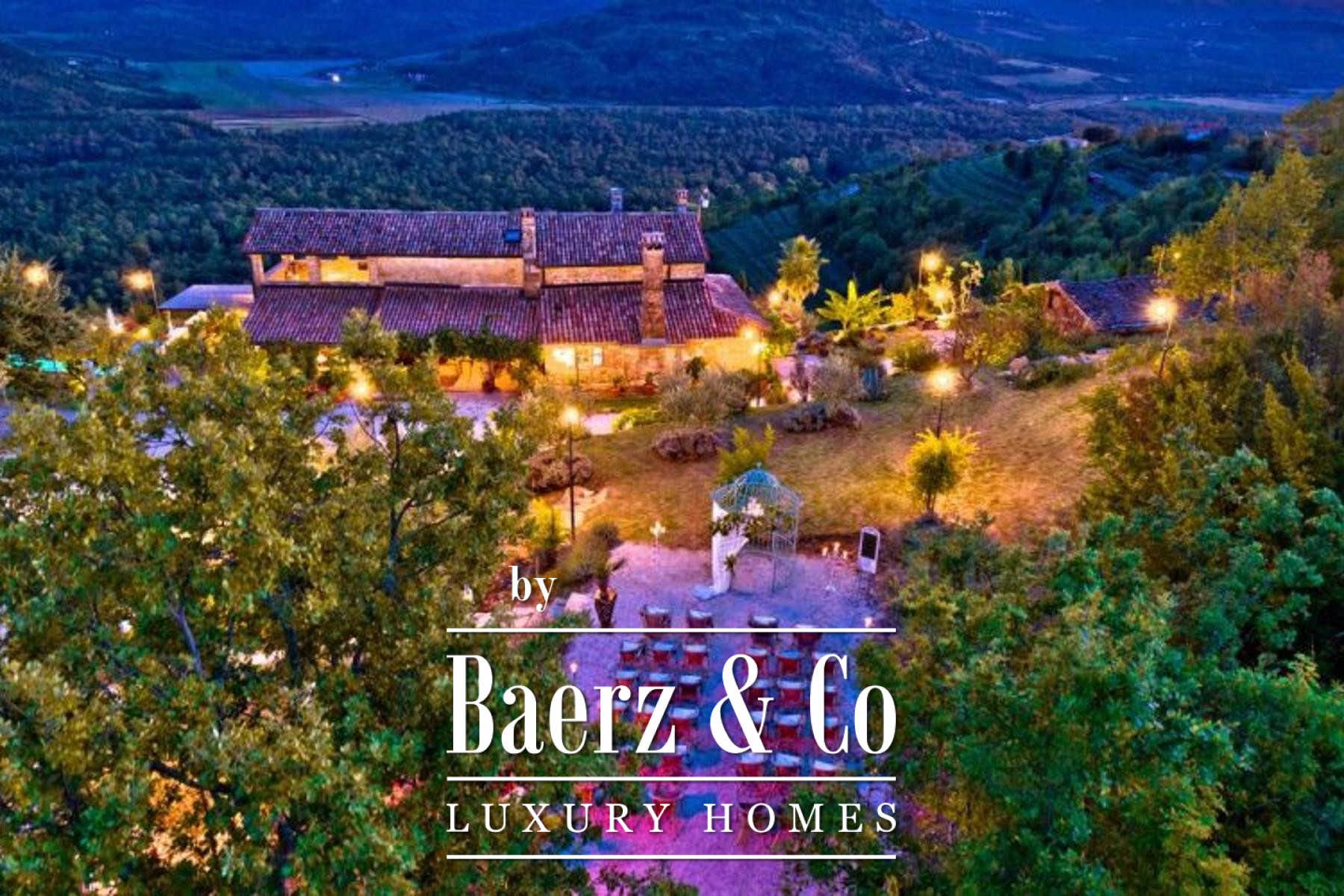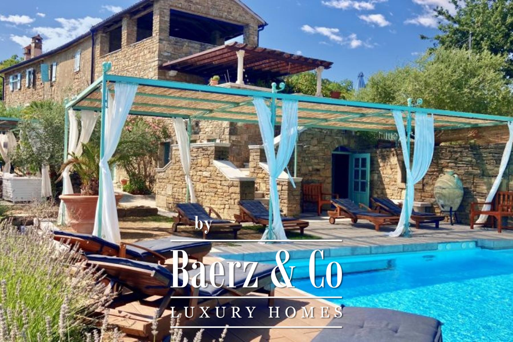 De twee brede terrassen richten het interieur op steeds wisselende panoramische vergezichten, terwijl zorgvuldig ontworpen buitenruimtes zoals een kinderspeelplaats flexibiliteit bieden voor gezinsleven. Het volledige eigendom van het omliggende land creëert ongeëvenaarde mogelijkheden voor toekomstige uitbreiding, zowel als privélandgoed of voor de ontwikkeling van een boutique hotel of gastvrijheidsconcept in authentieke Istrische stijl.