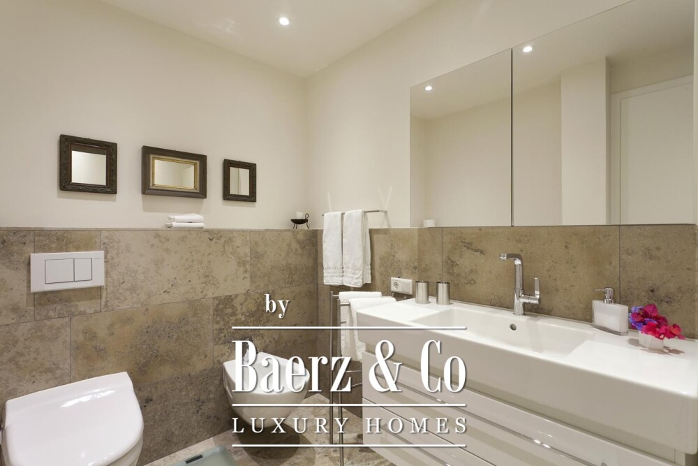De hoofdvilla, vormgegeven door een eigenaar met expertise in architectuur, design en kunst, biedt een indeling die gericht is op harmonie en functionaliteit. Op de begane grond geeft de lichte woon-eetkamer toegang tot een terras en een mediterrane tuin; een volledig uitgeruste keuken en een slaapkamer en suite waarborgen privacy en comfort. Op de verdieping bieden drie slaapkamers met balkons volop licht en lucht, aangevuld door twee karaktervolle badkamers. De benedenverdieping beschikt over een studio met toegang tot het zwembad, een wasruimte en een geïntegreerde garage, wat het ruimtegevoel versterkt. Vloerverwarming, airconditioning en marmeren vloeren zorgen voor comfort in elk seizoen.