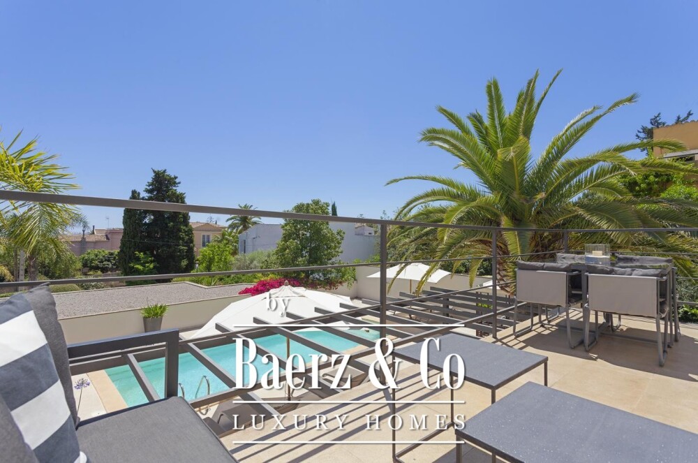 Villa Palma met ETV-vergunning biedt een architectonisch verfijnde woning in Son Roqueta, op slechts enkele minuten van het centrum van Palma en de gerenommeerde golfbanen van Son Vida. Het object combineert een volledig gerenoveerde villa in Bauhaus-stijl van 285 m² met een discrete tweede woning, waarin zich twee moderne gastenappartementen bevinden van in totaal 149 m², beide voorzien van een vergunning voor vakantieverhuur.