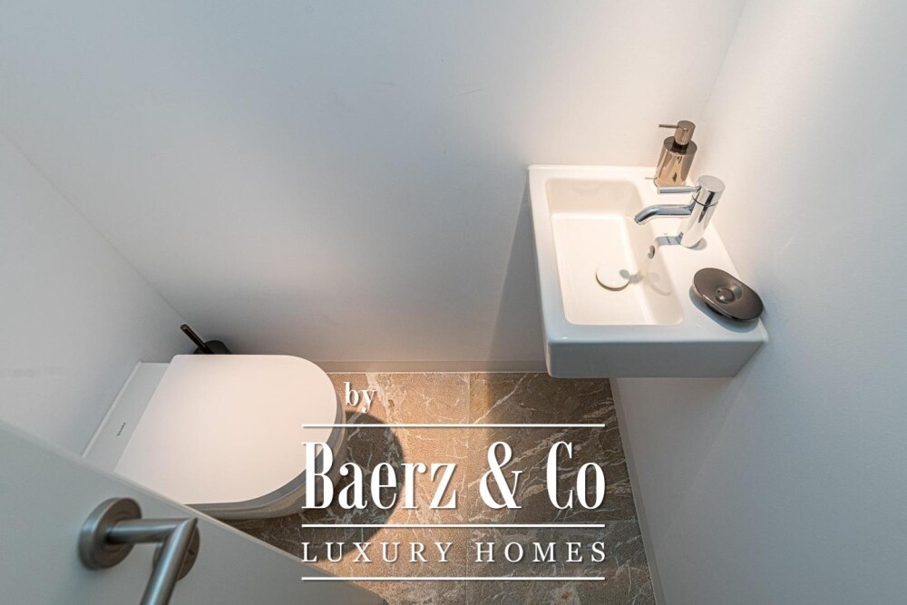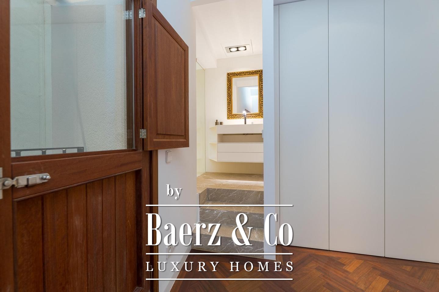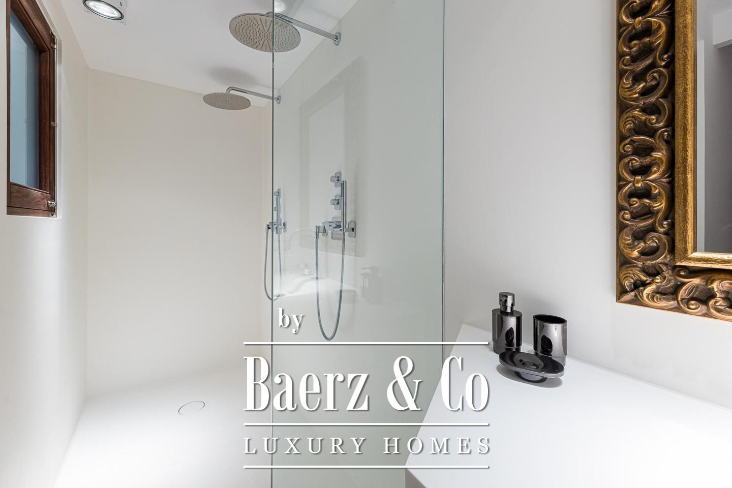 Het souterrain biedt een veelzijdige ruimte, flexibel in te richten als wijnkelder, tv-kamer of opslagplek, zodat u deze naar wens kunt gebruiken. Op de bovenverdieping bevinden zich twee slaapkamers, elk met ingebouwde kasten en en-suite badkamers. Een interne balkonstructuur laat veel daglicht binnen en versterkt het gevoel van rust. Materialen zoals staal, natuursteen, hout en zichtbaar metselwerk worden gecombineerd met vloerverwarming en airconditioning via een warmtepomp. Massief houten ramen en luiken geven het geheel een authentieke, warme uitstraling.