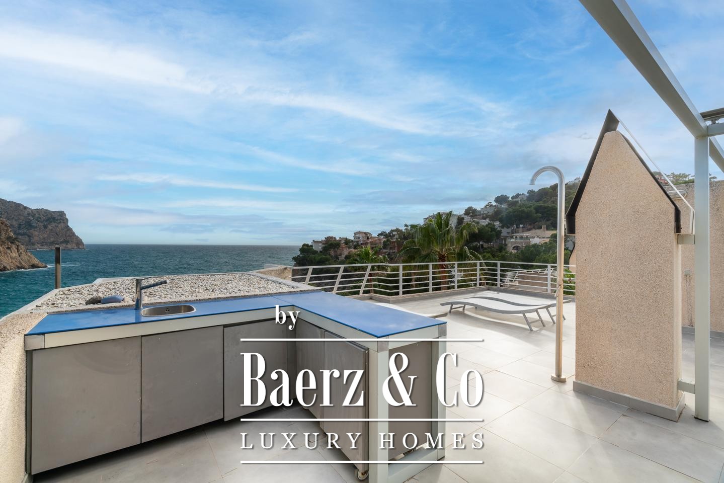 Een privé dakterras vormt het kroonstuk van het huis, ideaal voor het creëren van een exclusieve lounge met spa of jacuzzi waar zon, lucht en het diepe blauw van de zee samenkomen. Dankzij de zuidelijke oriëntatie geniet u de hele dag van zonlicht, terwijl de verhoogde ligging zorgt voor sfeervol avondlicht en gedeeltelijk zicht op het eiland Dragonera, vooral indrukwekkend bij zonsondergang.