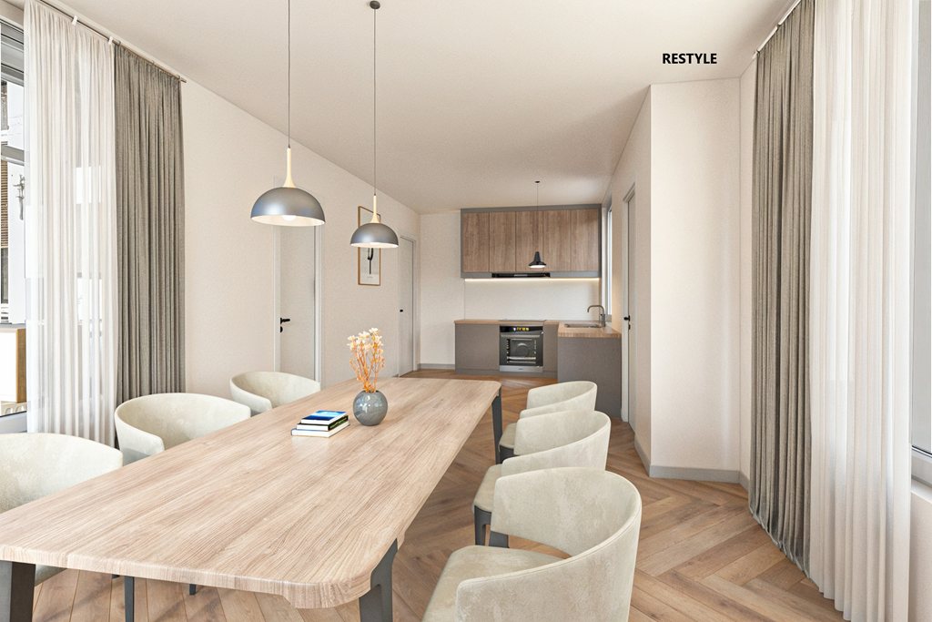 In de lichte, open woonkamer valt het natuurlijke daglicht direct op, dankzij de royale raampartijen aan zowel de voor- als achterkant. Deze ruimte nodigt uit om een comfortabele zithoek en een royale eethoek te creëren. Karakteristieke elementen zoals een charmante schouw, sierlijke ornamenten en een warme houten vloer geven de woonkamer een sfeervolle uitstraling. Met enige modernisering kan deze ruimte weer een eigentijdse look en feel krijgen, perfect passend bij uw eigen woonwensen.
