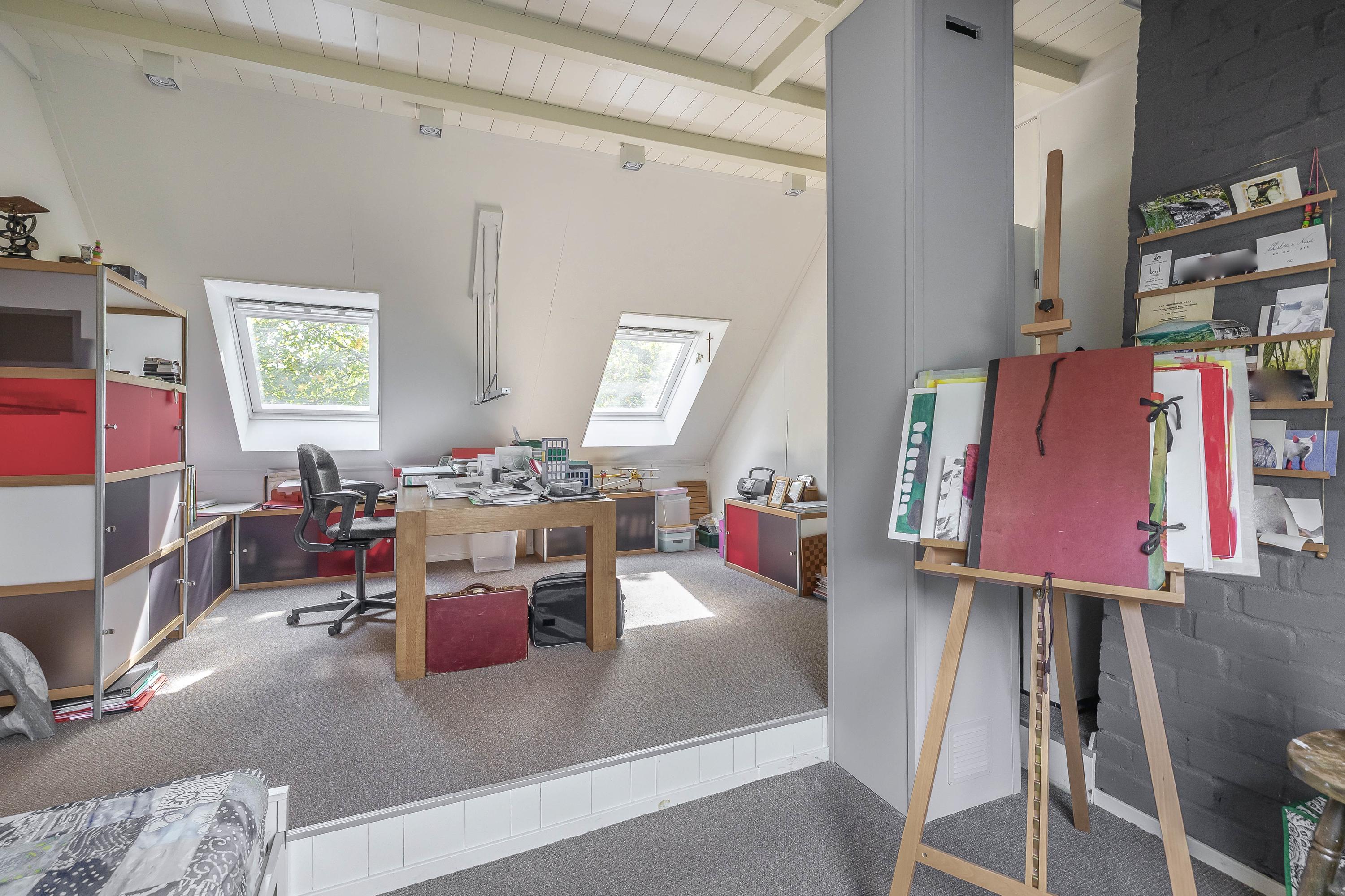 Aansluitend aan deze beide kamers bevindt zich op deze verdieping een tussenkamer, die ook perfect als extra slaapkamer of thuiskantoor gebruikt kan worden. Deze kamer heeft vloerbedekking, gipsplaten plafondafwerking en een groot Velux dakvenster met verduistering.