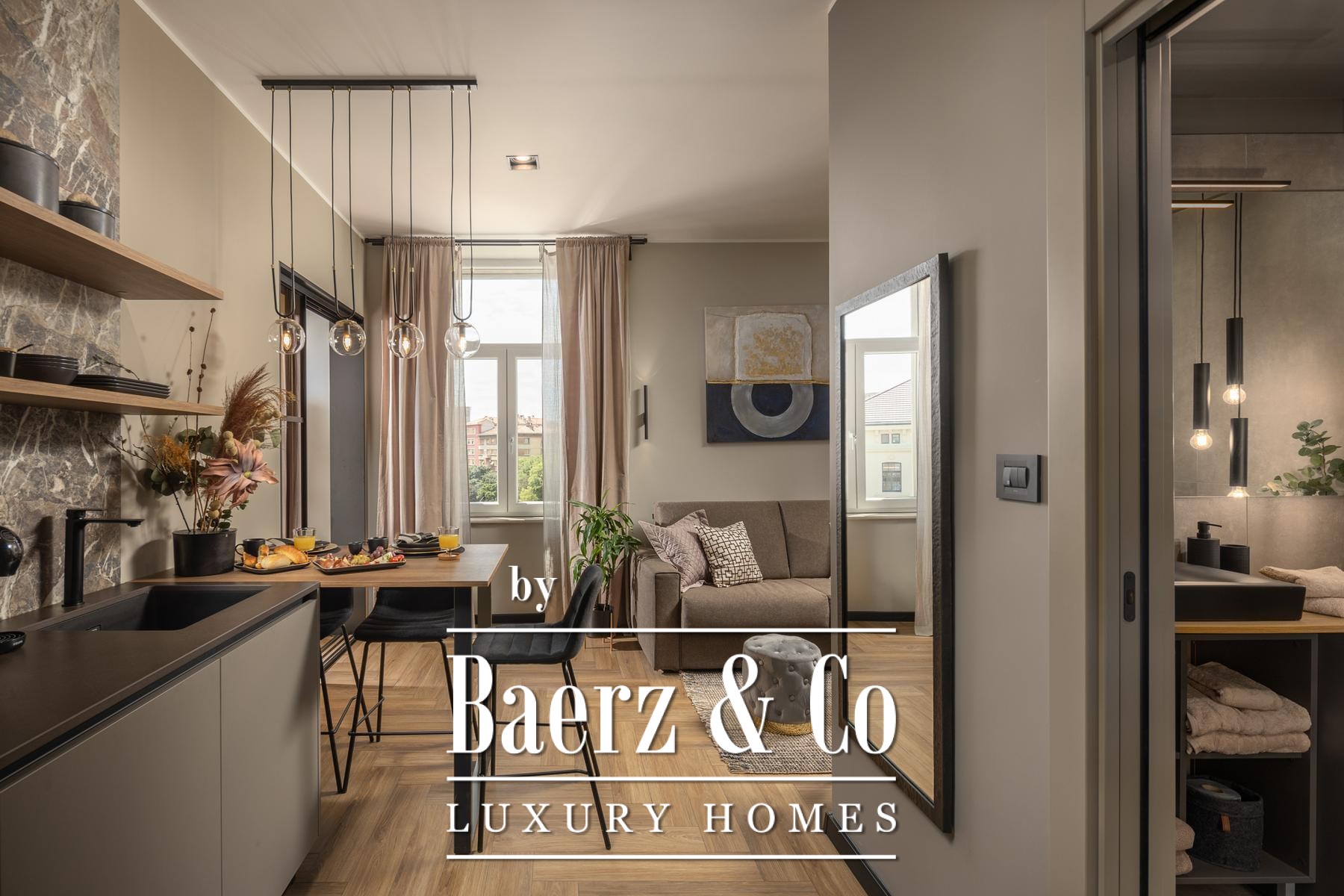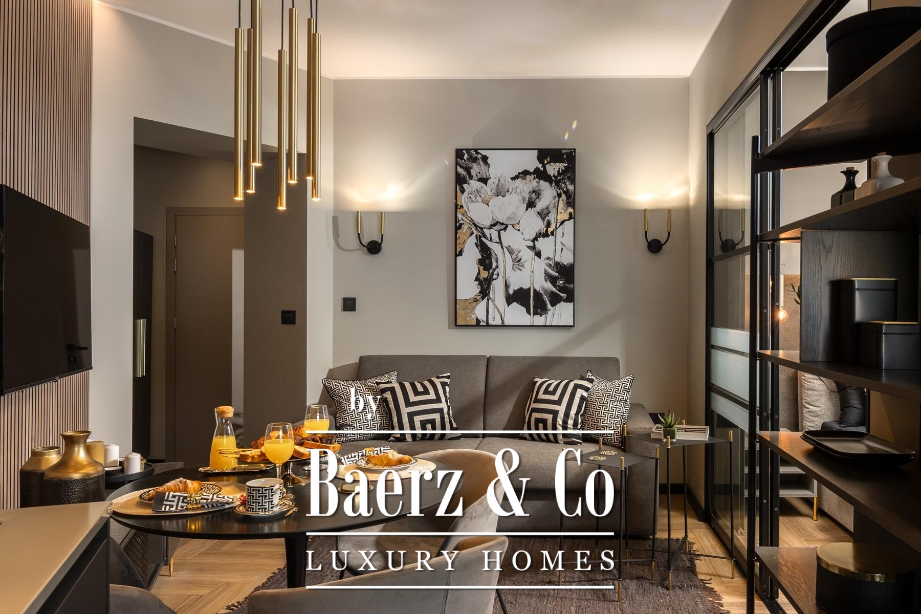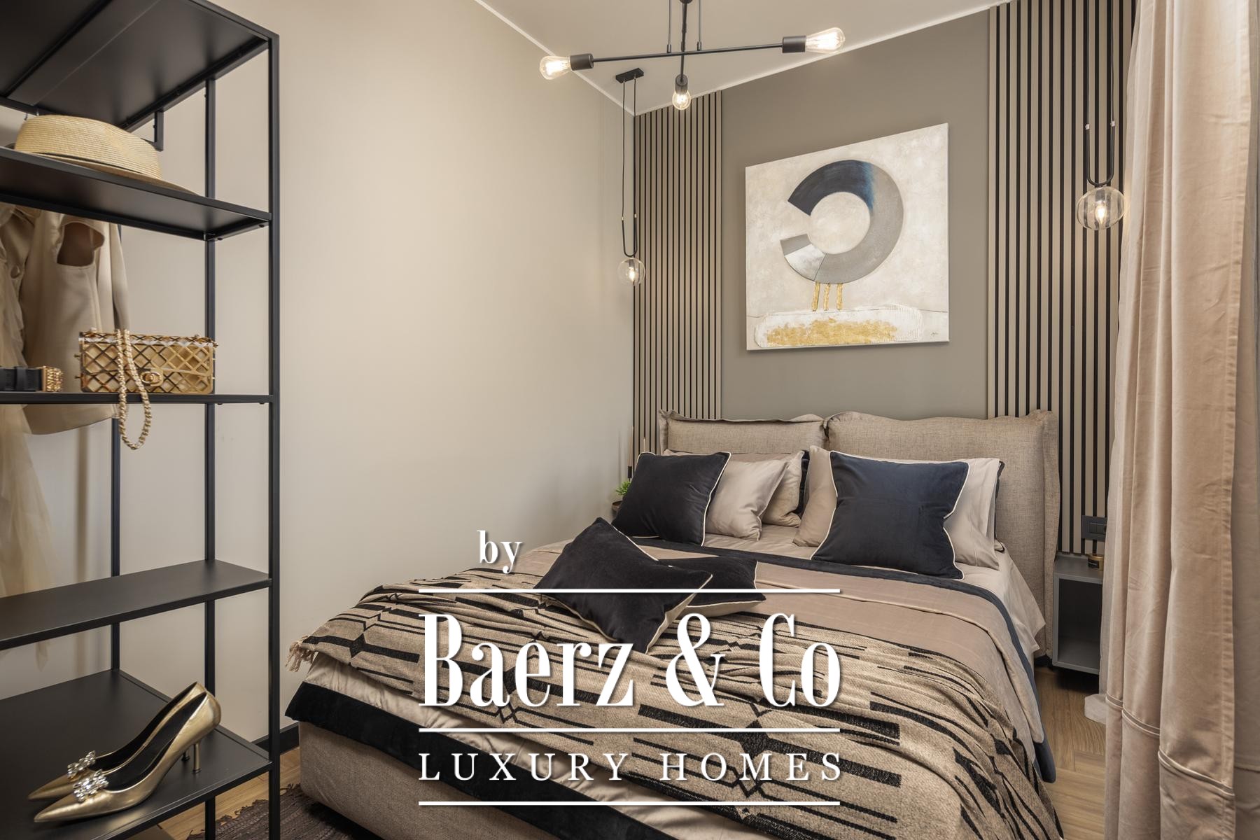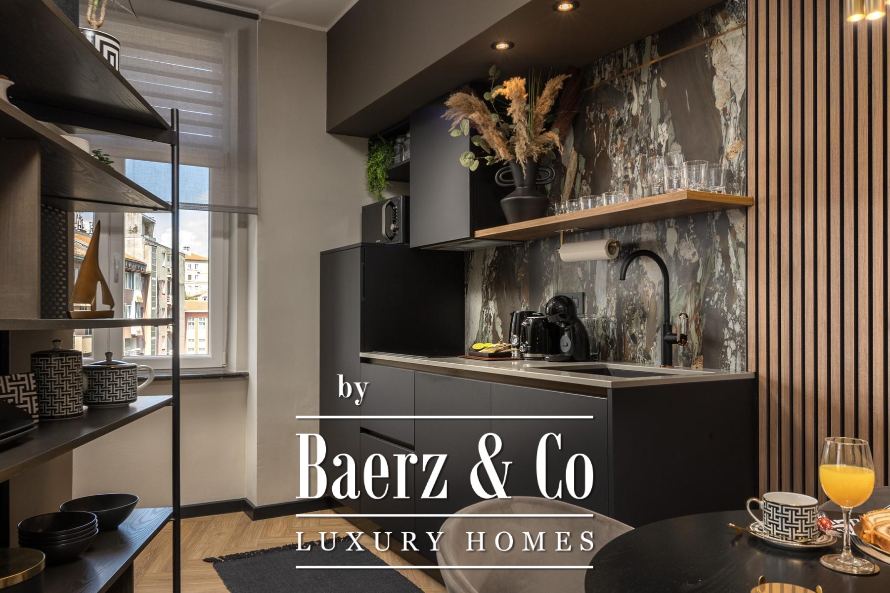 Het interieur kenmerkt zich door een verfijnd gebruik van warme beige- en antraciettinten, geaccentueerd met gouden details en maatwerkverlichting. Italiaans meubilair, grootformaat porseleinen tegels en matzwarte Veneta Cucine-keukens met stijlvolle marmerstenen achterwanden tillen het niveau naar een hoger plan. Matglazen scheidingswanden, houten wandpanelen met LED-accenten en designer messing verlichting maken de sfeer compleet.
