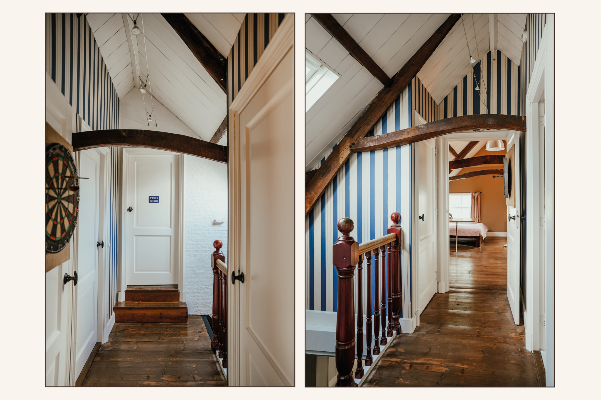 Onder de uitstekend geïsoleerde kap van het achterhuis liggen twee volwaardige slaapkamers met airco en een 4e badkamer. De slaapkamers zijn door de dakvensters en dakkapel aan de achterzijde heerlijk licht. De spantconstructie is fraai in het zicht gebleven en op verschillende plaatsen is vaste kastruimte gerealiseerd.