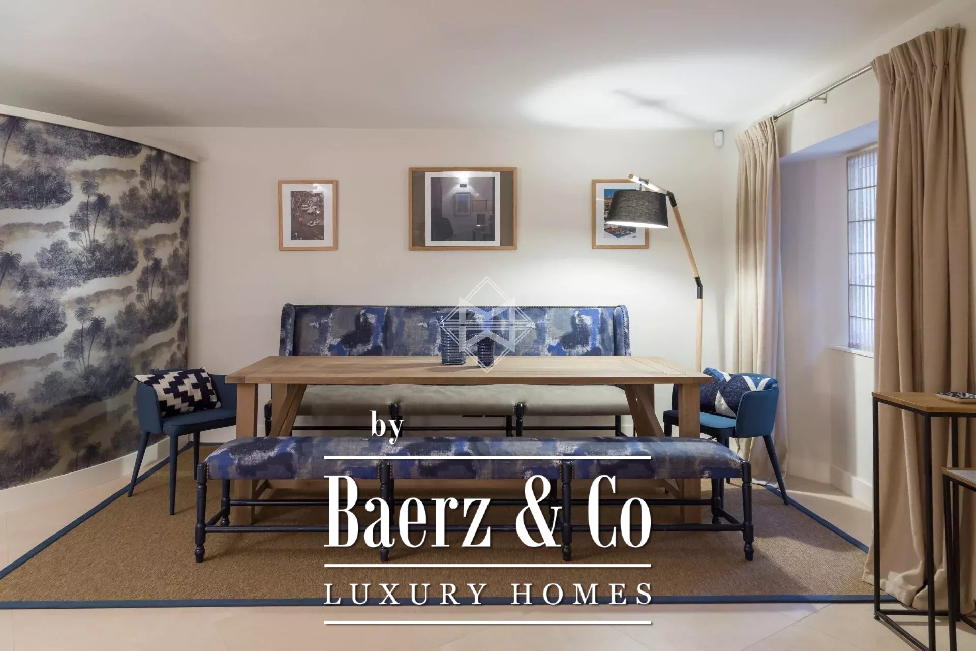 Een tweede keuken met eethoek leidt naar een living die direct uitkomt op een ruim terras. Hier beleeft u de karakteristieke dorpssferen en het onmiskenbare klokkentorentje dat de skyline van Saint-Tropez markeert. Hoogwaardige materialen en afwerkingen dragen bij aan een kalme, verfijnde sfeer door de gehele woning, met voorzieningen als airconditioning, dubbele beglazing, een open haard en een zorgvuldig geselecteerd pakket aan extra’s, waaronder een jacuzzi, alarmsysteem, kluis, wellness en meer.