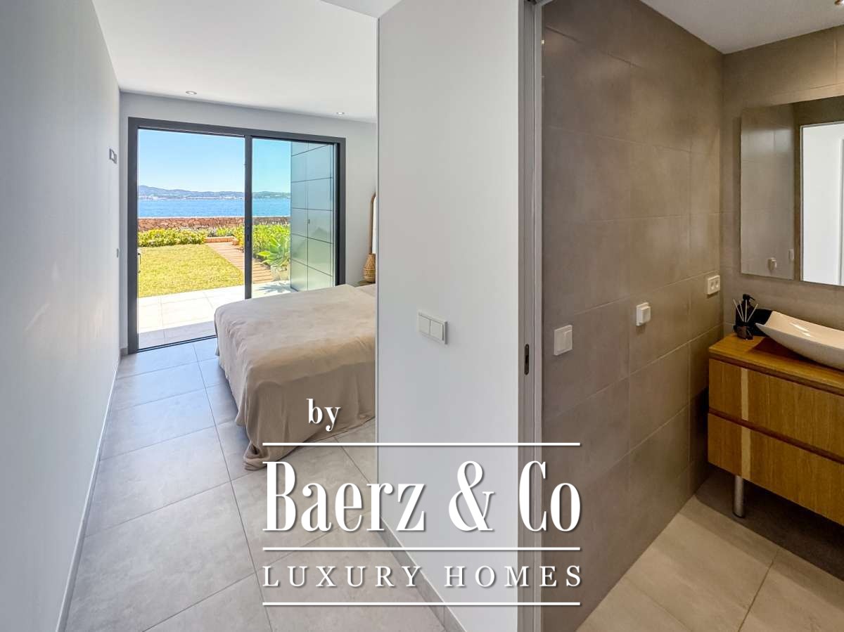 Dit uitzonderlijke appartement ligt in eerste lijn aan zee nabij de prachtige Cala Gració, bekend om haar kristalheldere water en ontspannen sfeer. Restaurants, cafés en wandelroutes langs de kust liggen op korte afstand. Het centrum van San Antonio is snel bereikbaar. Vanaf het terras en de tuin kunt u de mooiste zonsondergangen van het eiland bewonderen, die elke avond bijzonder maken.Het appartement en de indeling