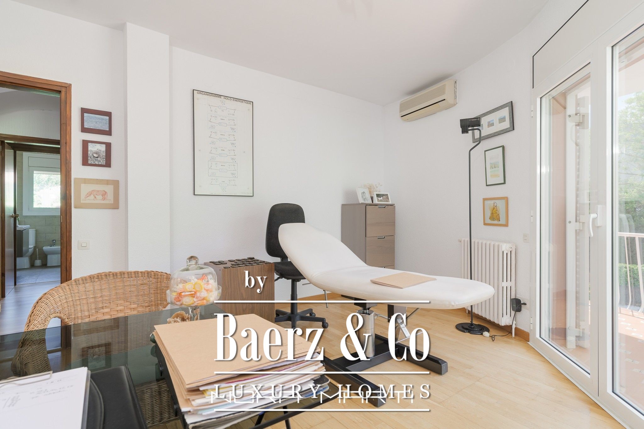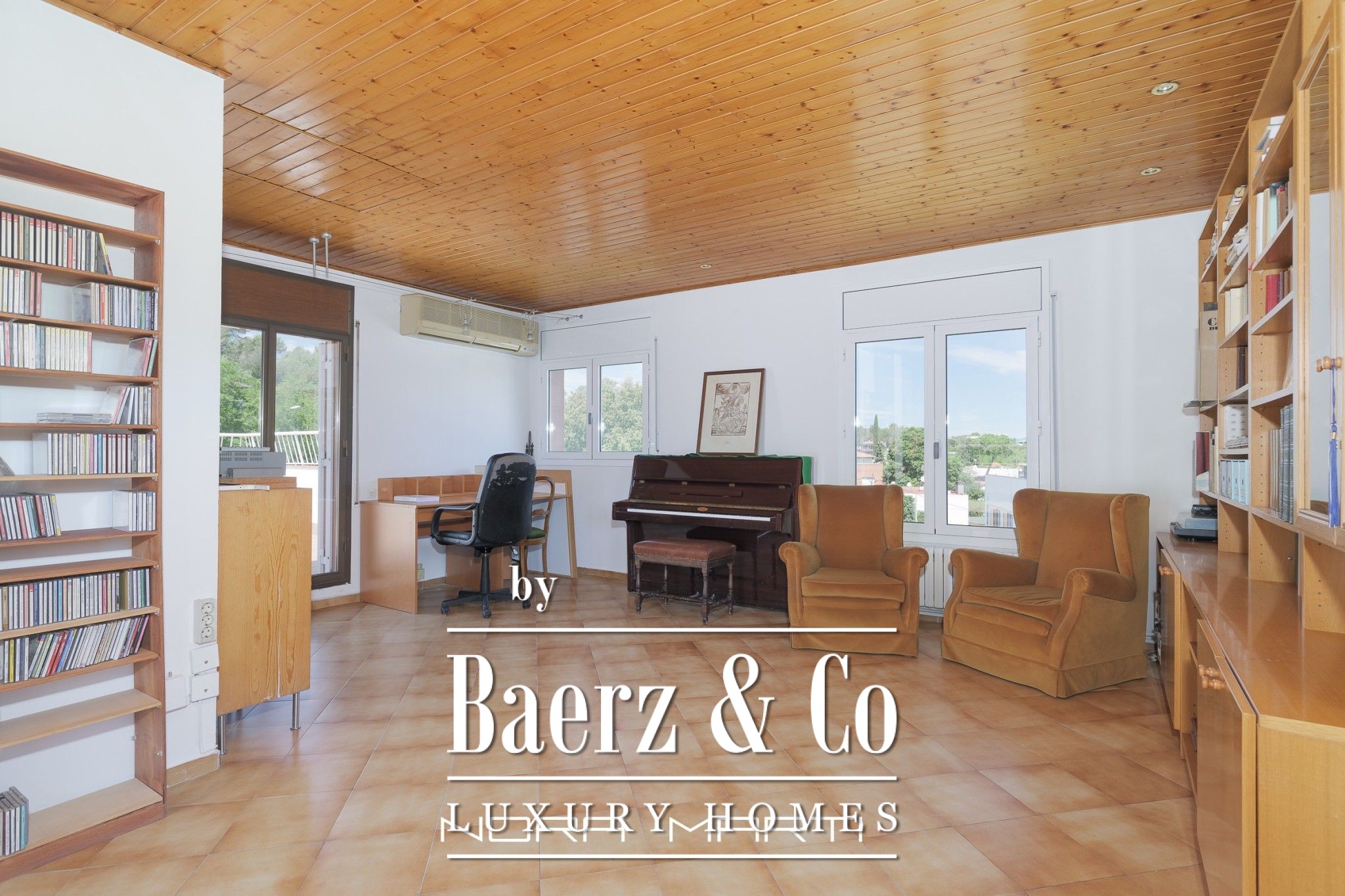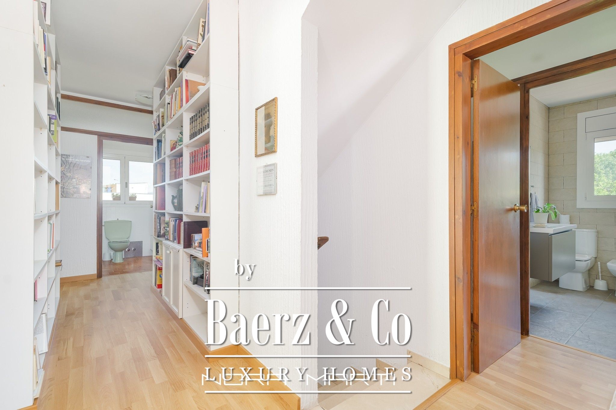 Woning in Sant Cugat biedt 375 m² zorgvuldig ingedeelde leefruimte op een perceel van 620 m², op slechts enkele minuten lopen van station Valldoreix. Deze woning combineert verfijnd design met privacy, met een gevel in zeilvorm die uitnodigt tot zonlicht en zicht biedt op de aangelegde tuin en het zwembad. De begane grond van 120 m² omvat een garage van 40 m² met directe toegang tot de hal, die leidt naar een royale woon- en eetkamer, een keuken gericht op het dagelijkse ritme, een praktische was- en strijkruimte, een aparte werkkamer en een complete badkamer.
