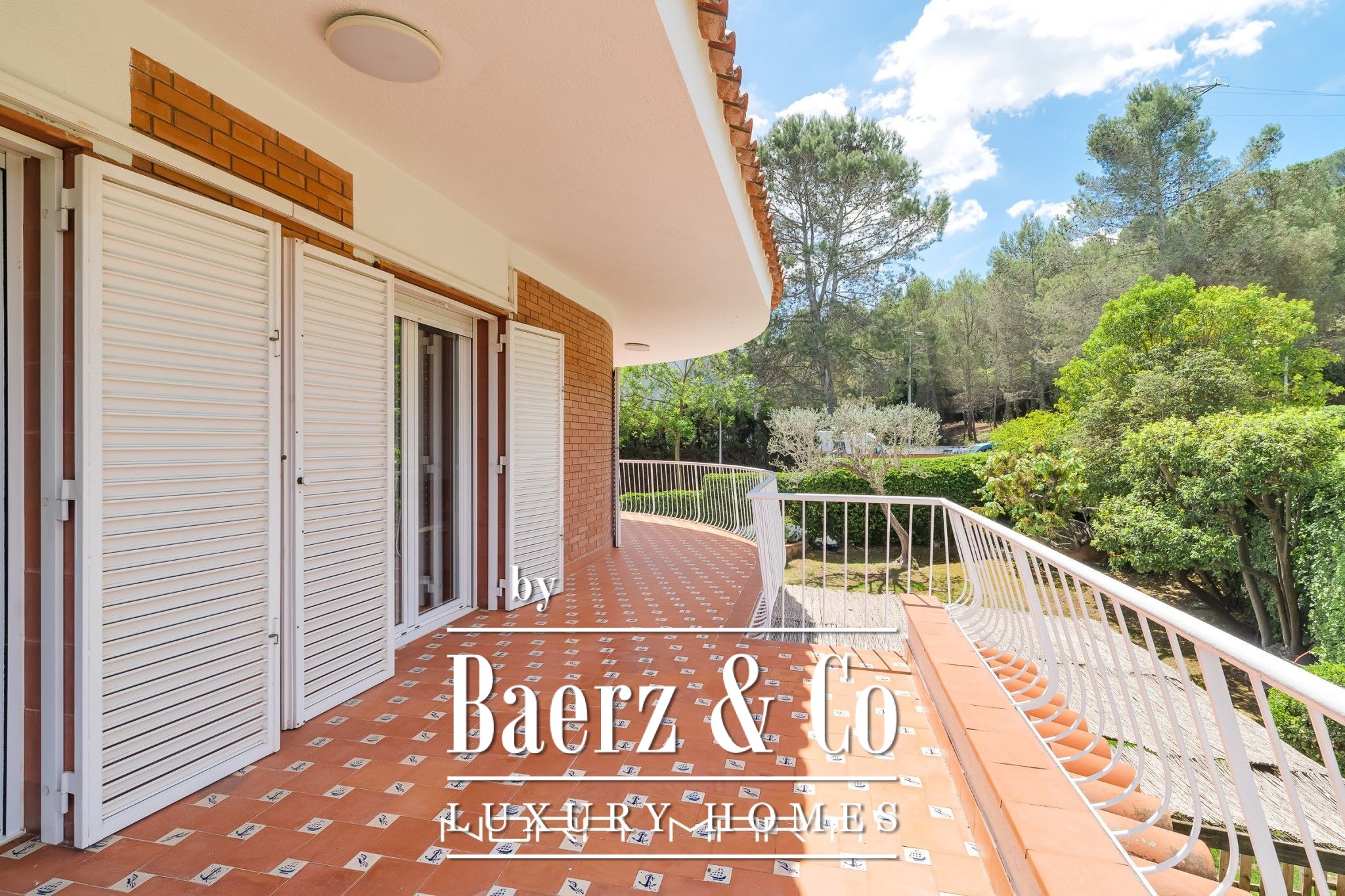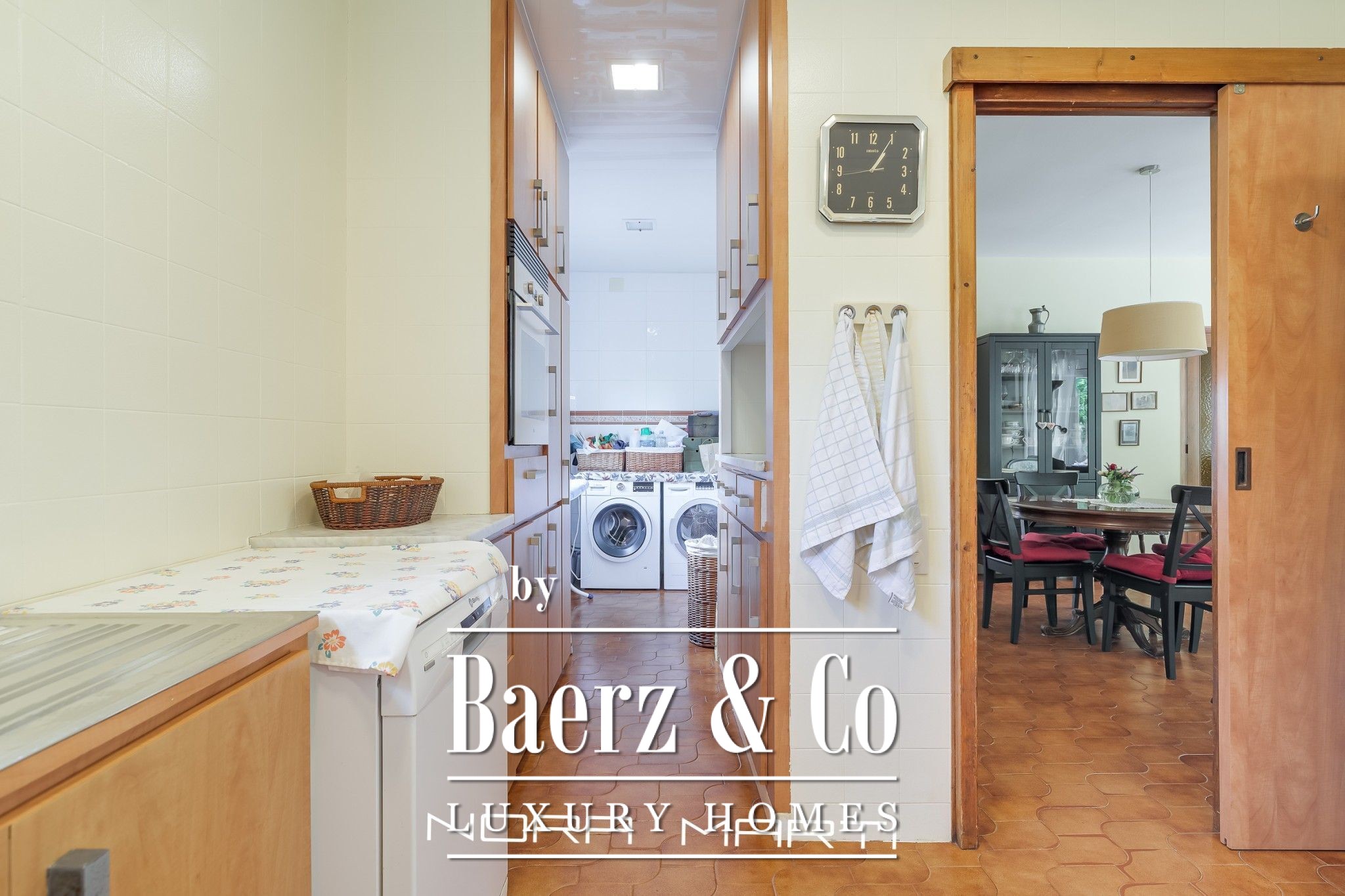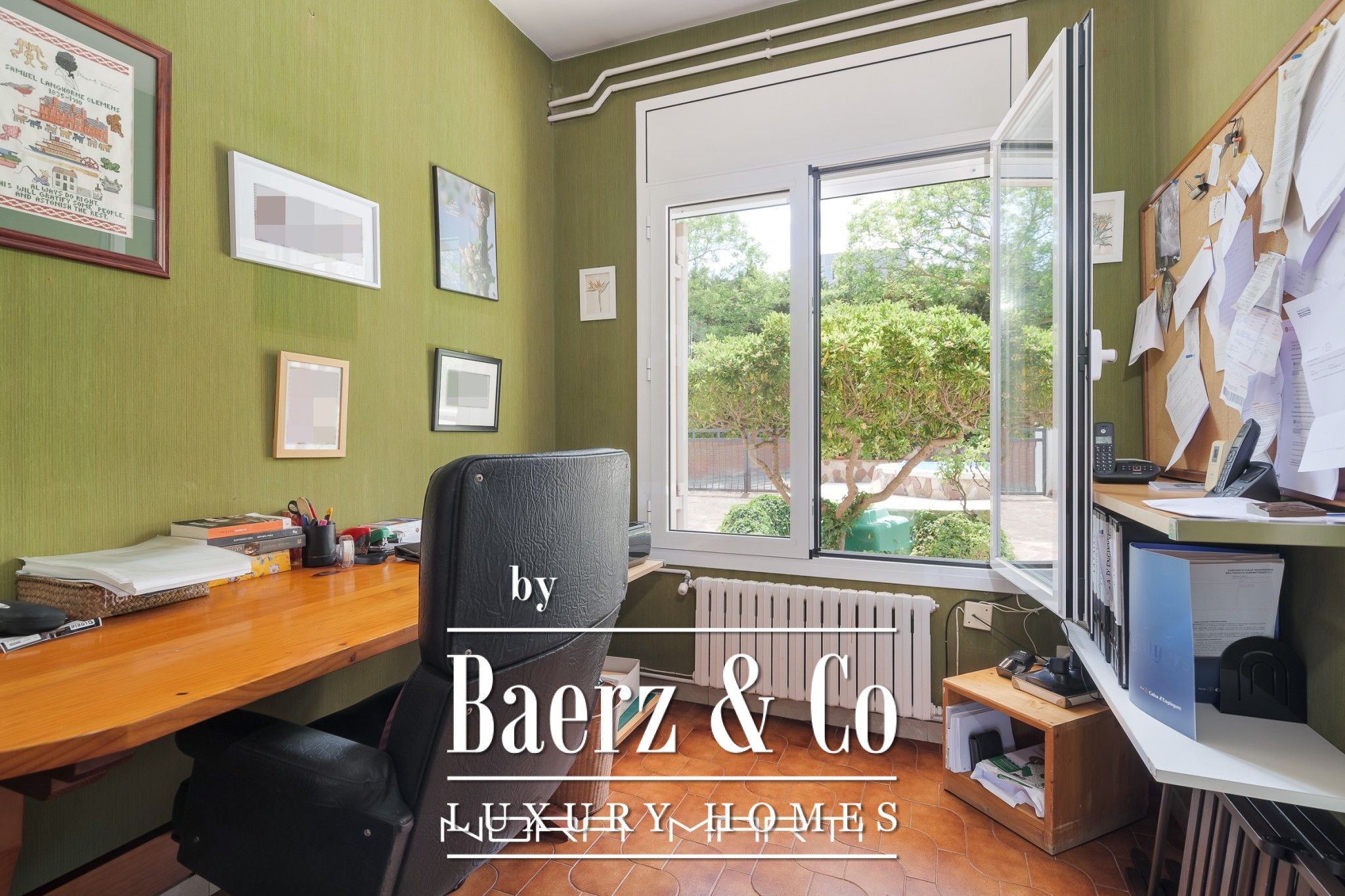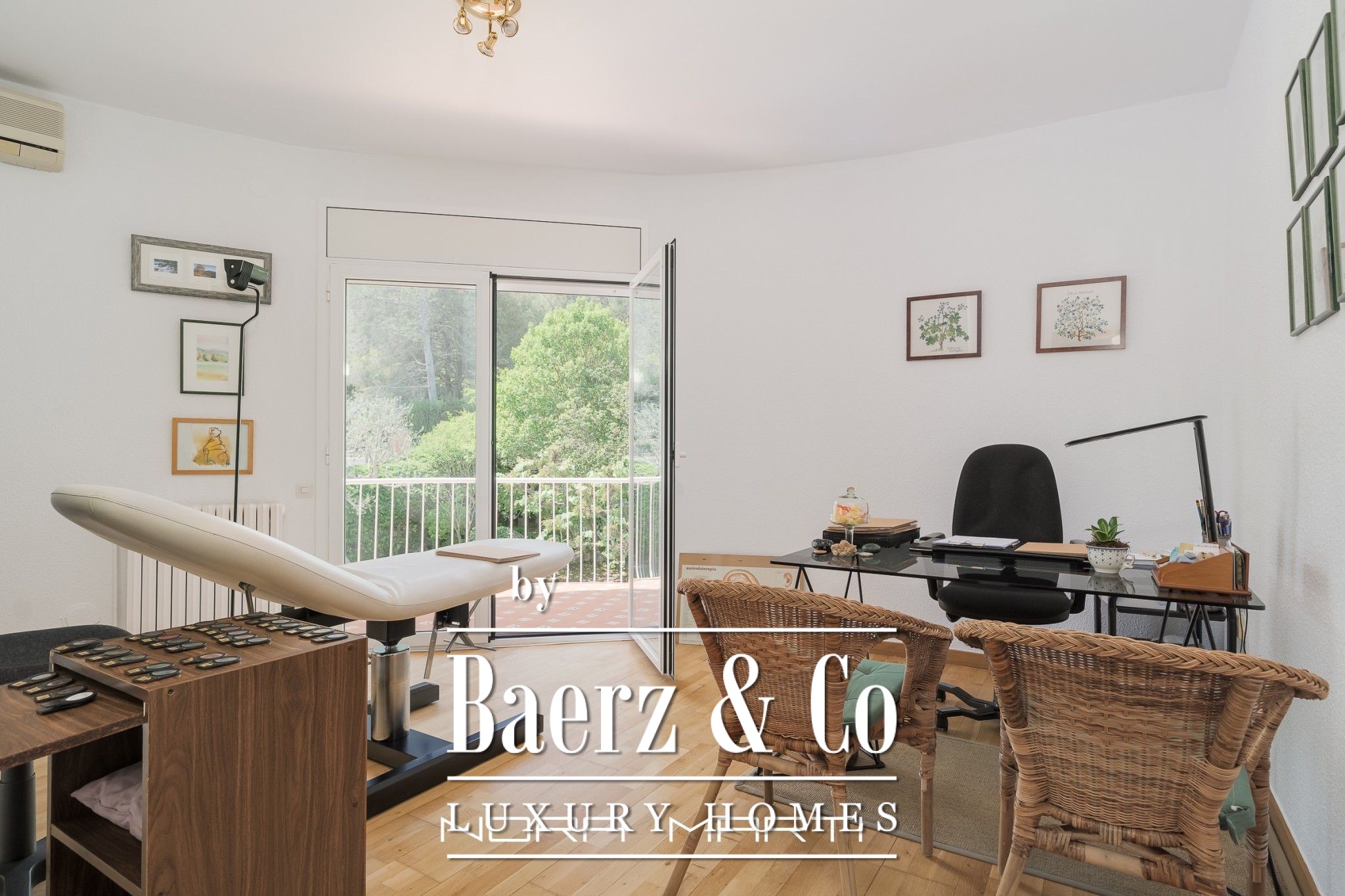 Woning in Sant Cugat biedt 375 m² zorgvuldig ingedeelde leefruimte op een perceel van 620 m², op slechts enkele minuten lopen van station Valldoreix. Deze woning combineert verfijnd design met privacy, met een gevel in zeilvorm die uitnodigt tot zonlicht en zicht biedt op de aangelegde tuin en het zwembad. De begane grond van 120 m² omvat een garage van 40 m² met directe toegang tot de hal, die leidt naar een royale woon- en eetkamer, een keuken gericht op het dagelijkse ritme, een praktische was- en strijkruimte, een aparte werkkamer en een complete badkamer.