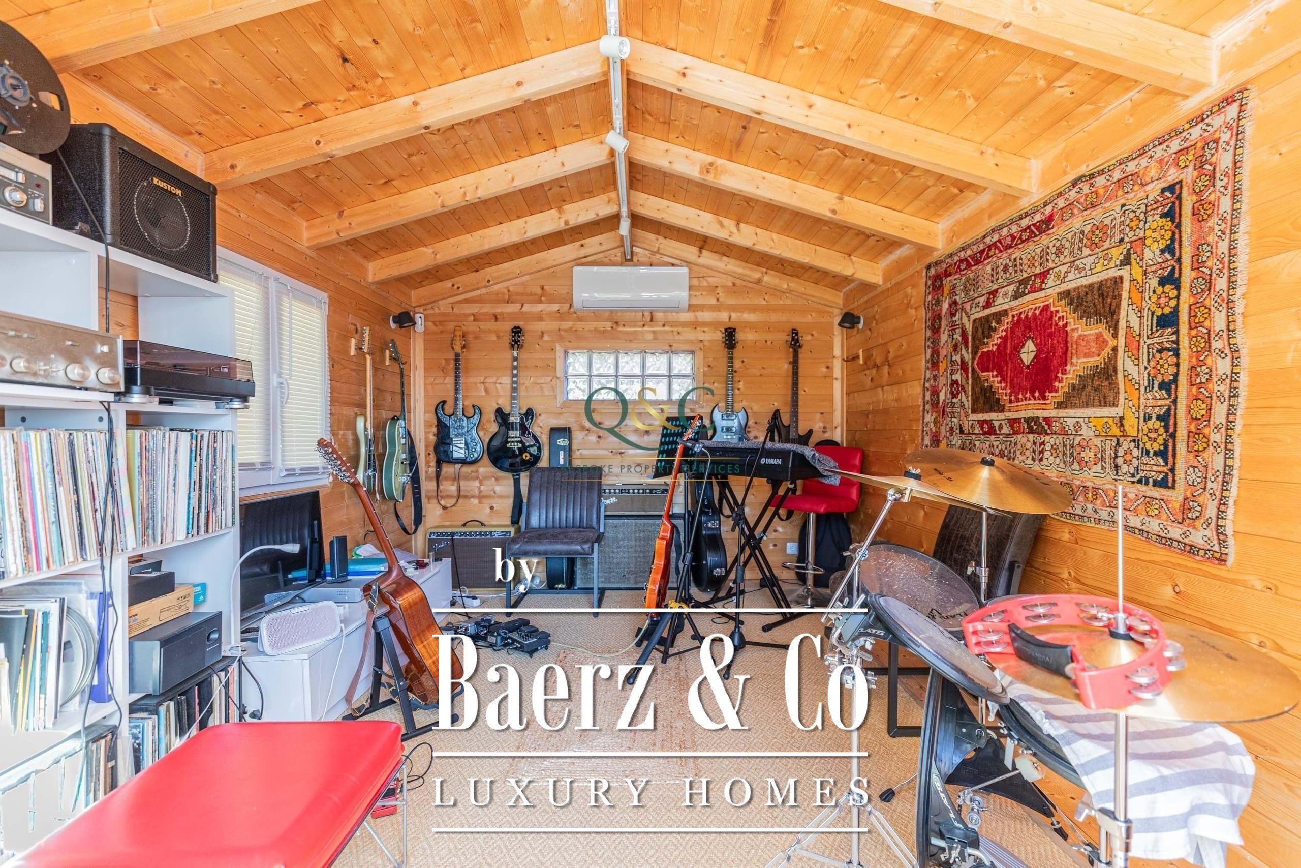 A useful utility room is conveniently located near the entrance, while a standalone, fully insulated wooden studio  complete with air conditioning and currently used as a music room  offers endless possibilities for work, hobbies, or relaxation.