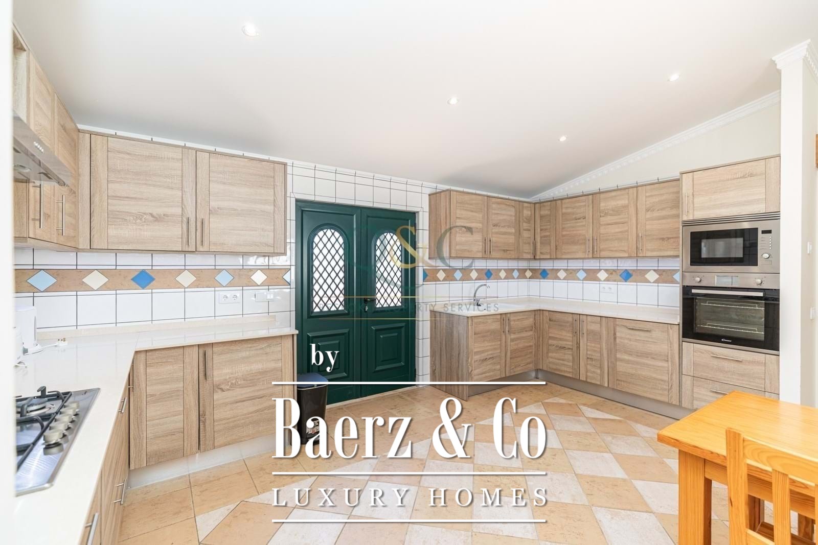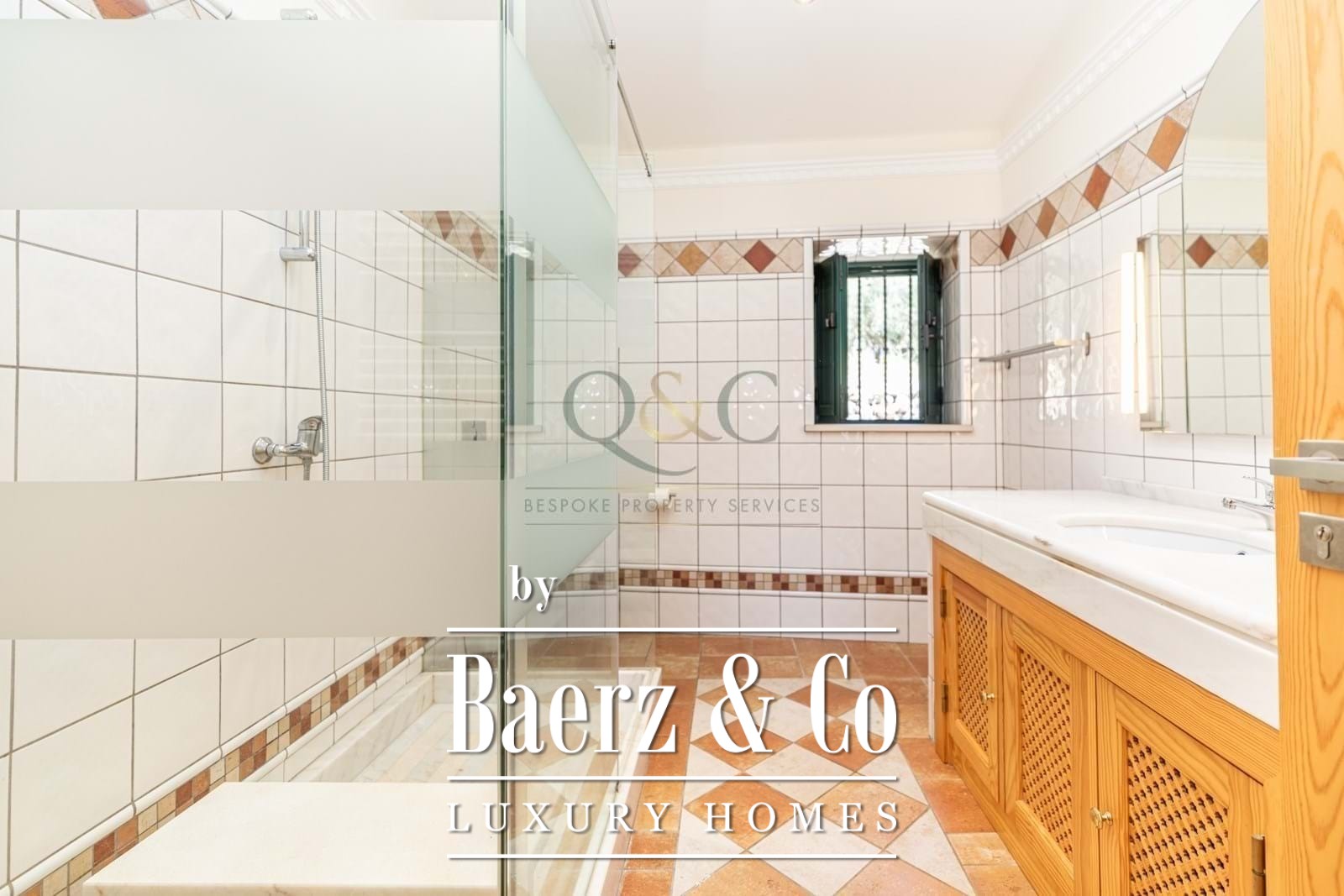 The centre piece of the garden, a fine example of Algarve alfresco living, is the covered outside kitchen/dining room with BBQ and far-reaching views down to the sea. Take a few steps down from here to the large, heated swimming pool and surrounding extensive terrace, the perfect place for sunbathing. Explore the garden more and you will find a well-stocked orchard area. All the pathways and raised borders showcase fabulously crafted stone and traditional Algarve tiles.
