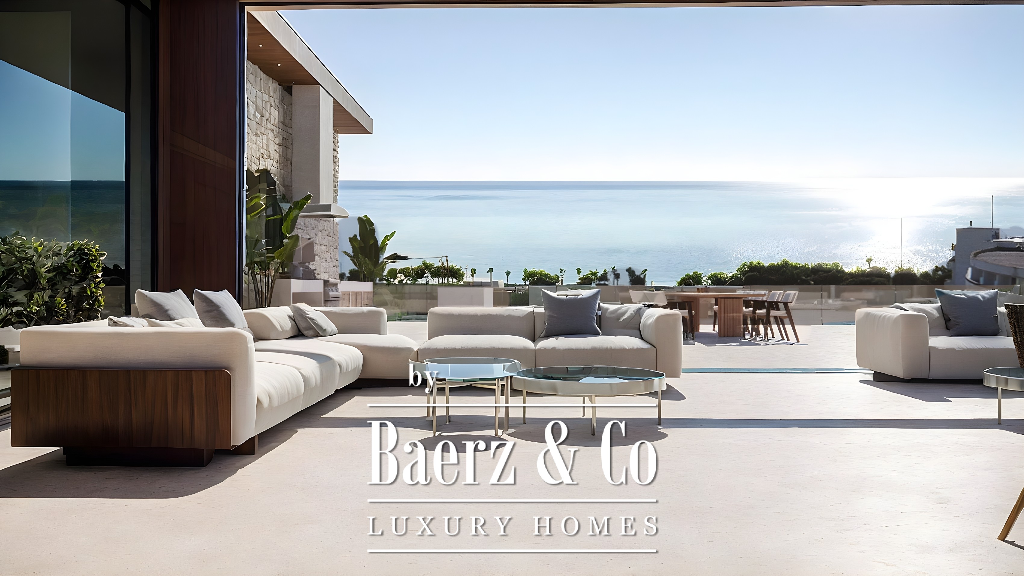De bovenverdieping beschikt over drie extra suites, waaronder een primaire suite met een privévertrek van 42 m² en onbelemmerd uitzicht over de Middellandse Zee.