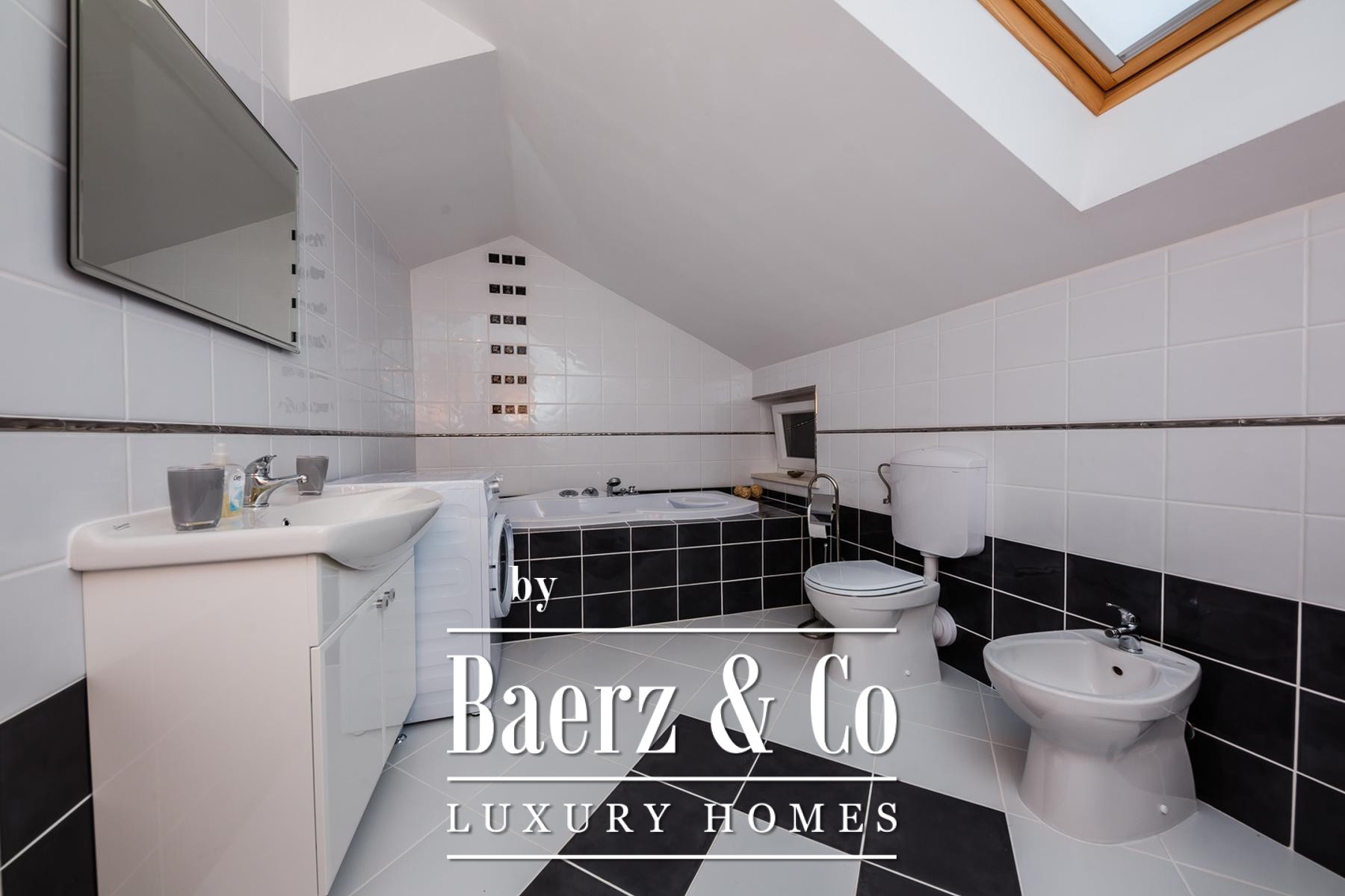 Het souterrain van 25 m² is bestemd voor opslag, wasruimte en een centrale verwarmingsketel, waarmee comfort en functionaliteit worden benadrukt. De begane grond biedt een vloeiende opeenvolging van woonkamer, keuken, eetgedeelte, een badkamer en een slaapkamer; elke ruimte wordt gekenmerkt door natuurlijk licht en een subtiel kleurenpalet. Op de verdieping zorgen drie slaapkamers en twee badkamers voor dezelfde sereniteit en balans die in het hele huis voelbaar is.