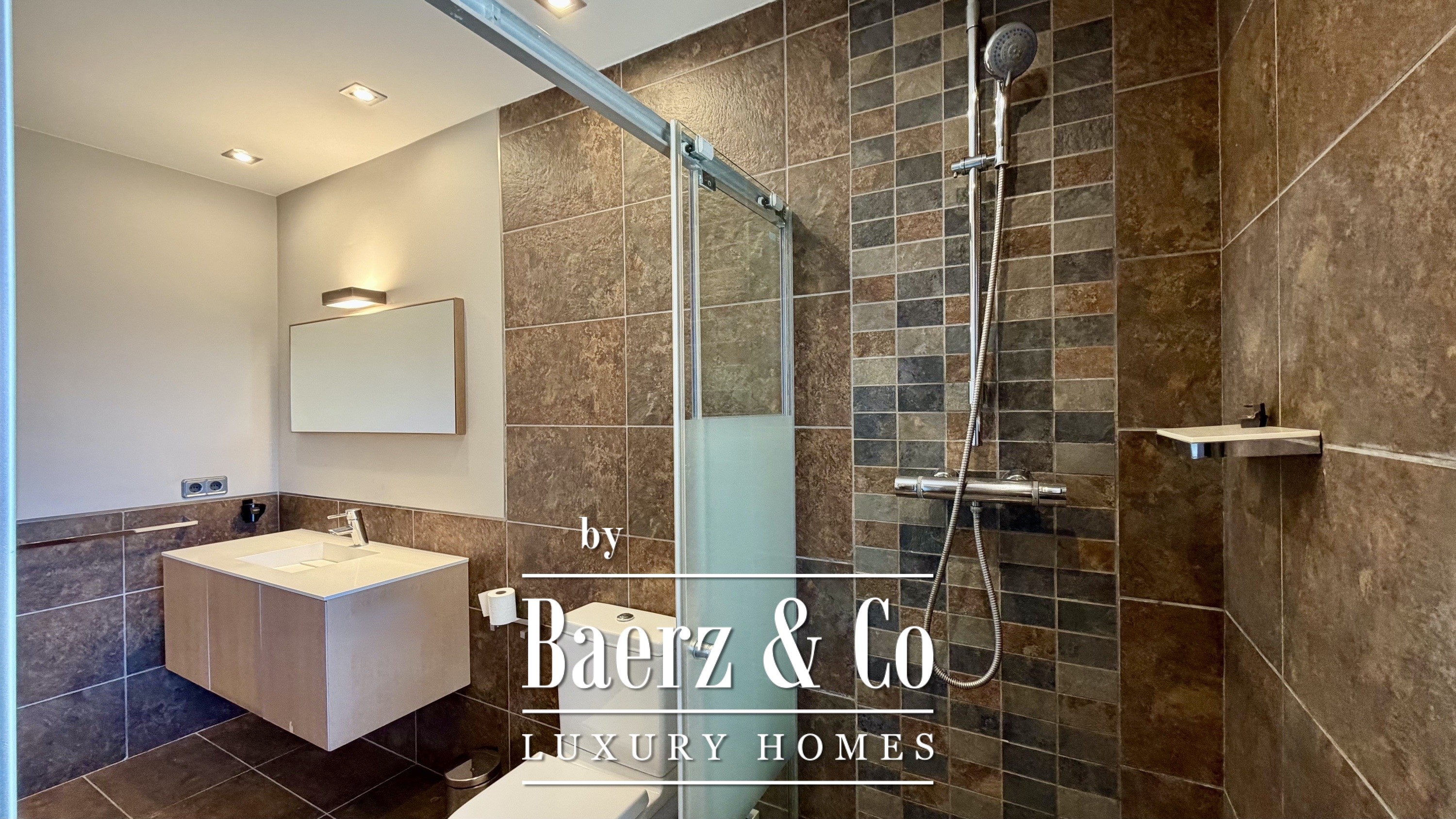 Op de bovenverdieping bevinden zich drie extra slaapkamers—twee met eigen badkamer—en een aparte badkamer, waardoor privacy voor familie en gasten is gewaarborgd. Alle kamers genieten van veel licht, ruimtelijkheid en rustgevend uitzicht, met zowel zee- als plattelandspanorama’s verspreid door de woning. Buiten draait het leven om de fraai aangelegde mediterrane tuin en het privézwembad, omlijst door terrassen en een paviljoen met kleedfaciliteiten.