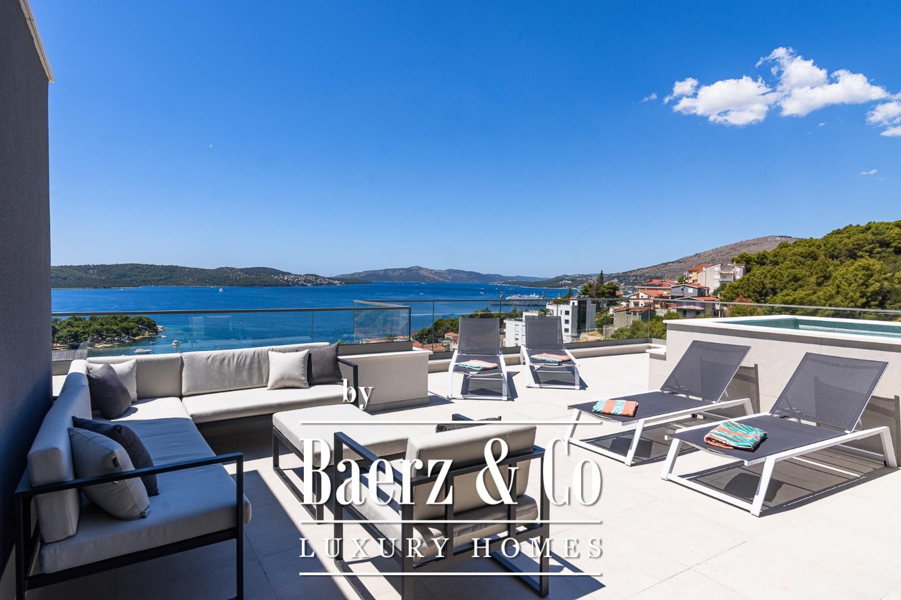 Luxe appartement Trogir biedt een uitzonderlijke ligging, met 132 m² verfijnde woonruimte verdeeld over twee zorgvuldig ontworpen niveaus. Deze residentie biedt panoramisch zeezicht dat elk moment bijzonder maakt, met interieurs vervaardigd uit hoogwaardige materialen en maatwerk meubilair. Het appartement beschikt over vier slaapkamers en vier badkamers, optimaal voor zowel privacy als samenzijn, met een royale open ruimte waar keuken, eetkamer en woonkamer samenkomen als het sociale hart.