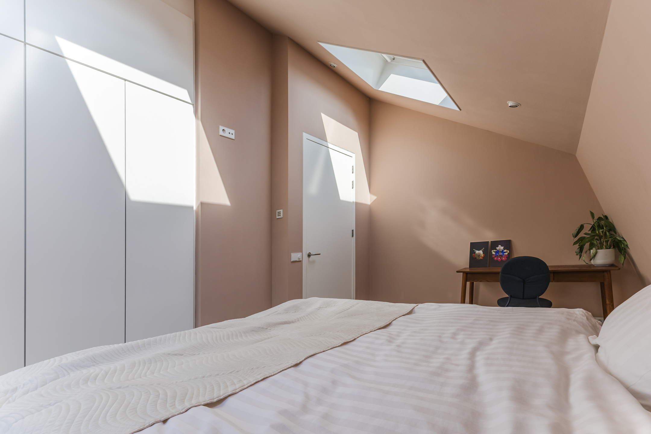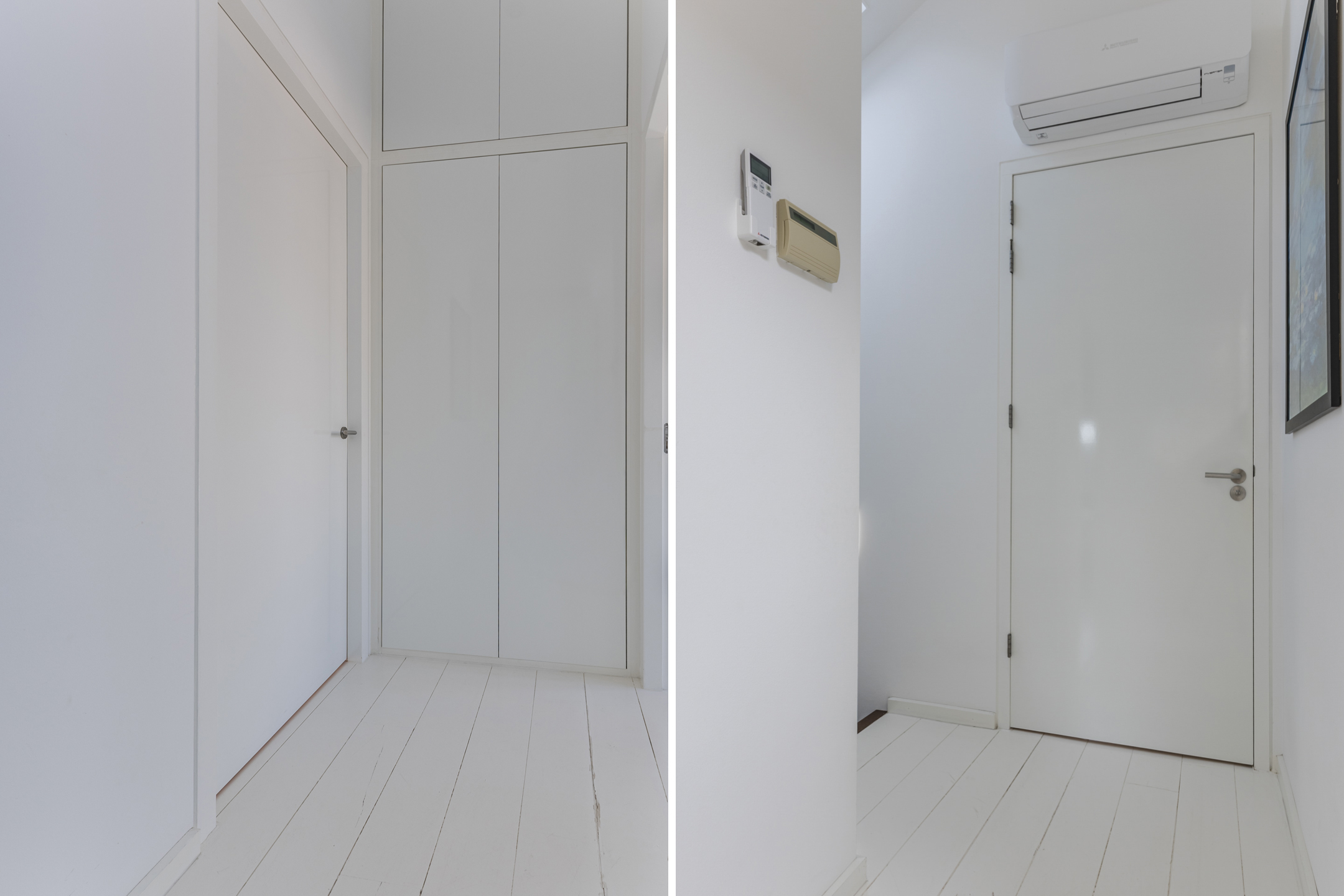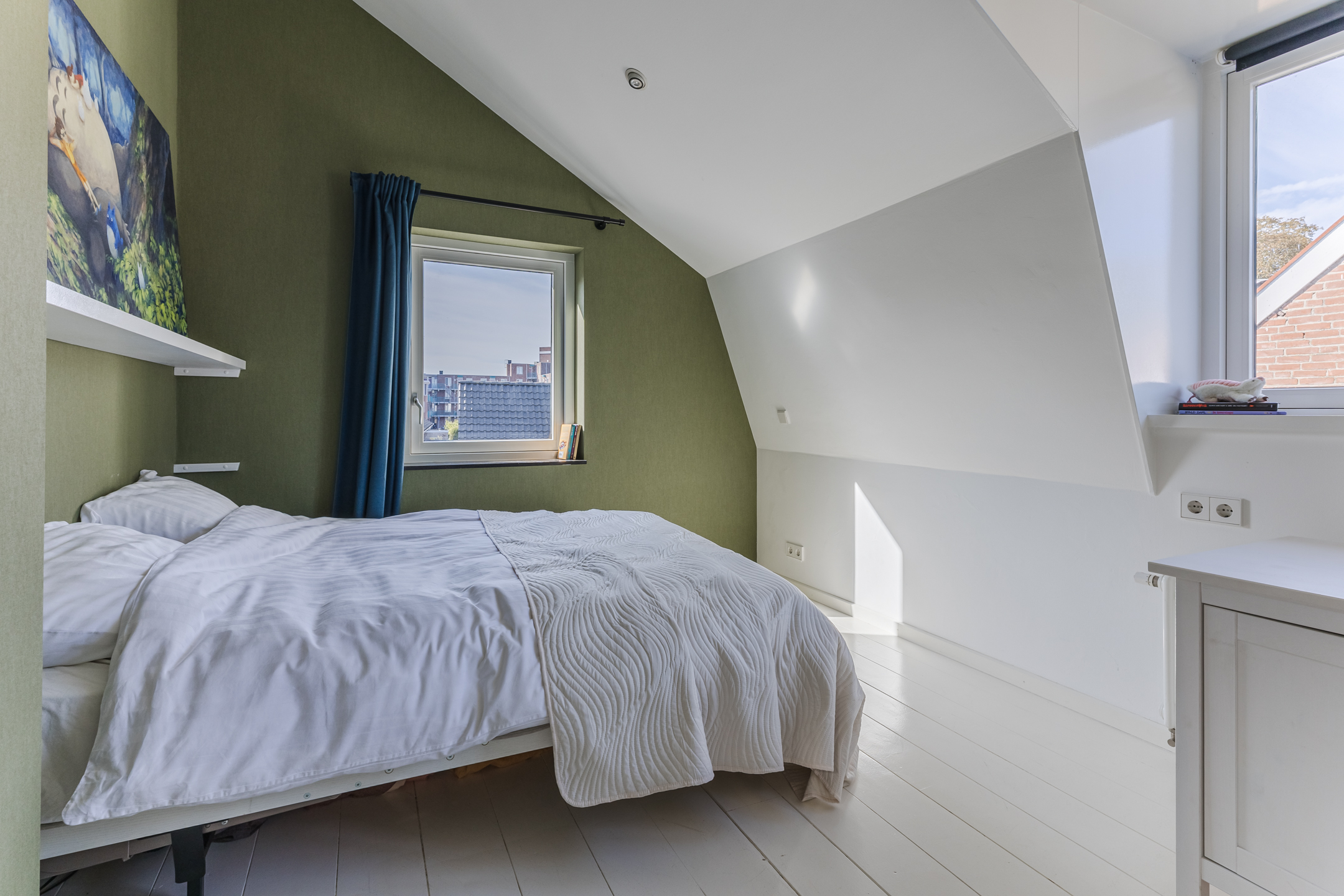 Verder beschikt de woning over twee ruime slaapkamers en een volledige badkamer. De slaapkamers zijn aan de voorzijde gelegen en zijn voorzien van hoogwaardige afwerking. Op de overloop is een airco gesitueerd die zowel kan koelen als verwarmen.
