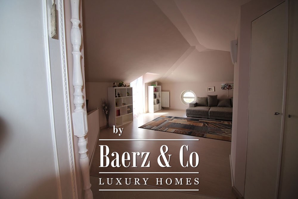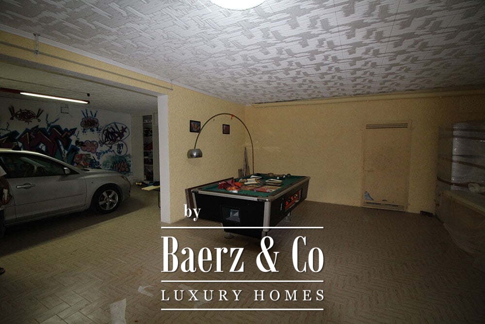 At the ground floor is the first apartment with the living room and a large kitchen, two bedrooms and bathroom. The apartment has access to the beautiful well kept garden and the swimming pool.