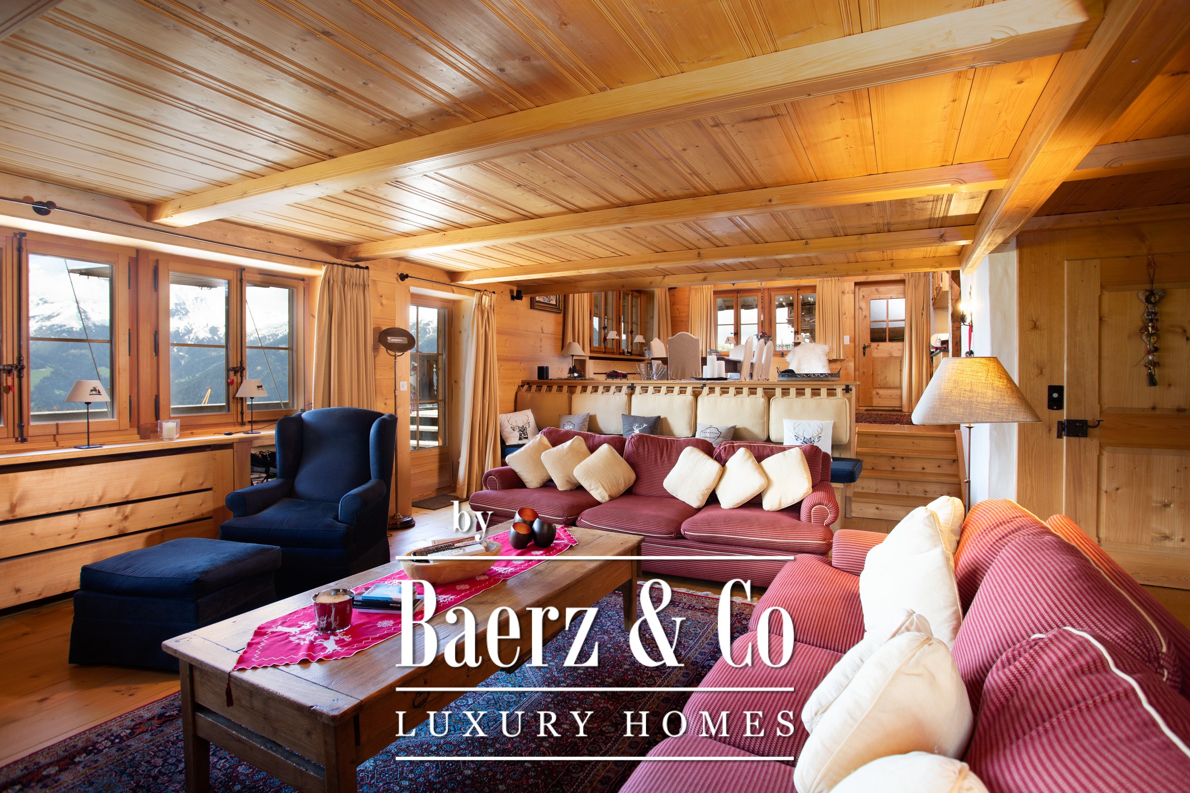 a breathtaking view of the valley and enjoy a sublime fireplace. On the same floor you can enjoy the open kitchen and dining room under the roof. In the attic is the master bedroom with its bathroom and dressing room. On the first floor there are two other bedrooms with bathrooms. Let's move on to the mazot. It consists of a living room, dining room and two further bedrooms and a bathroom.